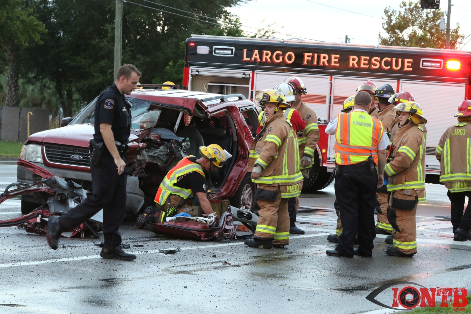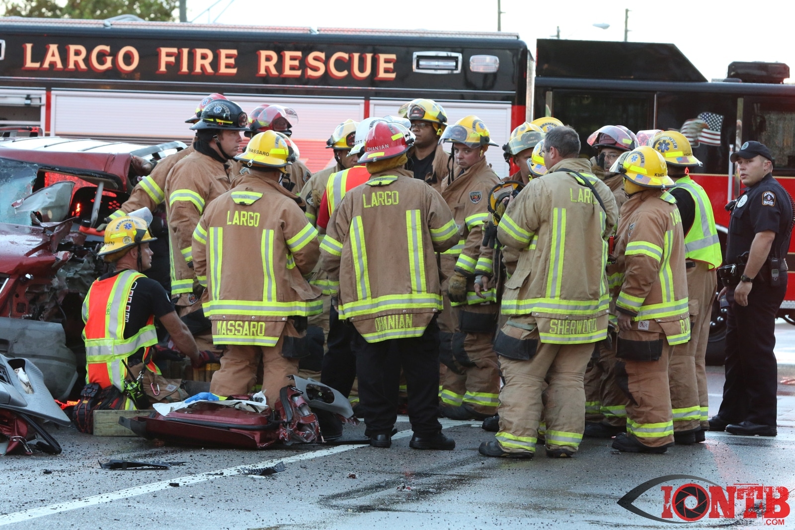 Two occupants of the heavily damaged vehicle needed to be extricated by crews from Largo Fire Rescue and Bayflite was requested to respond to the scene.