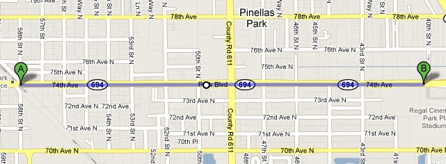 The Pinellas Park Police Department will begin closing the parade route at approximately 12:30 p.m. at Park Boulevard and 66th Street. Closures will move eastbound and are expected to be completed at the following times:
