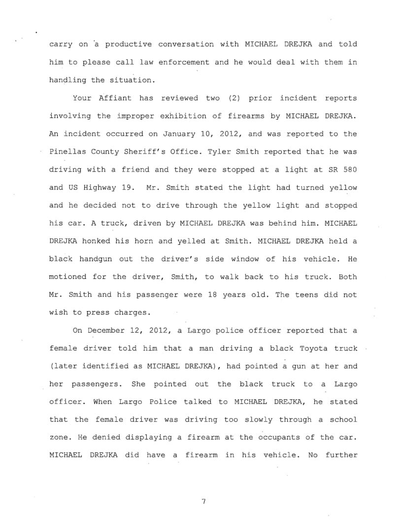 Deputies took possession of Drejka’s handgun. Drejka was in possession of a valid Florida concealed weapons license.