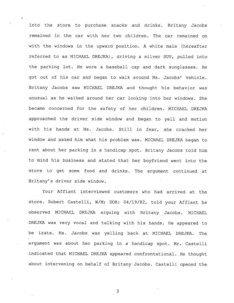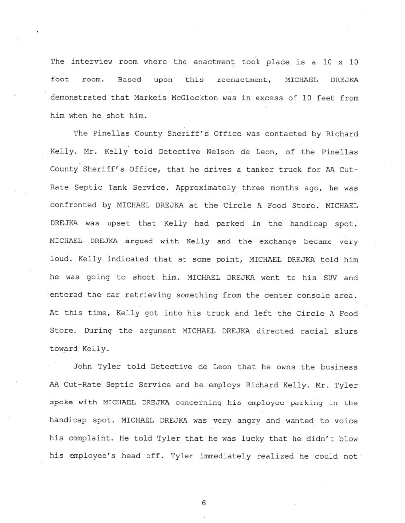 A witness saw Drejka and Jacobs arguing before walking into the store. While inside the convenient store, the witness alerted the clerk of the argument occurring in the parking lot.