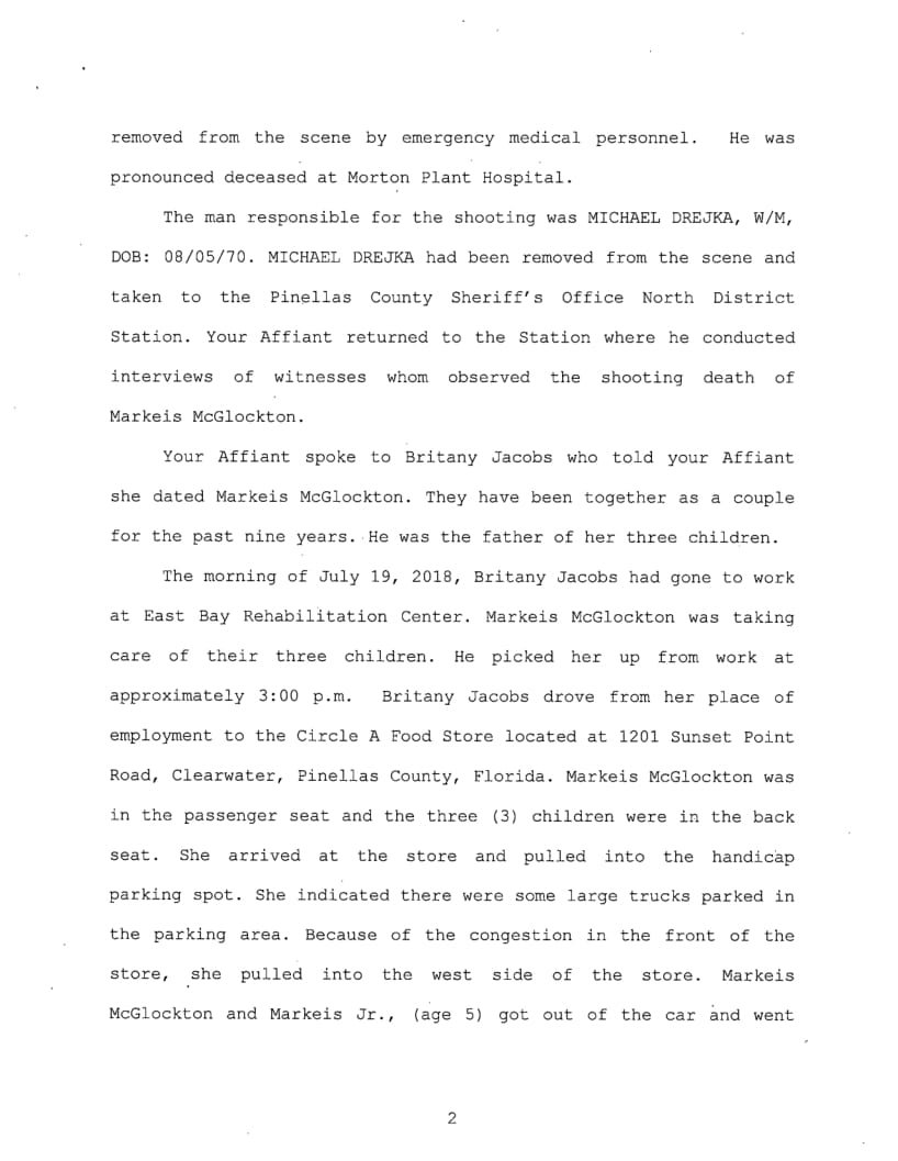 Detectives say Jacobs was waiting outside in the parking lot when she was approached by 47-year-old Michael Drejka of Clearwater. Detectives say that Drejka and Jacobs got into an argument about Jacobs parking in a handicapped parking space.