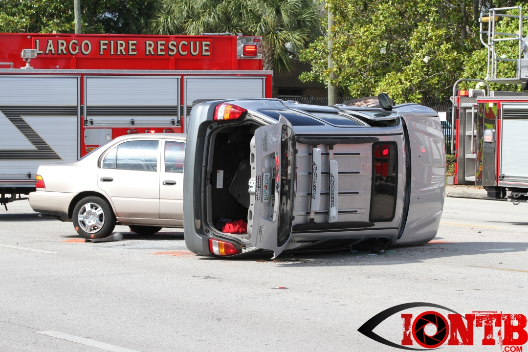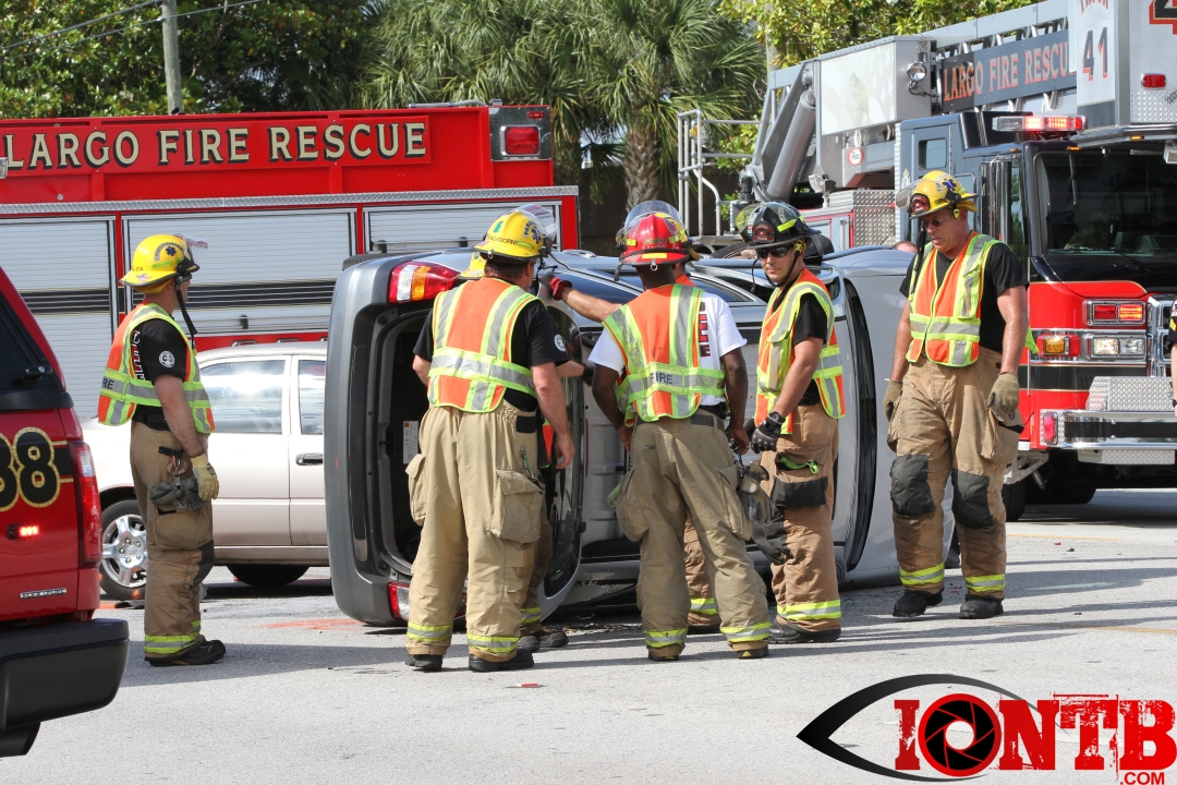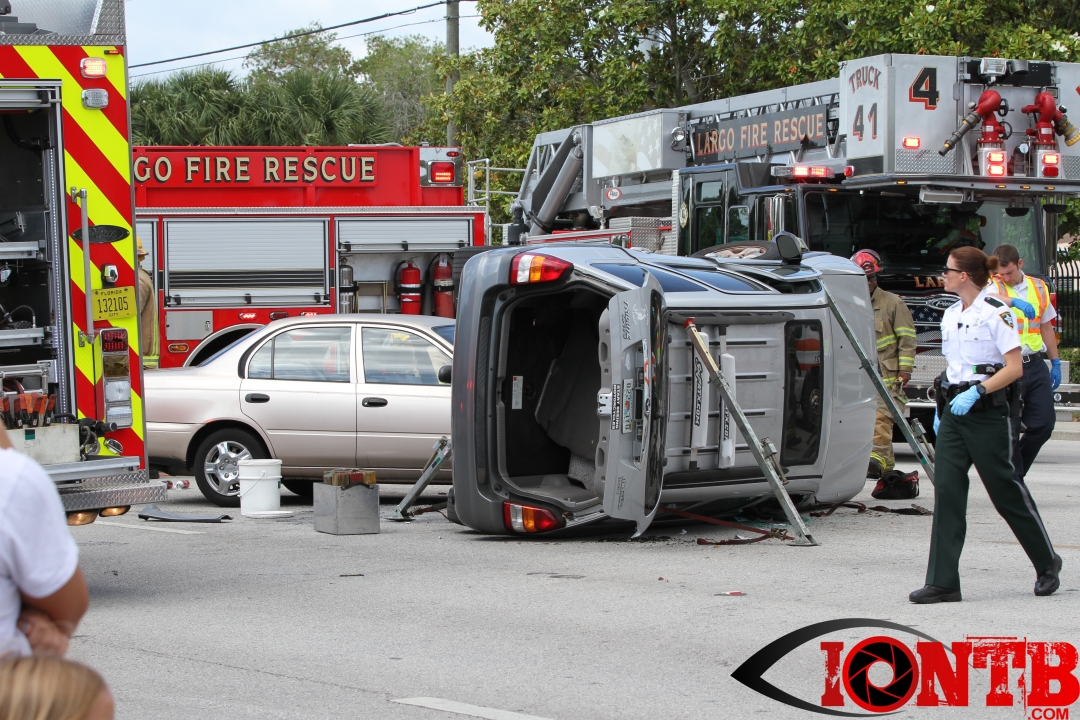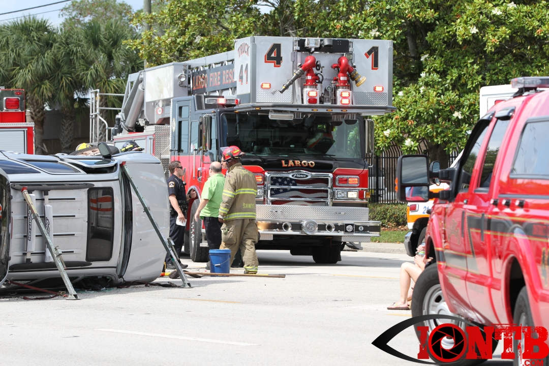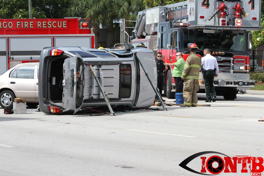 The crash occurred just shortly after 4 pm this afternoon. Â Largo Fire Rescue along with the Pinellas County Sheriff’s Office, Sunstar, and Bayflite were on-scene to secure the scene and assist those injured. Â One middle-aged male was transported via Bayflight and no other individuals involved in the crash were transported via ambulance.