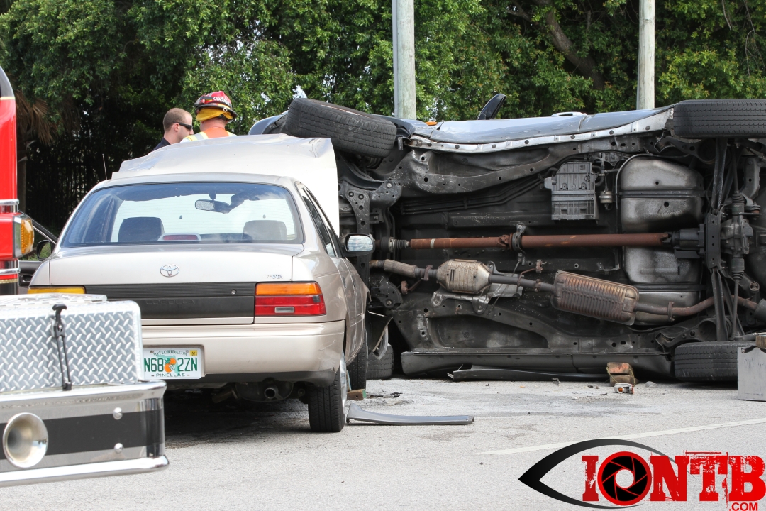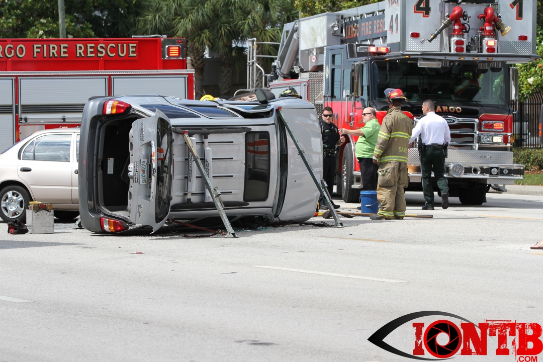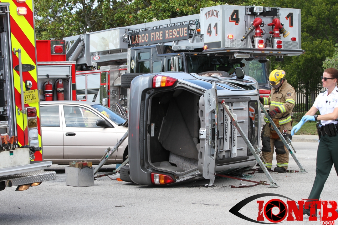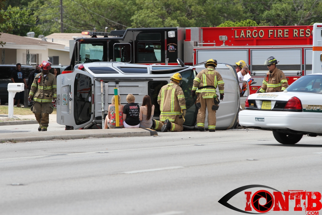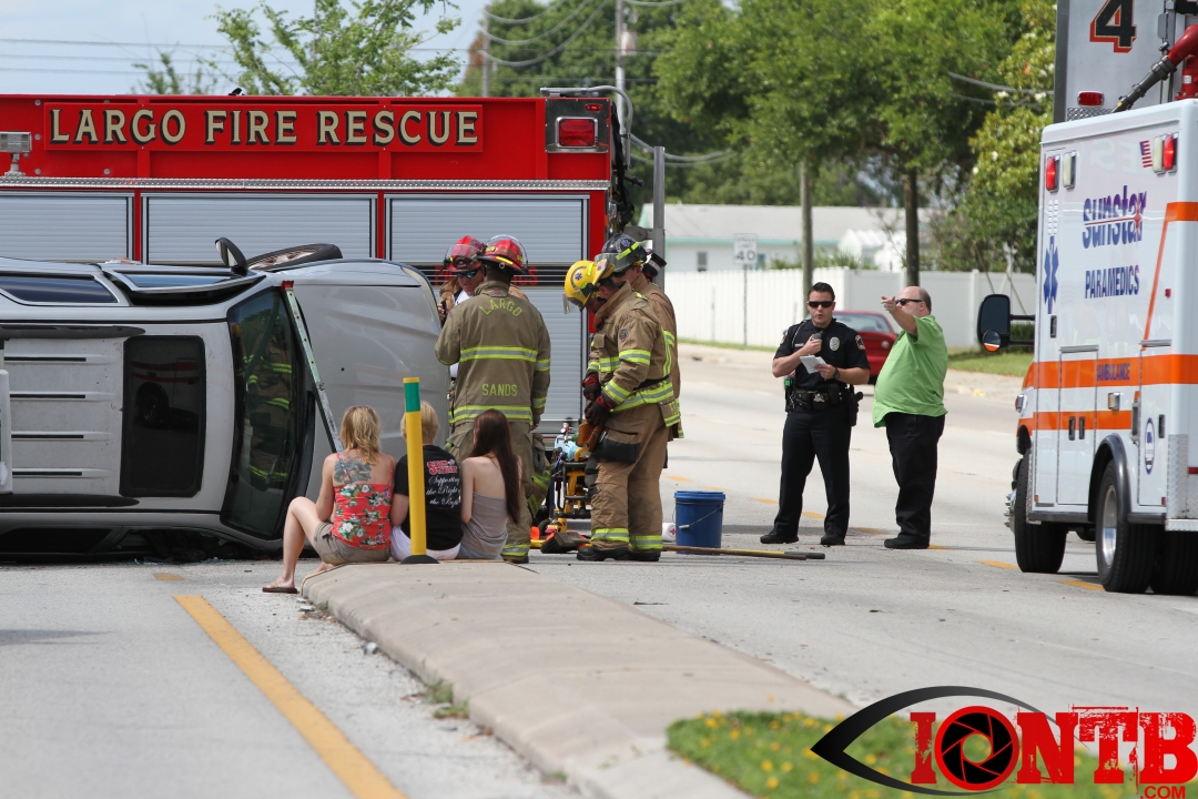 The crash occurred just shortly after 4 pm this afternoon. Â Largo Fire Rescue along with the Pinellas County Sheriff’s Office, Sunstar, and Bayflite were on-scene to secure the scene and assist those injured. Â One middle-aged male was transported via Bayflight and no other individuals involved in the crash were transported via ambulance.