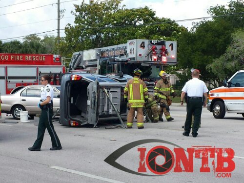 The crash between a Toyota Corolla and a Mazda Tribute left the Tribute on its side with heavy damage evident. Â The driver was rapidly extricated from the vehicle by members of Largo Fire Rescue upon their arrival.