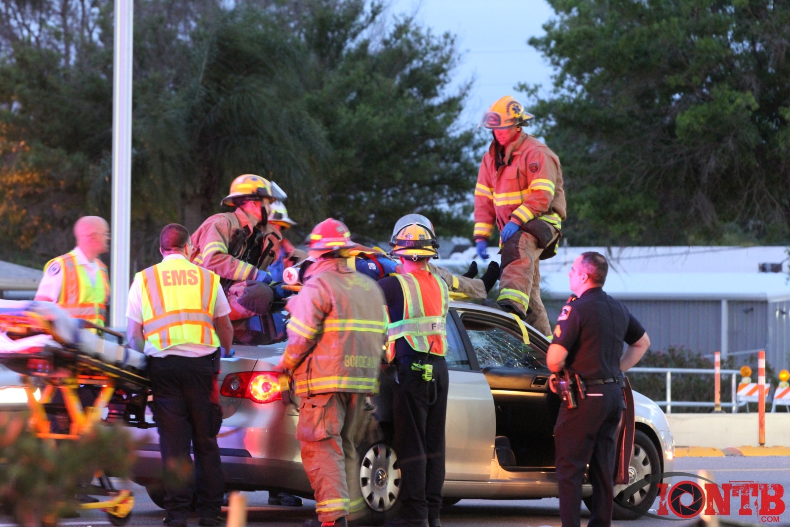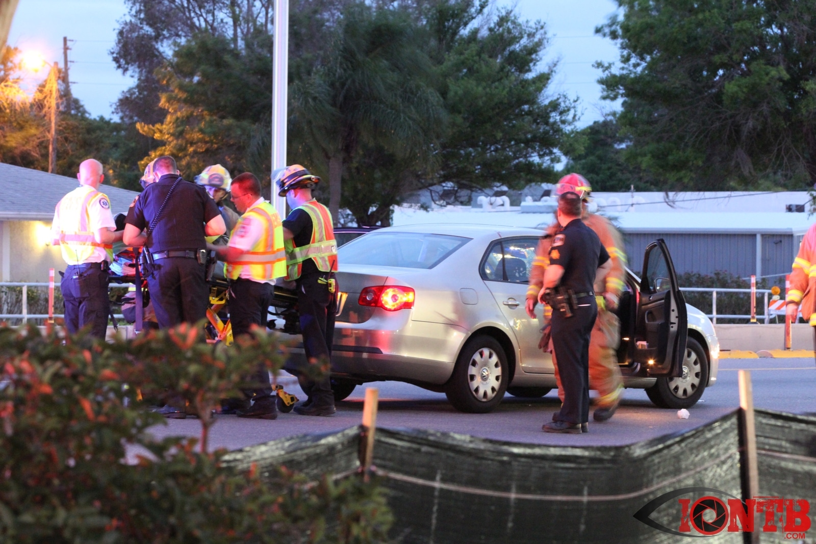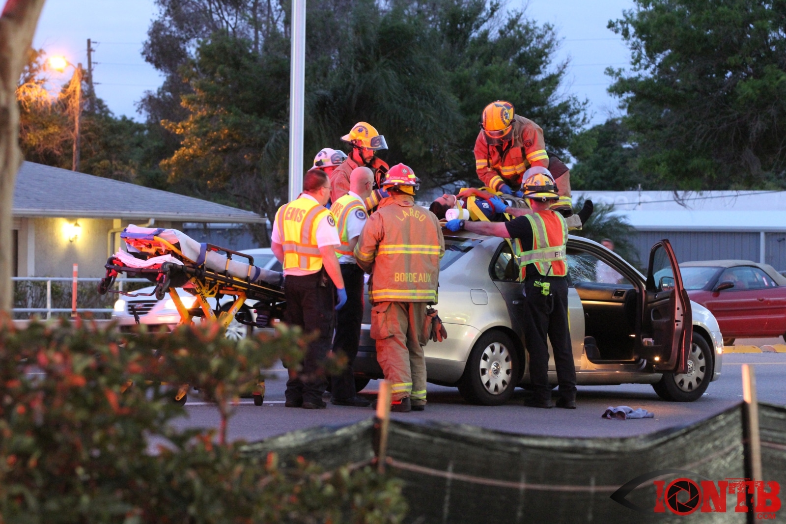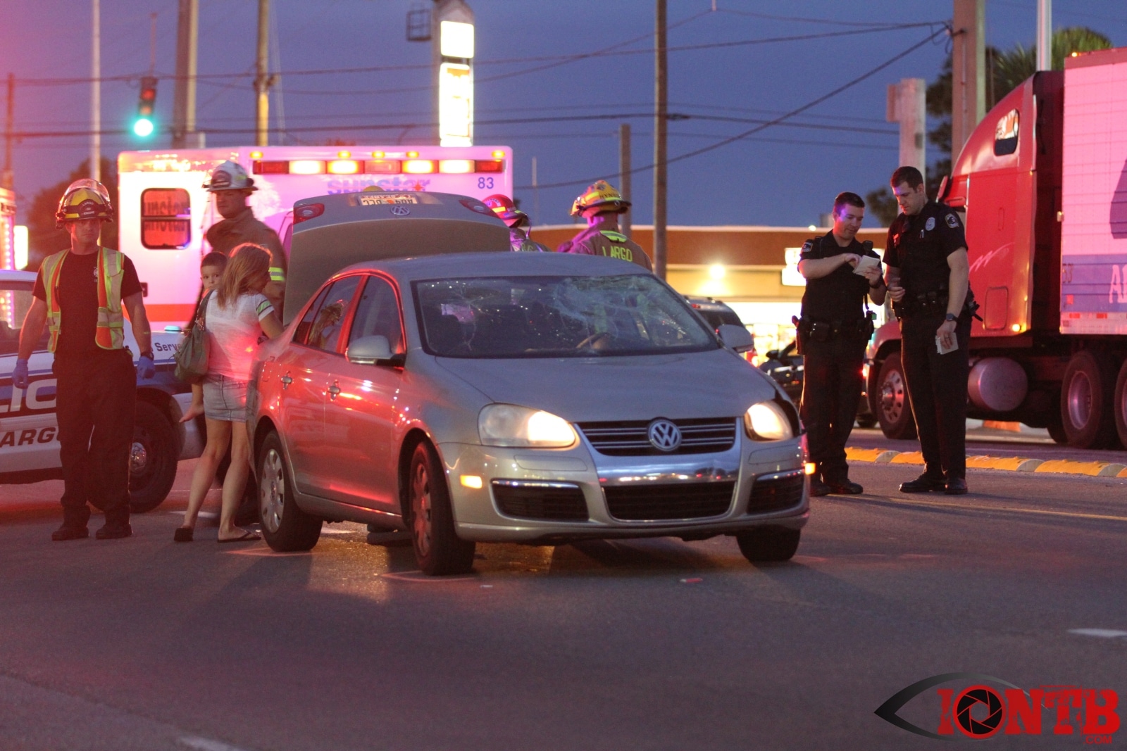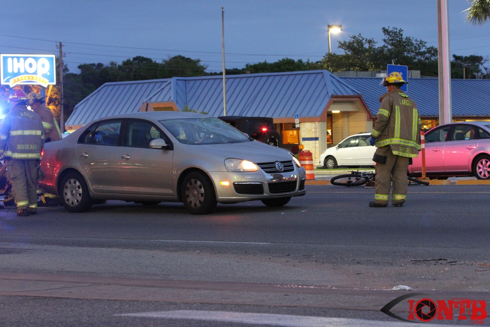 The call for service was near the intersection of Ulmerton Road and Belcher Road. Arriving crews located the incident in the westbound lanes just to the west of Belcher Road. Â The bicyclist was lying atop the vehicle which had a shattered windshield. Â The occupants of the VW sedan did not appear injured in the collision. He was conscious as crews worked to immobilize him while on the roof of the vehicle. Â The bicyclist was transported to the hospital via Sunstar Ambulance. His condition is unknown but the injuries did not appear life-threatening.