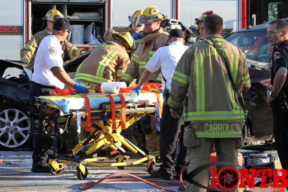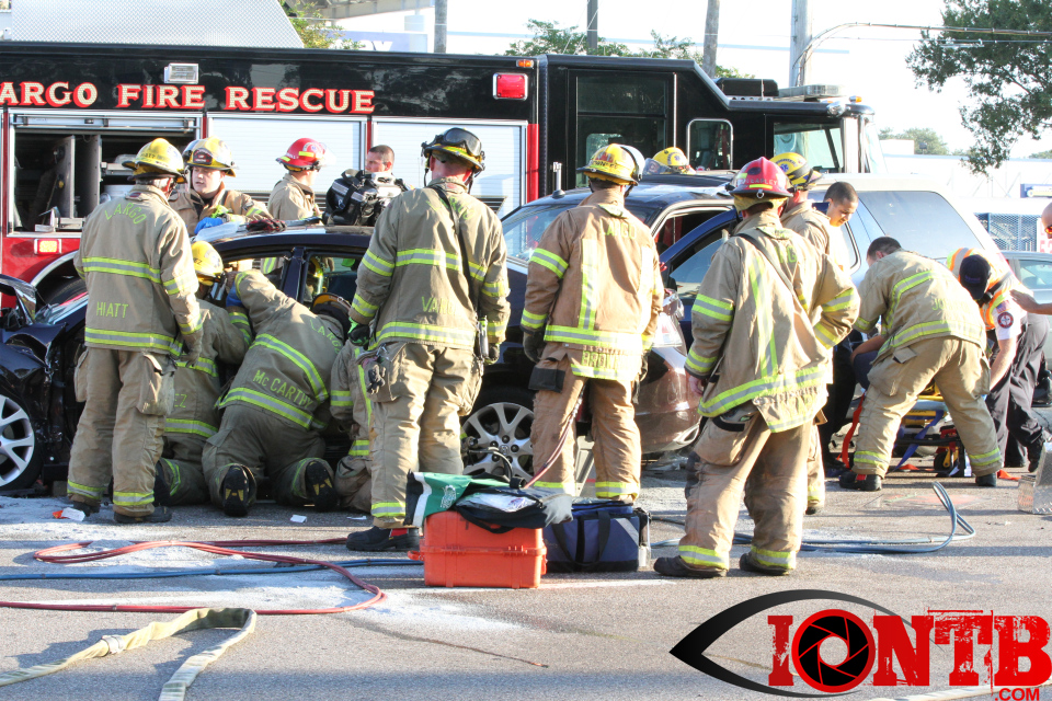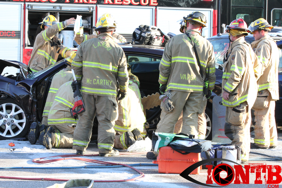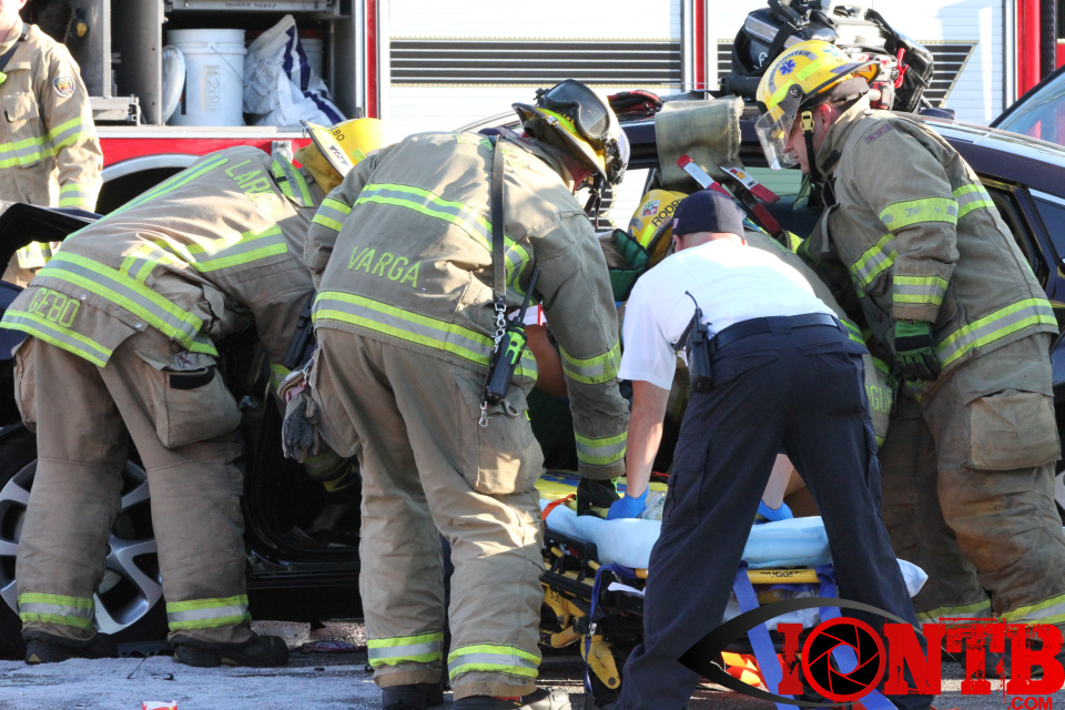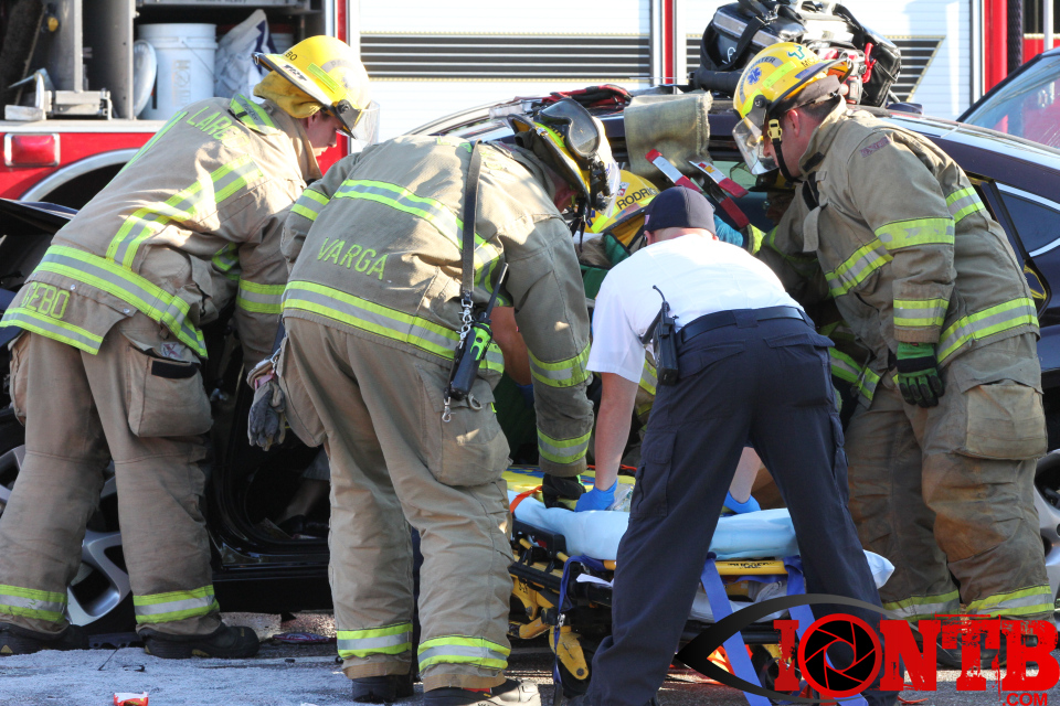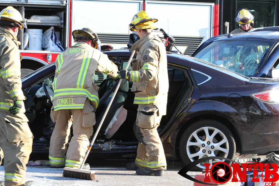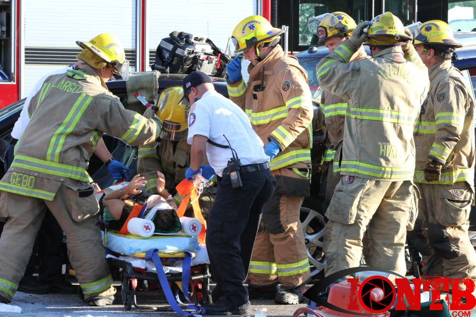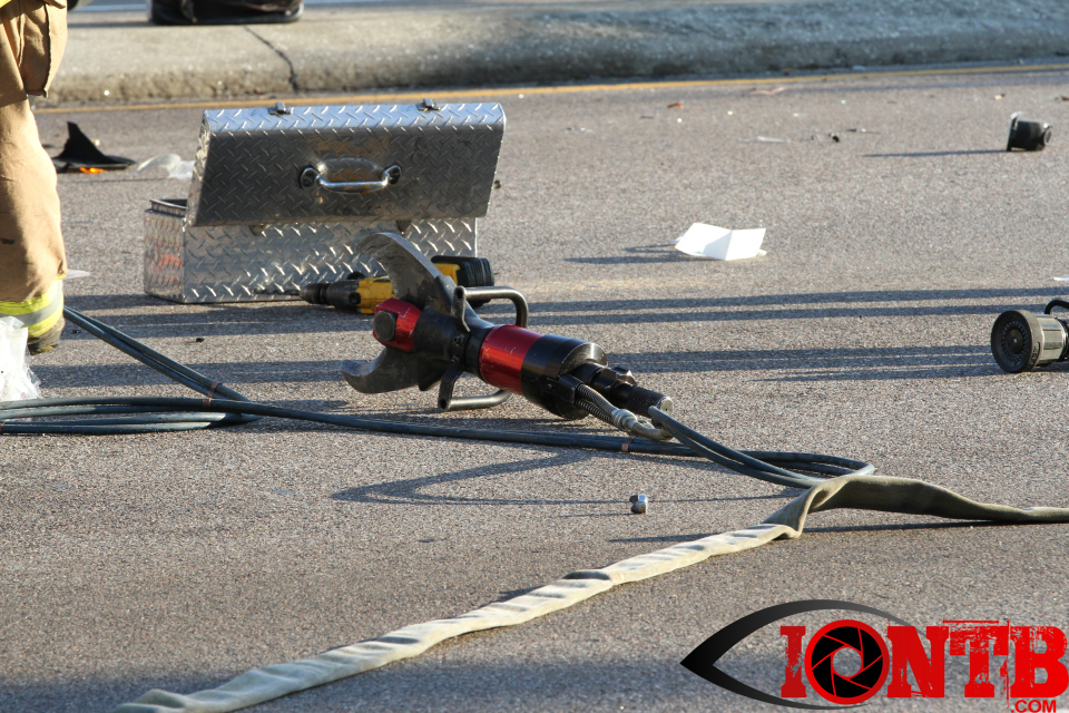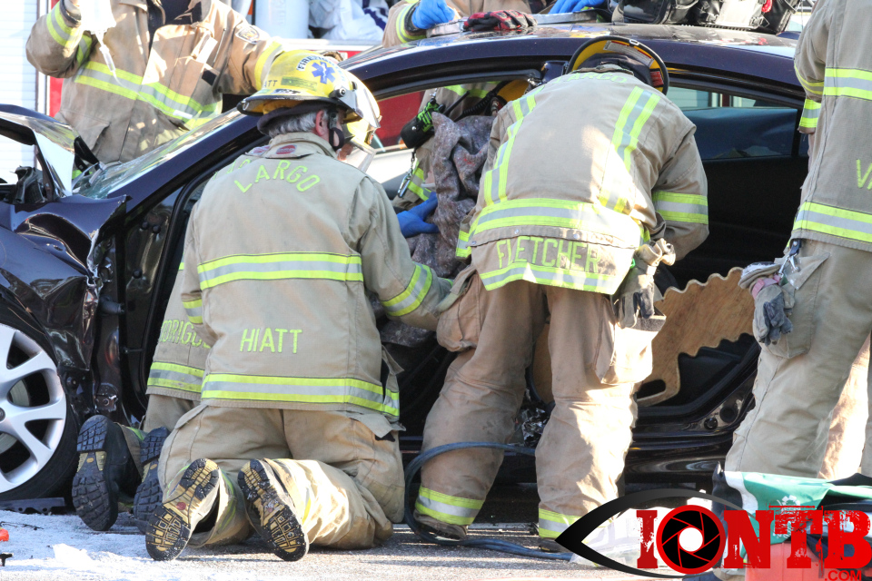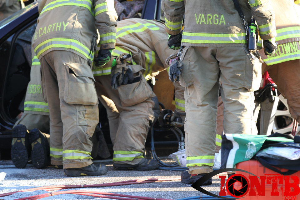 Largo’s Engine 40 was first on-scene and reported two vehicles with heavy damage. Additional units from Largo Fire Rescue and Clearwater Fire & Rescue were dispatched to assist. Initially, it appeared as if two patients would need to be extricated from the heavily damaged vehicles. Multiple extrication tools were used to remove the vehicle doors on one of the vehicles. The other individual was able to be removed without requiring an extrication operation.