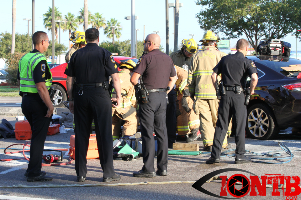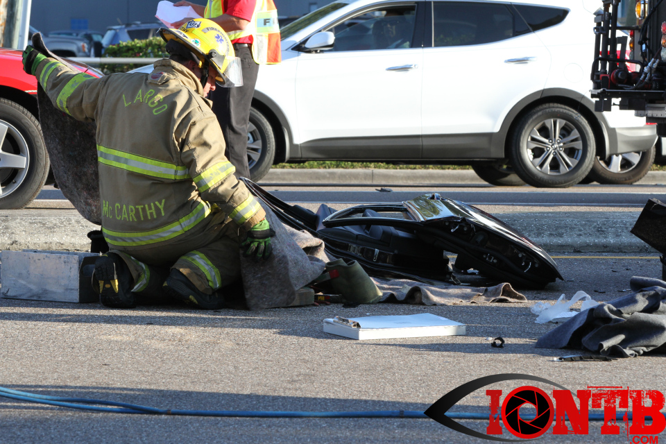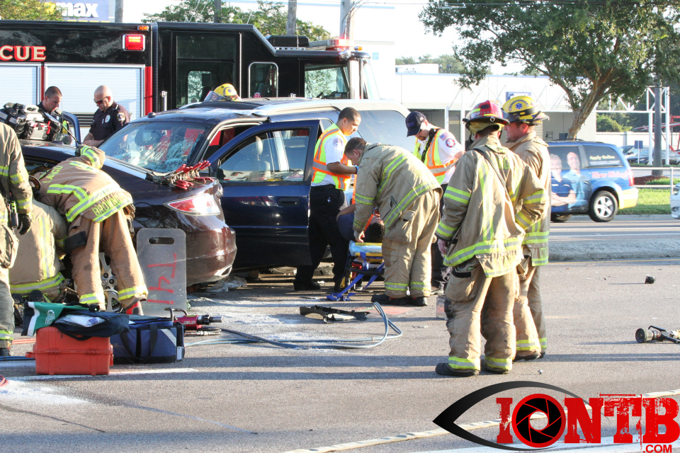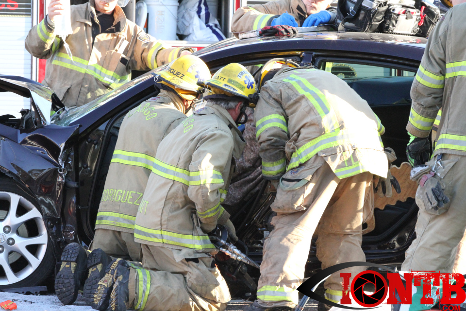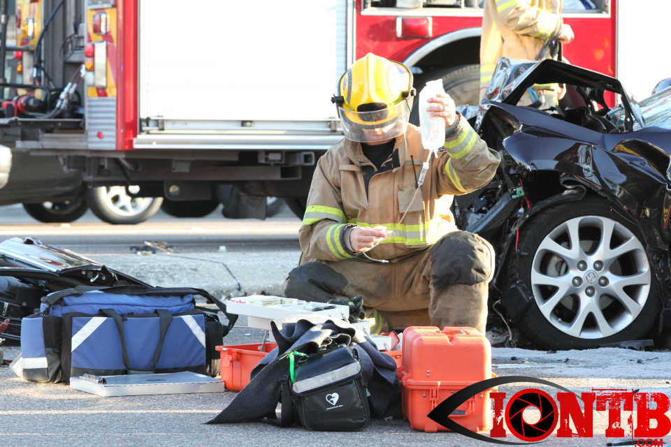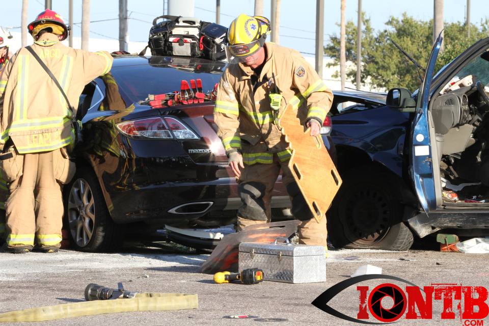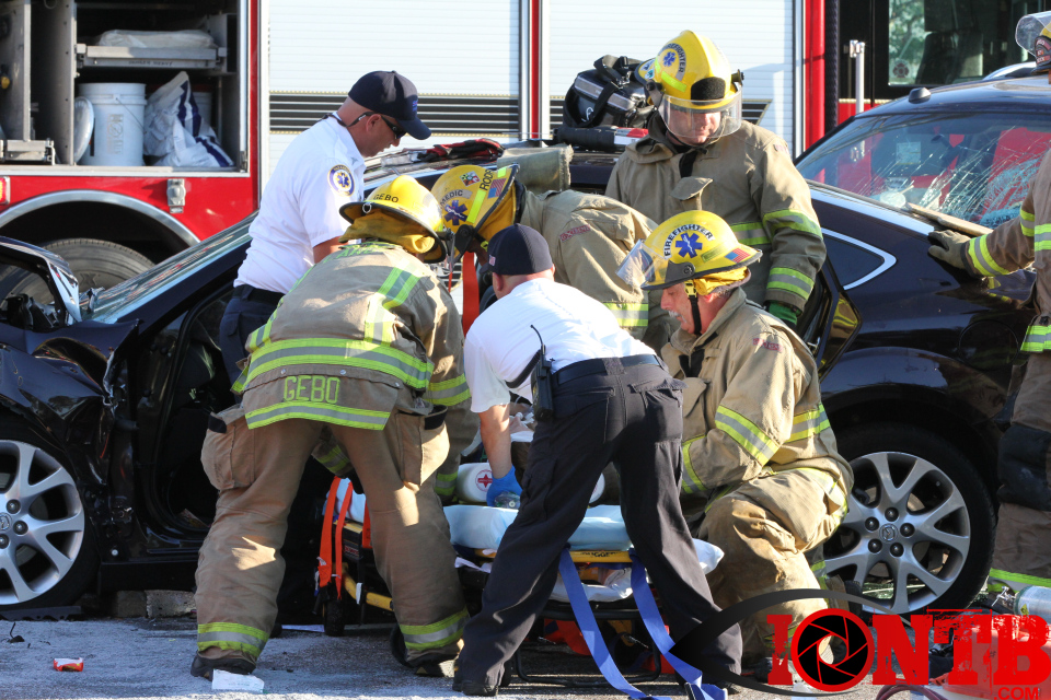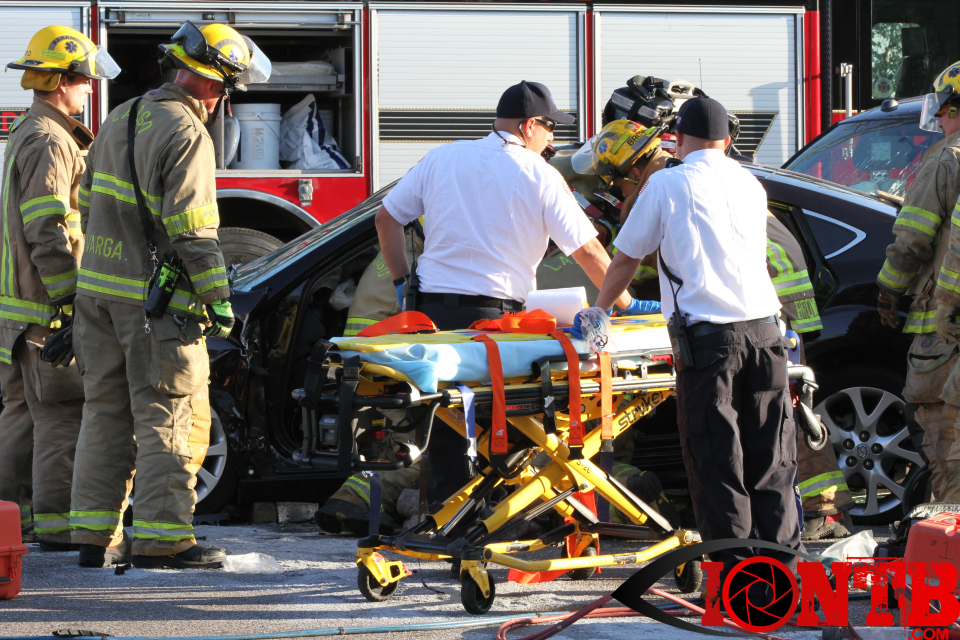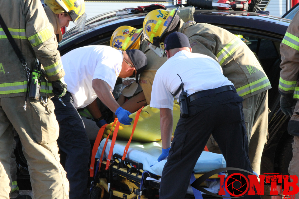 Largo’s Engine 40 was first on-scene and reported two vehicles with heavy damage. Additional units from Largo Fire Rescue and Clearwater Fire & Rescue were dispatched to assist. Initially, it appeared as if two patients would need to be extricated from the heavily damaged vehicles. Multiple extrication tools were used to remove the vehicle doors on one of the vehicles. The other individual was able to be removed without requiring an extrication operation.