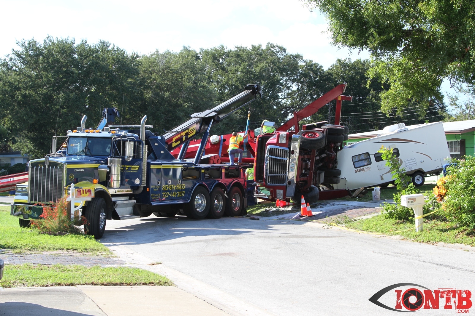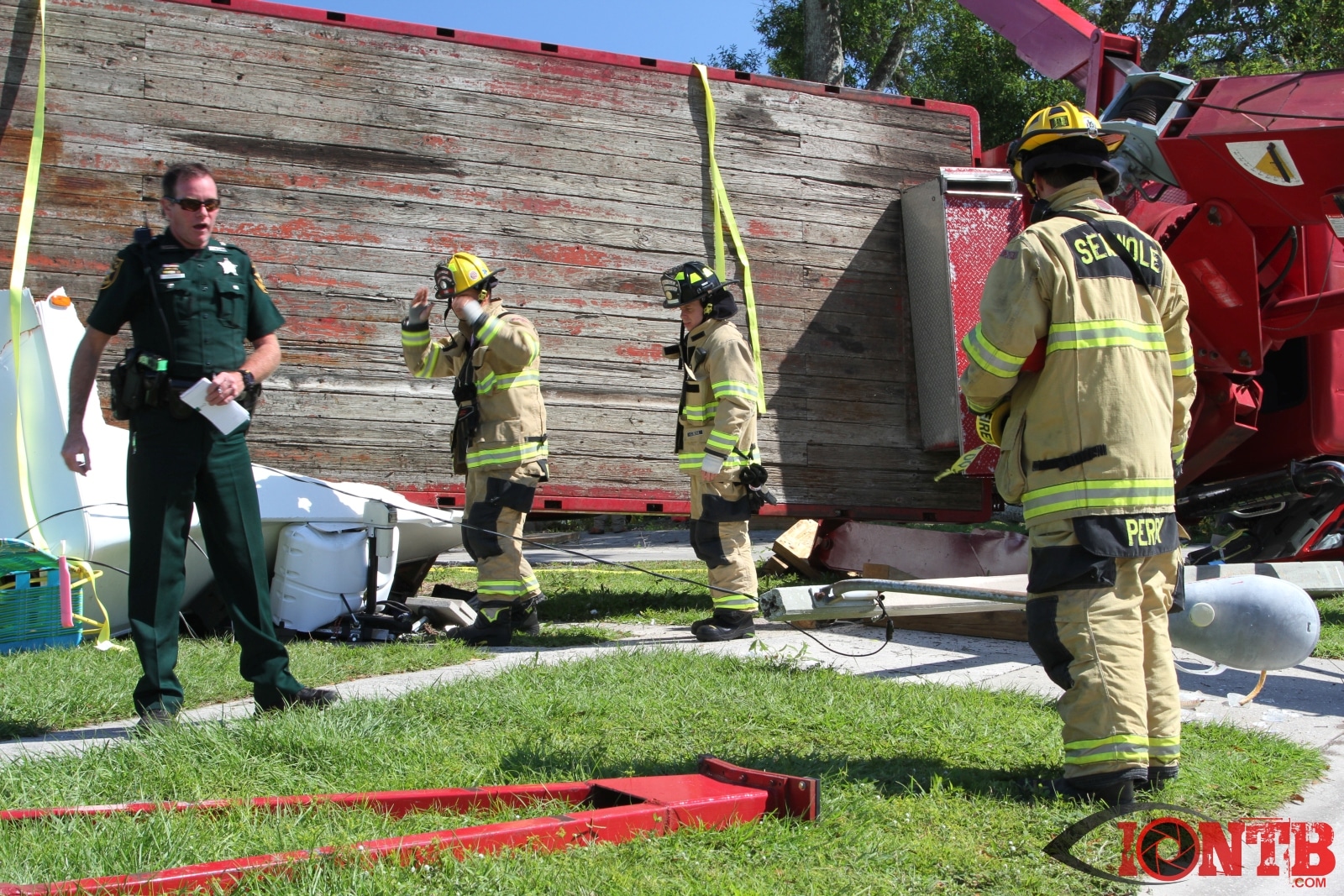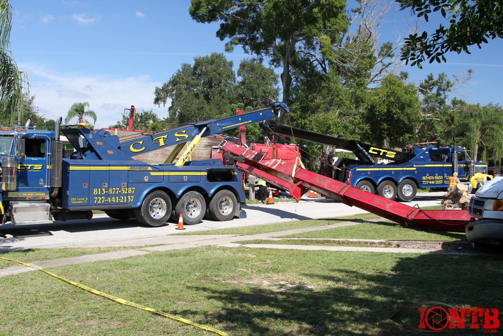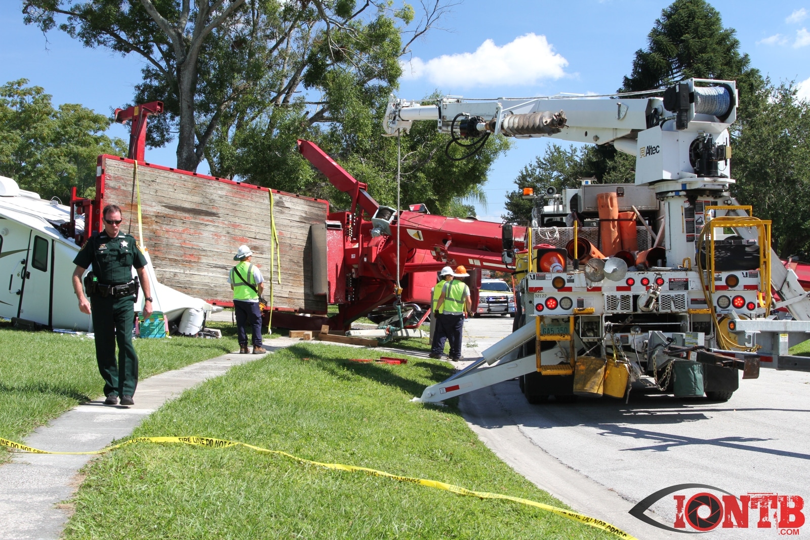 A call for service came in about 11:30AM on Sunday, October 19, 2014 after a heavy-duty crane tipped while lifting a large piece of an oak tree. Seminole Fire Rescue along with the Pinellas County Sheriff’ Office arrived on scene.