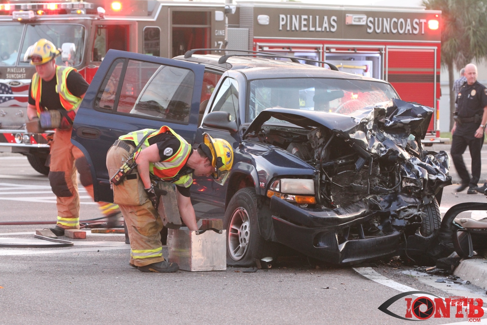 It appears that two cars were involved and both experienced heavy damage. Crews from Largo Fire Rescue and Pinellas Suncoast Fire & Rescue worked to free the injured from the heavily damaged vehicles. At the same time, crews worked to secure a landing zone for two air transports which were requested to the scene. Bayflite 3 and Bayflite 4 arrived just minutes apart very close to the crash site.