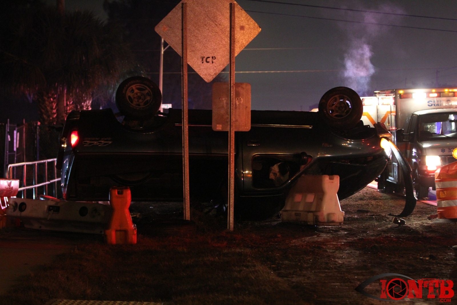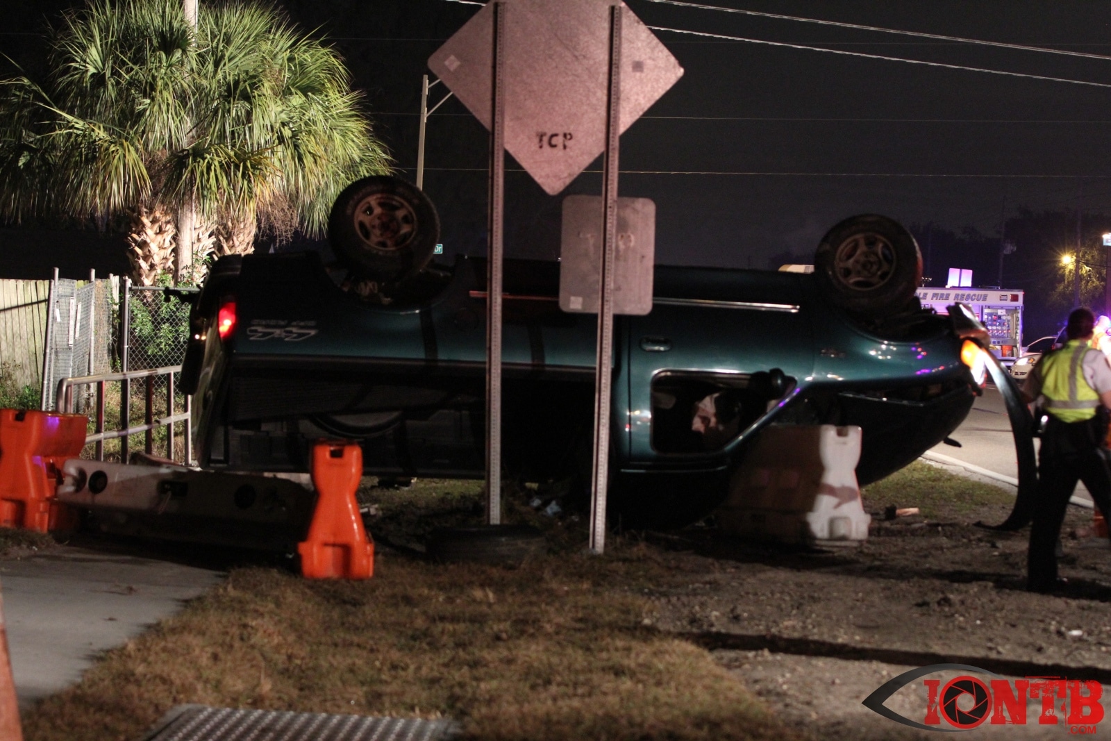 Arriving fire crews worked in an attempt to locate the driver of the pickup truck fearing a possible ejection. Witnesses stated that the vehicle rolled over many times before coming to rest. Crews walked up and down the nearby canal looking for the driver of the vehicle. A K-9 Deputy arrived in an attempt to seek the drivers location. It is assumed that the driver fled the scene.