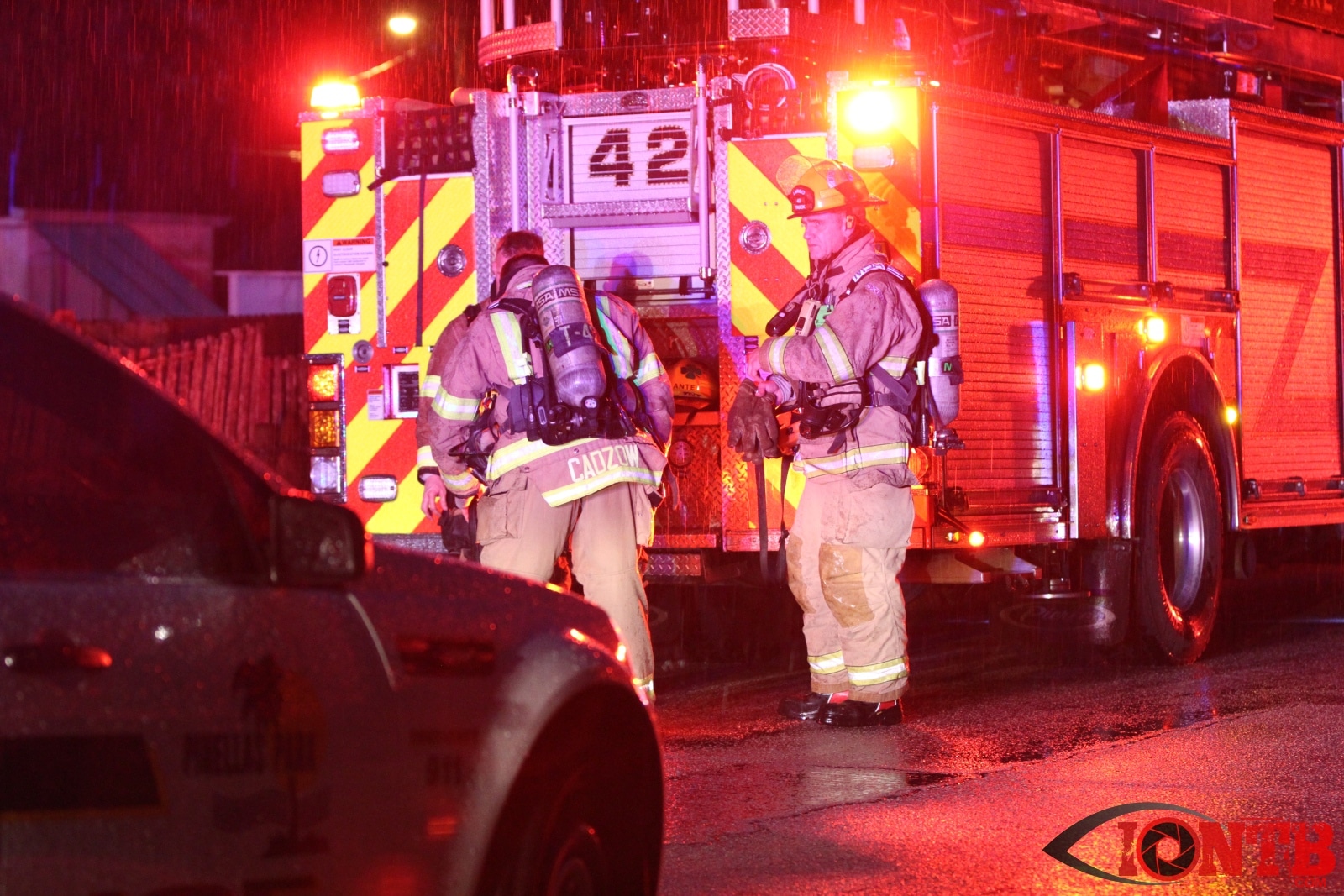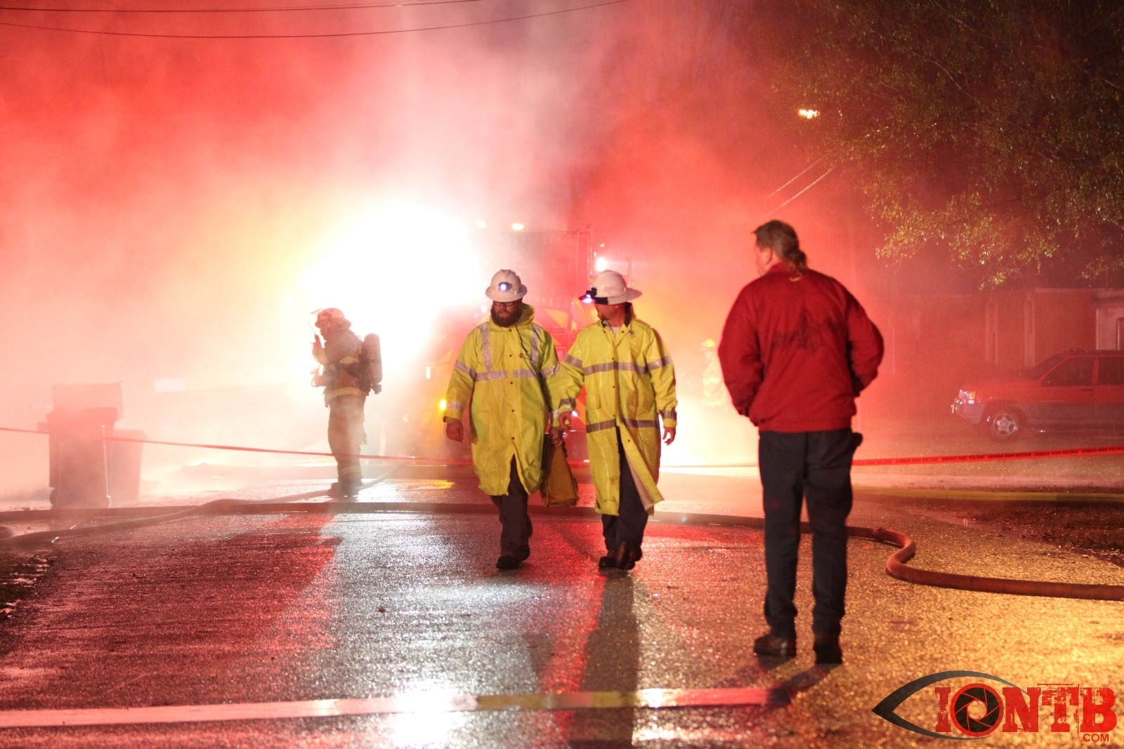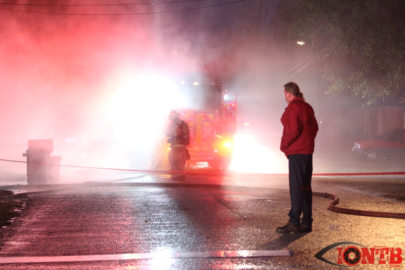 Red Cross was called in to assist the occupants of the structure along with the rescued dog.