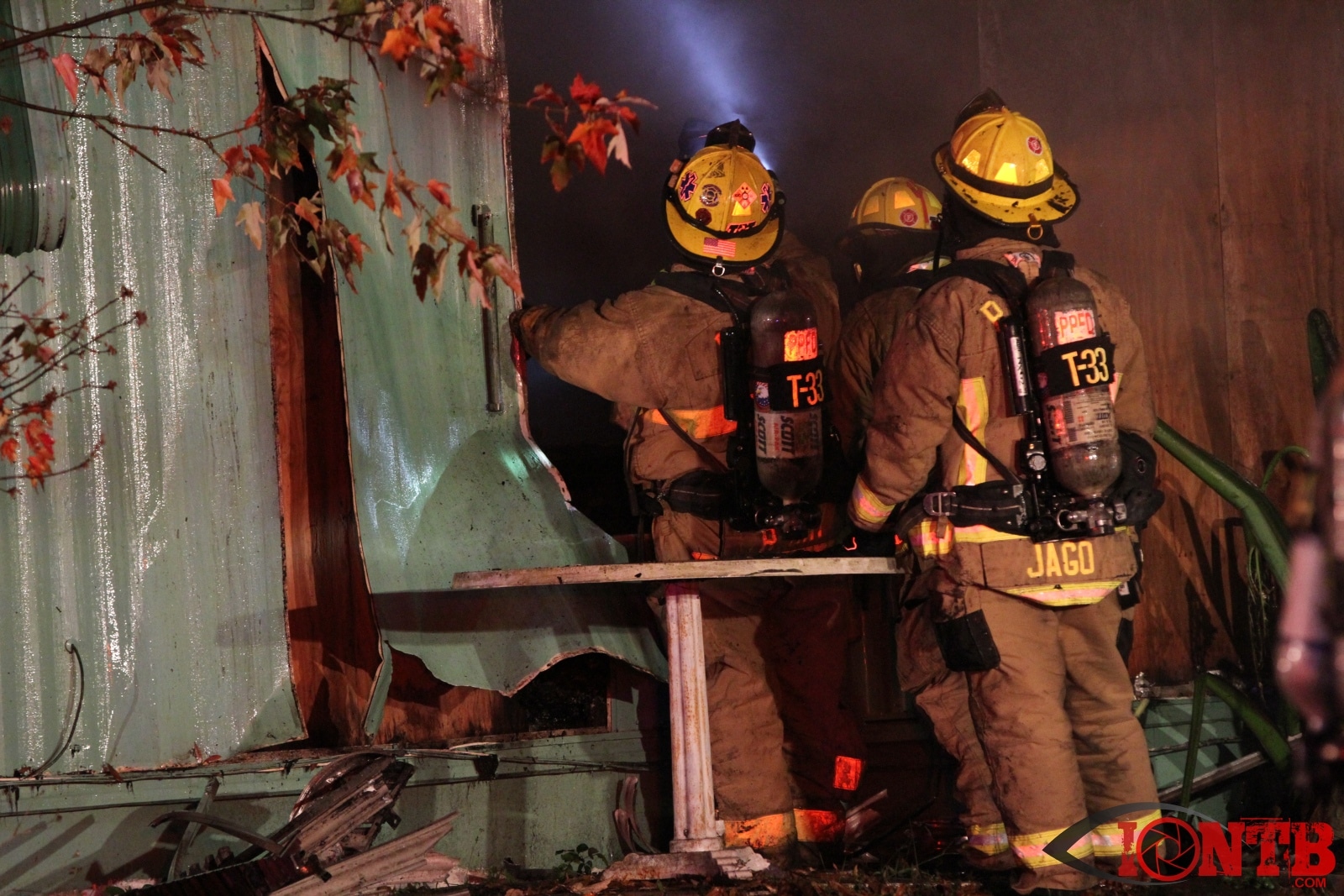 An energized power line was down very close to the burning structure and Duke Energy was dispatched.