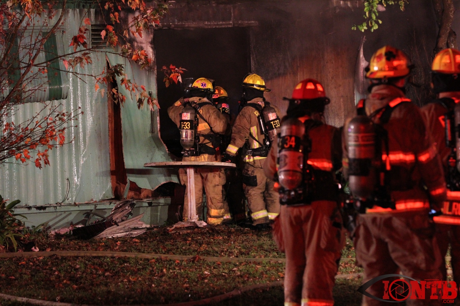 land015Crews battle a mobile home fire Wednesday night in Pinellas Park