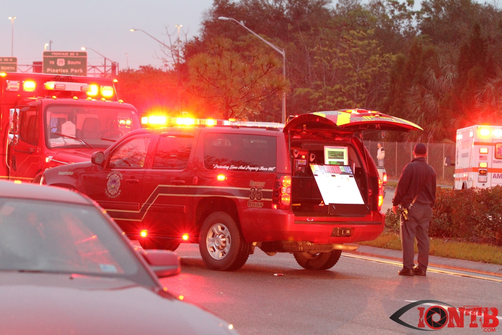 Units from Pinellas Park Fire Station 35 were first to arrive on-scene. When they arrived they reported two vehicles with heavy damage. One of the vehicles was also on fire and crews were quickly able to bring it under control. Additional resources were dispatched from Pinellas Park Fire Department, Sunstar Paramedics, Largo Fire Rescue and St. Petersburg Fire Rescue. Multiple units from Pinellas Park Police Department arrived on scene to help during this very difficult incident.