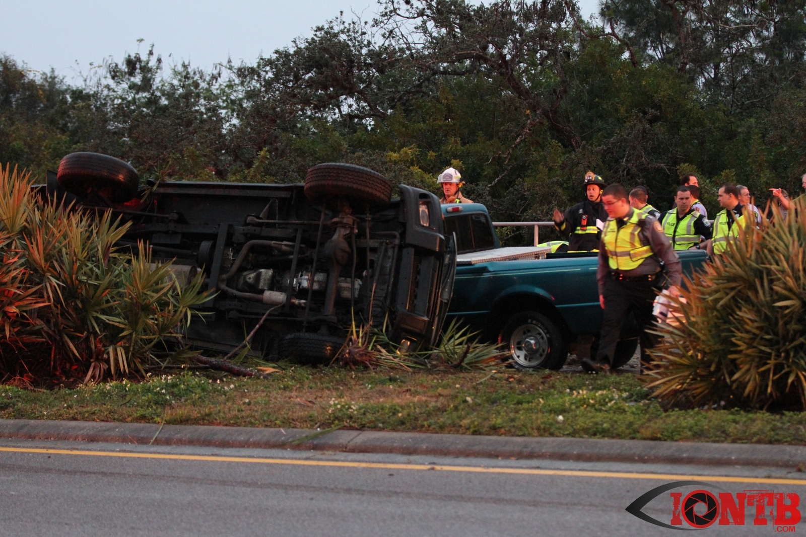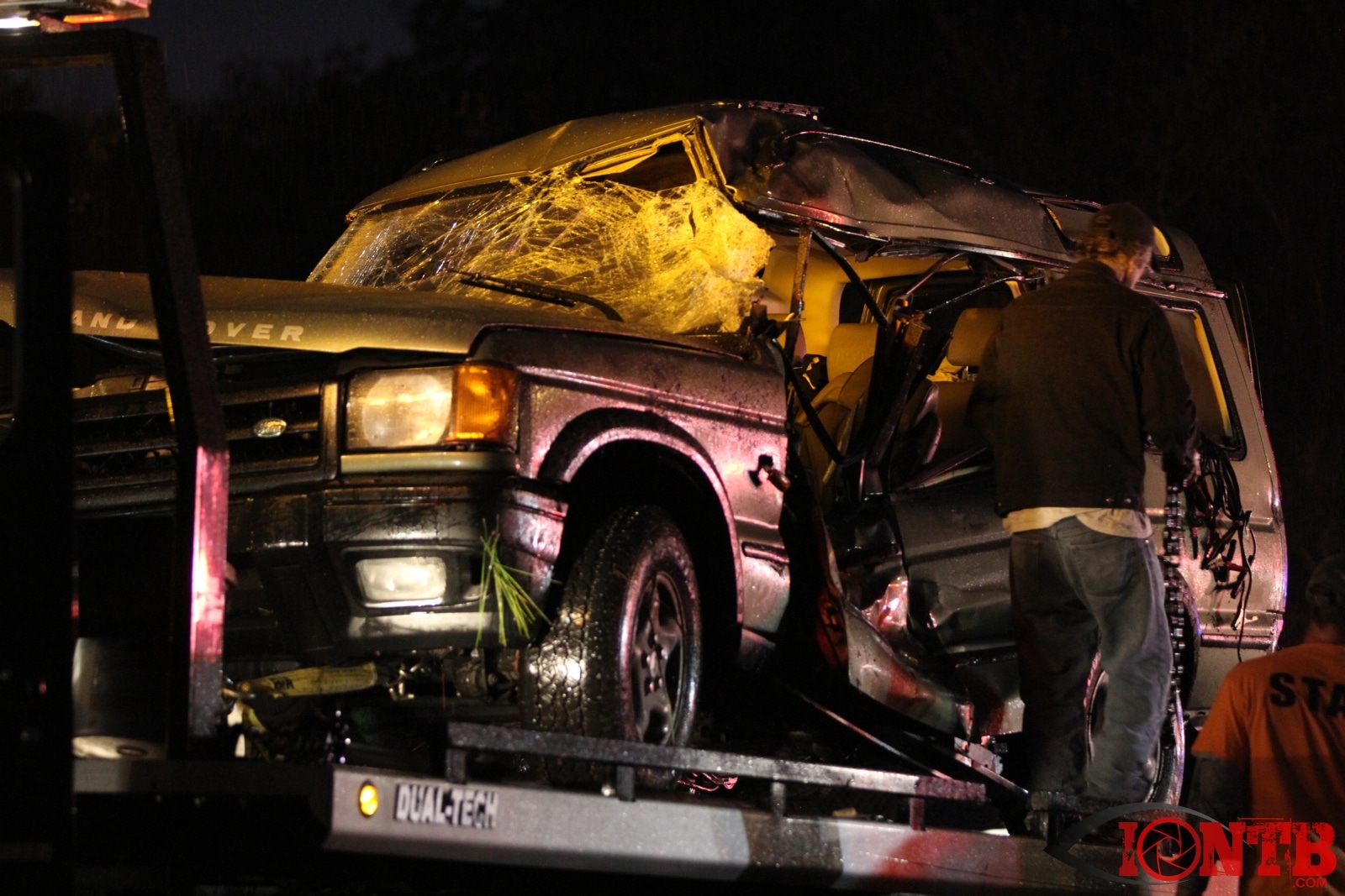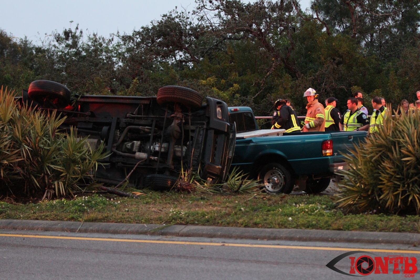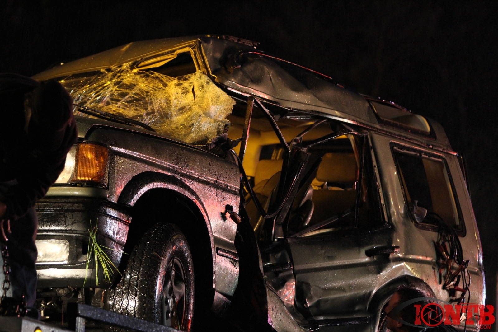 Many great citizens stopped to assist with this crash prior to the arrival our fire crews. Ryan Smith was one of those citizens that was driving home from work next to the green Ford Ranger at the time of the crash. He described a very dramatic scene as himself and many others removed the occupants from the vehicles, one of which was on fire. Mr. Smith has provided IONTB access to a few very dramatic photos taken during the immediate aftermath of the crash. He described the SUV has being airborne and landing on the hood of the Ford truck before coming to rest on its side.