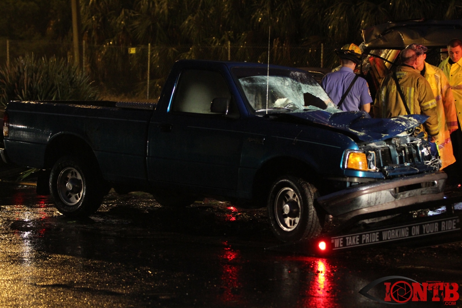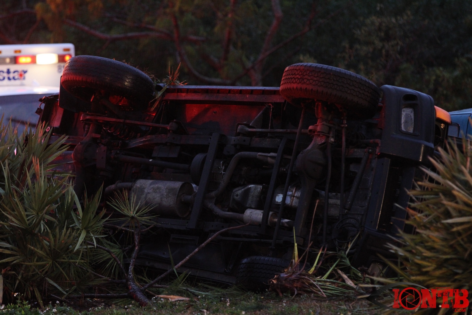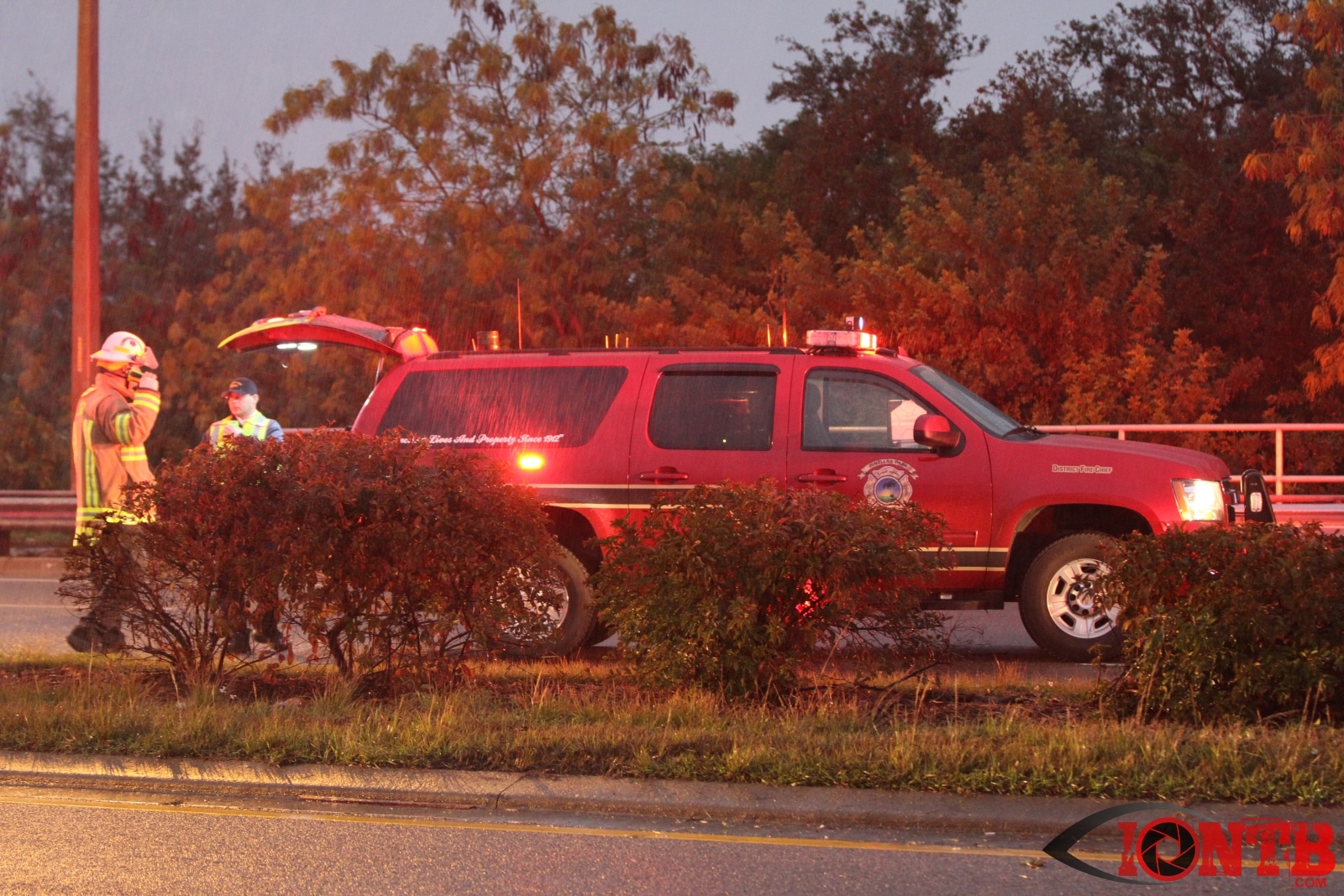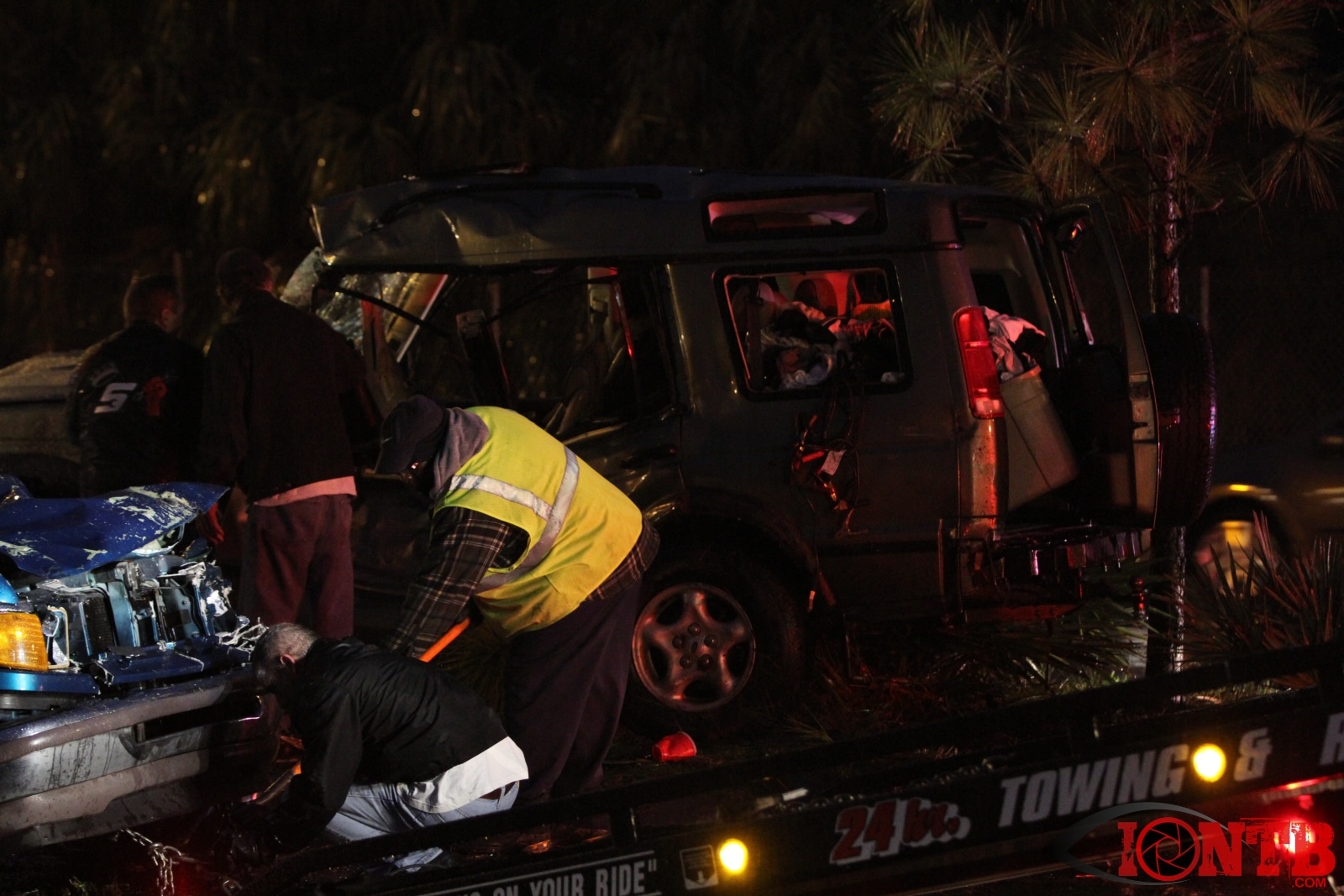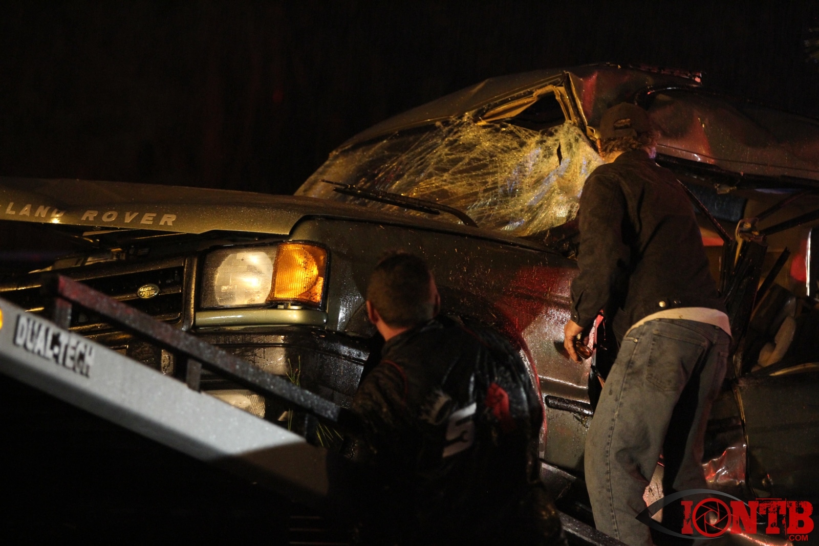 Many great citizens stopped to assist with this crash prior to the arrival our fire crews. Ryan Smith was one of those citizens that was driving home from work next to the green Ford Ranger at the time of the crash. He described a very dramatic scene as himself and many others removed the occupants from the vehicles, one of which was on fire. Mr. Smith has provided IONTB access to a few very dramatic photos taken during the immediate aftermath of the crash. He described the SUV has being airborne and landing on the hood of the Ford truck before coming to rest on its side.