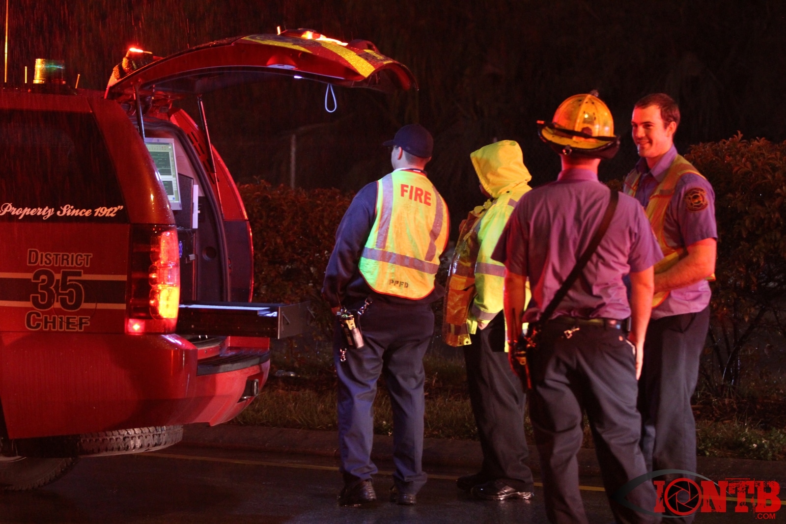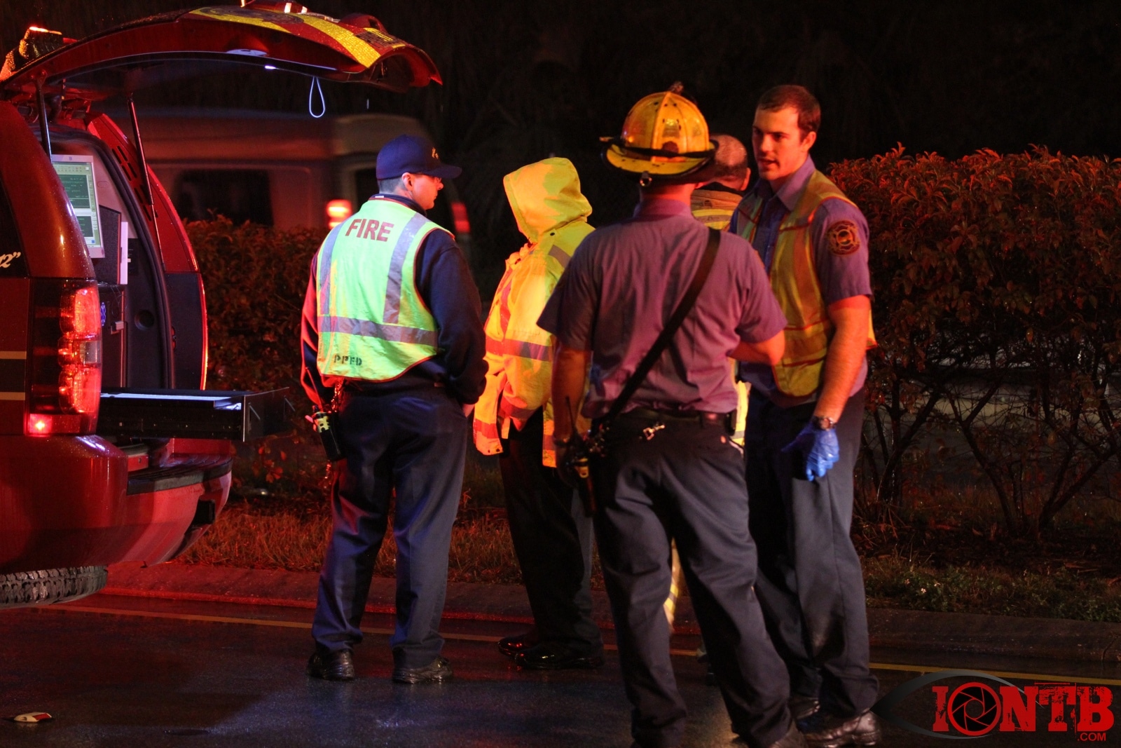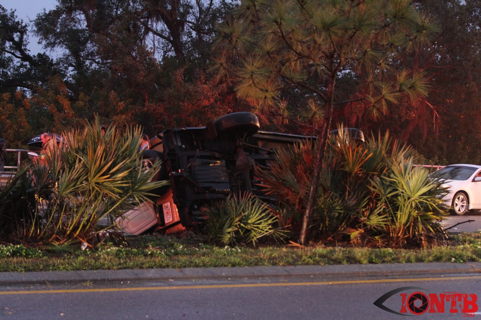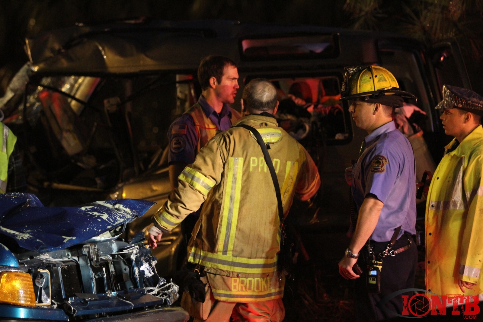 Many great citizens stopped to assist with this crash prior to the arrival our fire crews. Ryan Smith was one of those citizens that was driving home from work next to the green Ford Ranger at the time of the crash. He described a very dramatic scene as himself and many others removed the occupants from the vehicles, one of which was on fire. Mr. Smith has provided IONTB access to a few very dramatic photos taken during the immediate aftermath of the crash. He described the SUV has being airborne and landing on the hood of the Ford truck before coming to rest on its side.