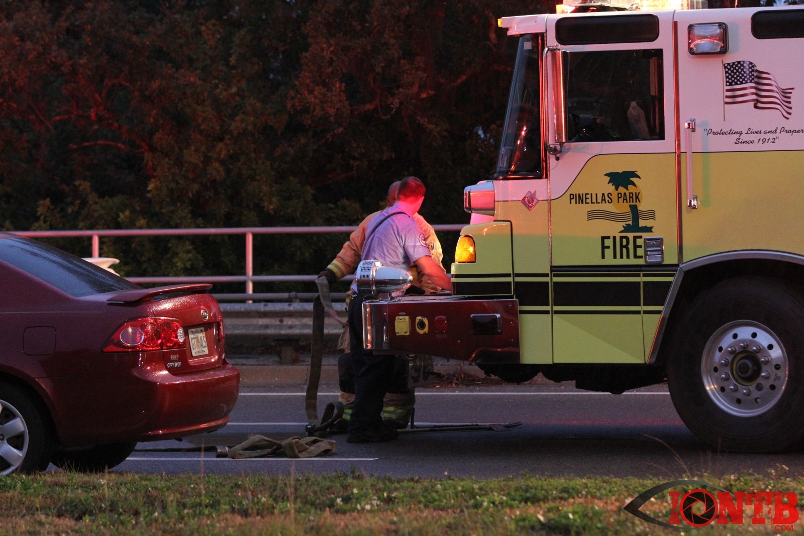 Crews from Pinellas Park Fire Department were dispatched to reports of a vehicle crash this evening about 5:45pm. The crash was located in the westbound lanes of Bryan Dairy Road just to the west of US Highway 19.