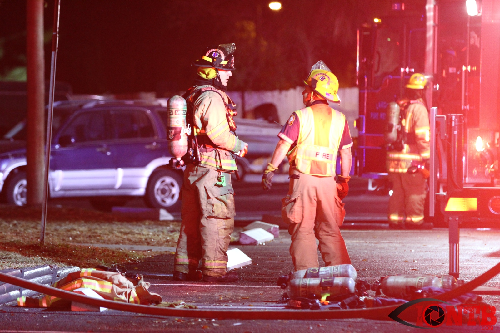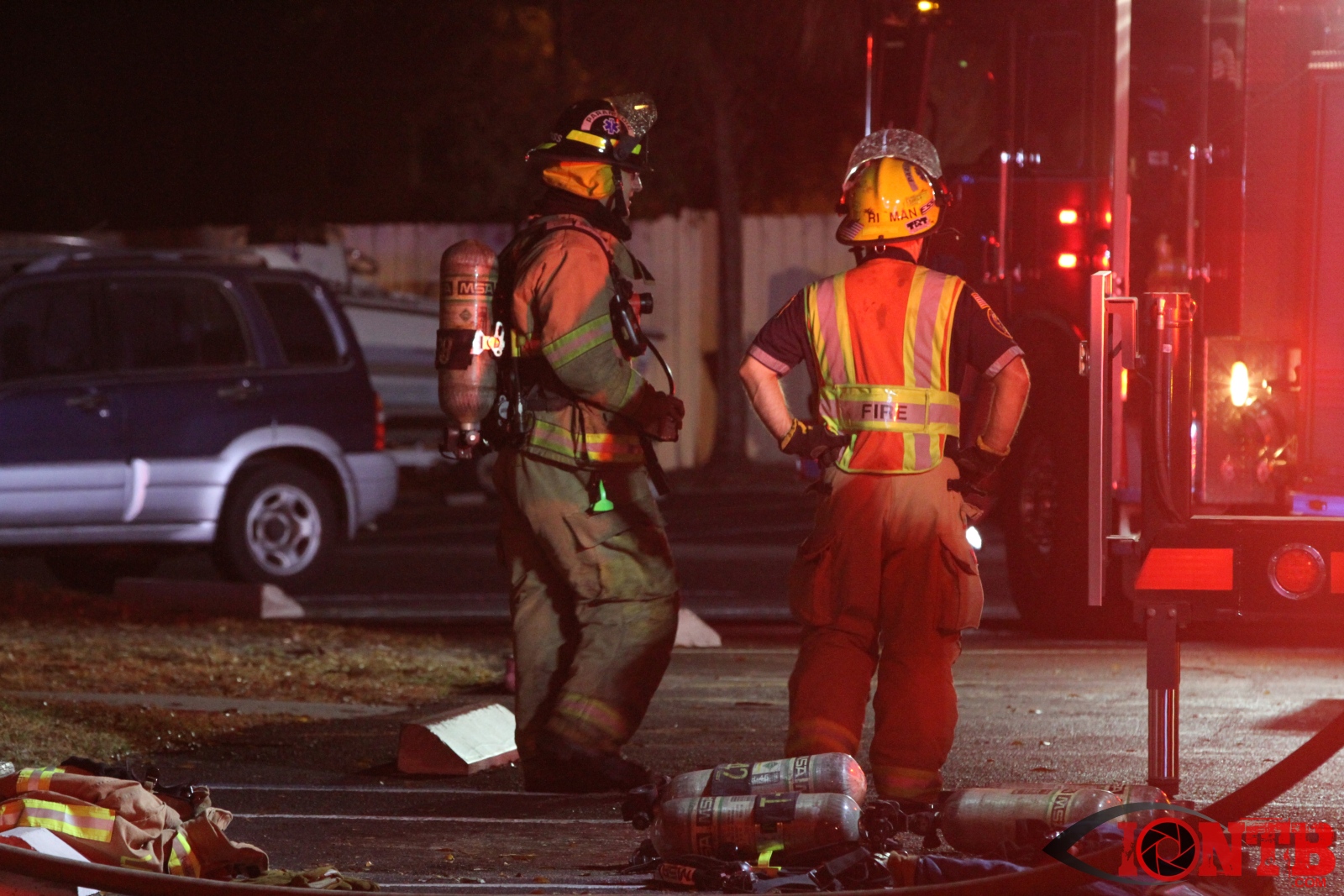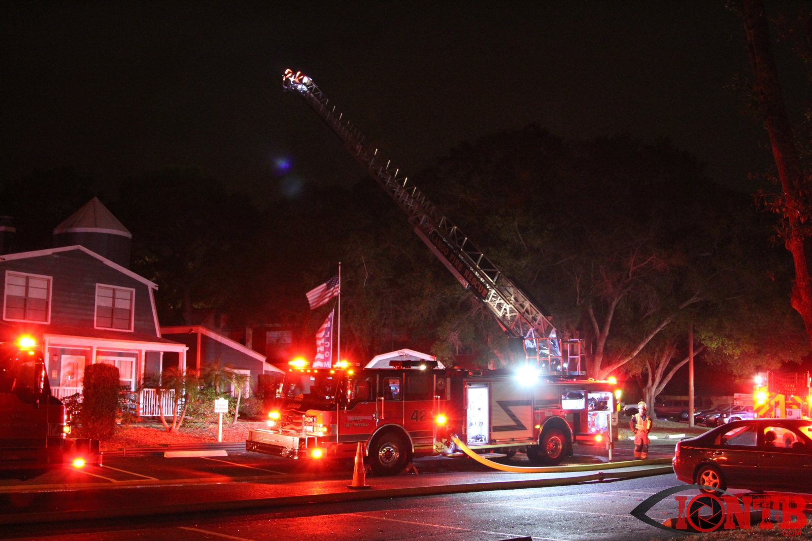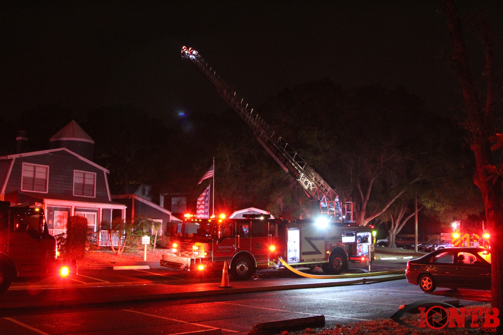 Airport rescue and firefighting (ARFF) units at the nearby St Pete Clearwater airport reported seeing flames. Arriving units reported heavy smoke and flames in two of the units. A second alarm was called as additional resources were required.