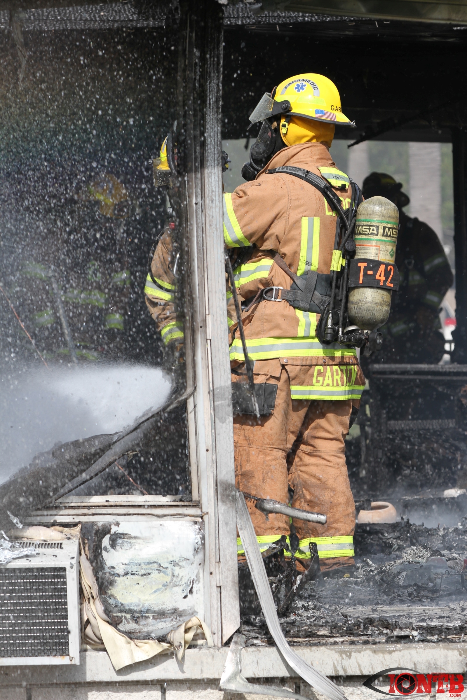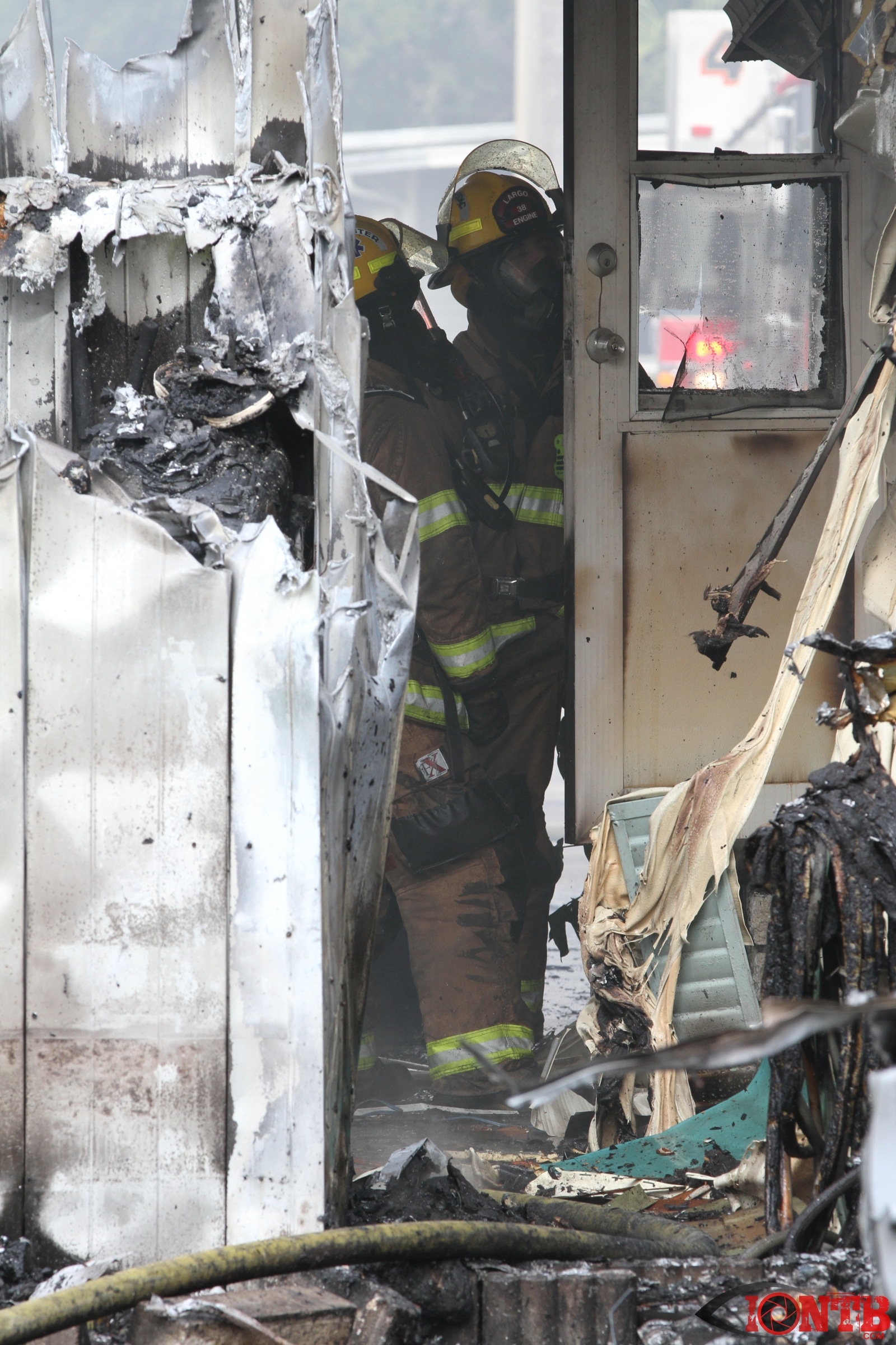 Thick black smoke was visible from miles away and the first arriving units began an offensive attack against the smoke and flames. Additional units arrived within minutes and the fire was brought under control in about 20-25 minutes. The mobile home had extensive damage and was a total loss.