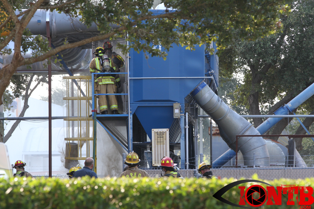 The fire was contained to a dust vacuum unit. Firefighters undertook the painstaking and lengthy process of removing all of the individual filters within the unit. This process required a continual swap out of fresh crews to continue the lengthy activity.