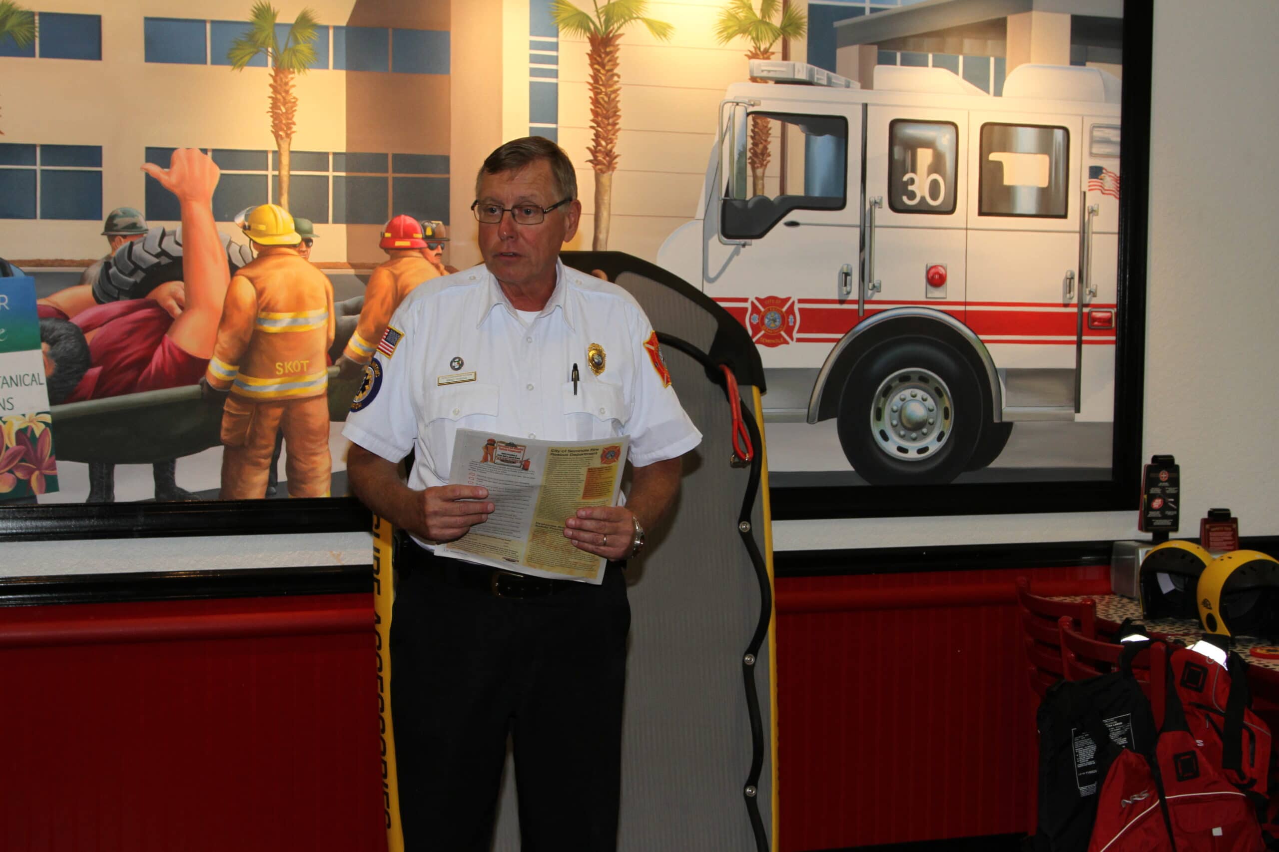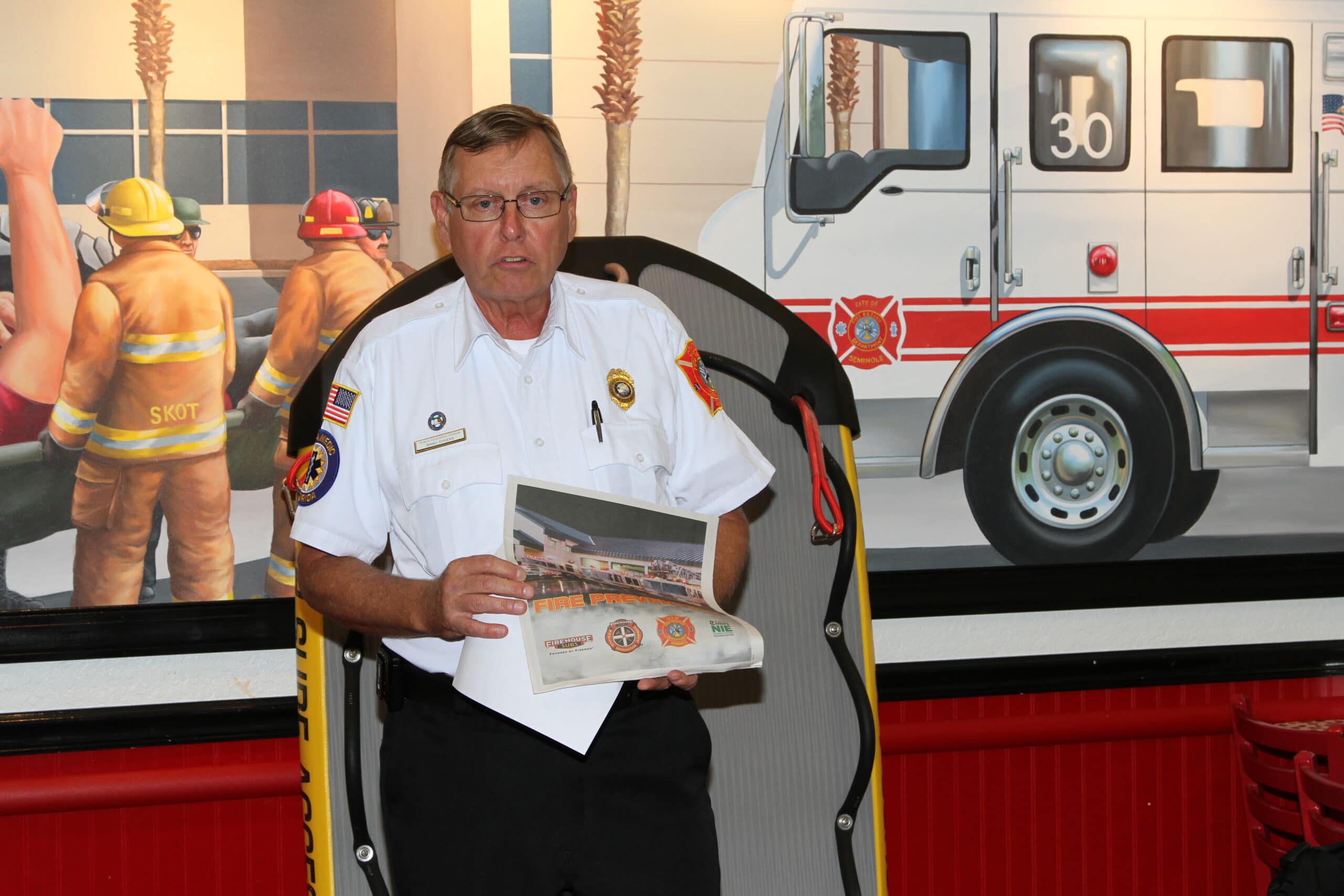 City Of Seminole Fire Rescue received fire prevention and safety materials, worth more than $20,000. The donated materials will be used to educate up to 245,000 members of the community, reducing the risk of accidental injury or death.  Seminole Fire Rescue Public Education Officer, Brad Dykens, discussed their partnership with Tampa Bay Times Newspaper in Education (NIE) program.  NIE is an initiative that places informational newspapers in the hands of students at various age levels.
