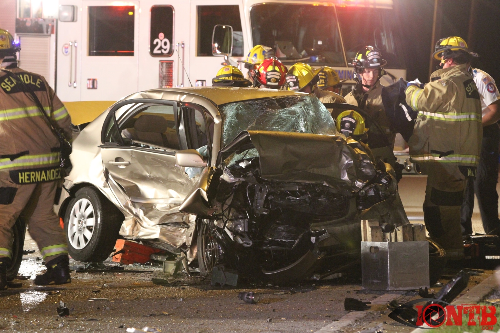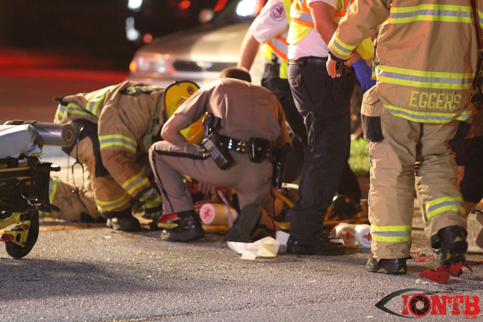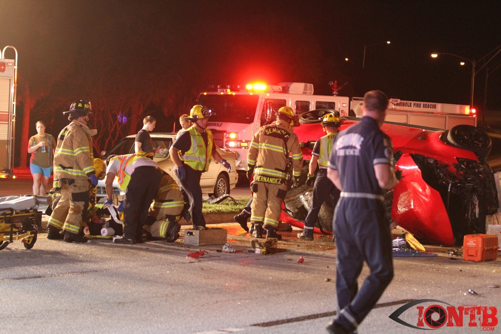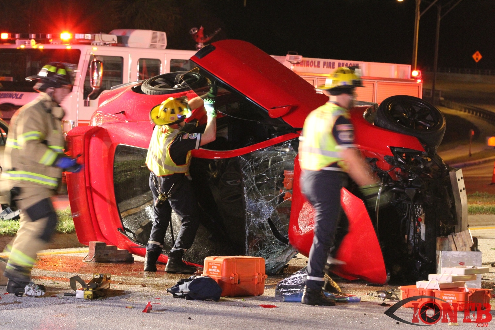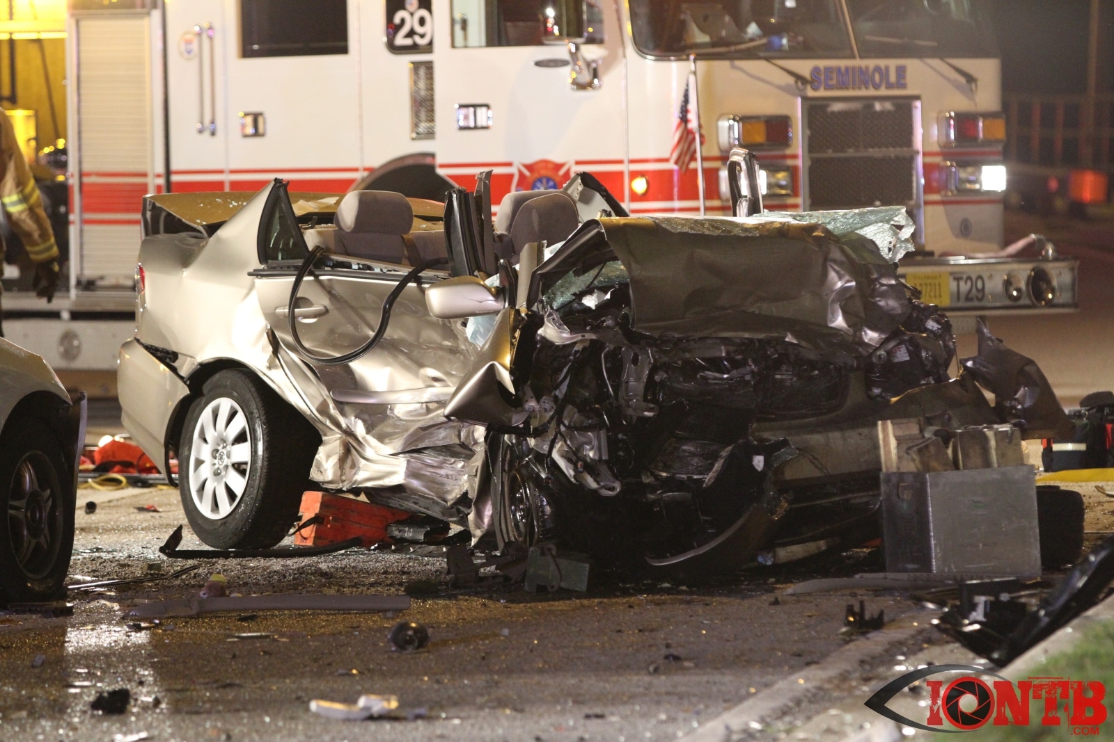 Multiple 911 calls were received following a traffic crash that occurred about 10:08 PM on Thursday, December 4, 2014.  Due to the information being provided by callers, additional units were dispatched. In the end, Seminole Fire Rescue, Largo Fire Rescue, Lealman Special Fire Control District, Florida Highway Patrol, Sunstar Paramedics, and Pinellas County Sheriff’s Office all arrived on-scene to assist. The amount of resources were needed due to the amount of hazards in the roadway, number of patient and the extent of their injuries.