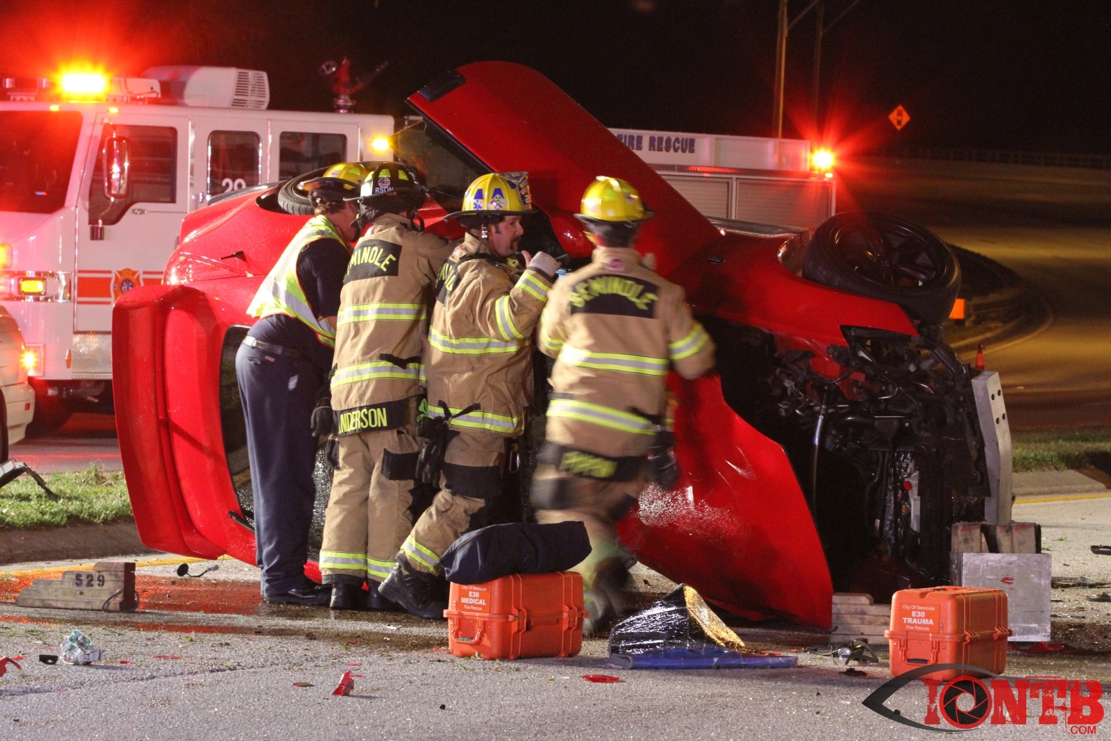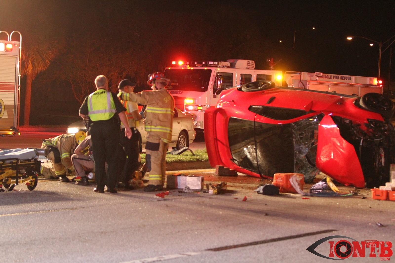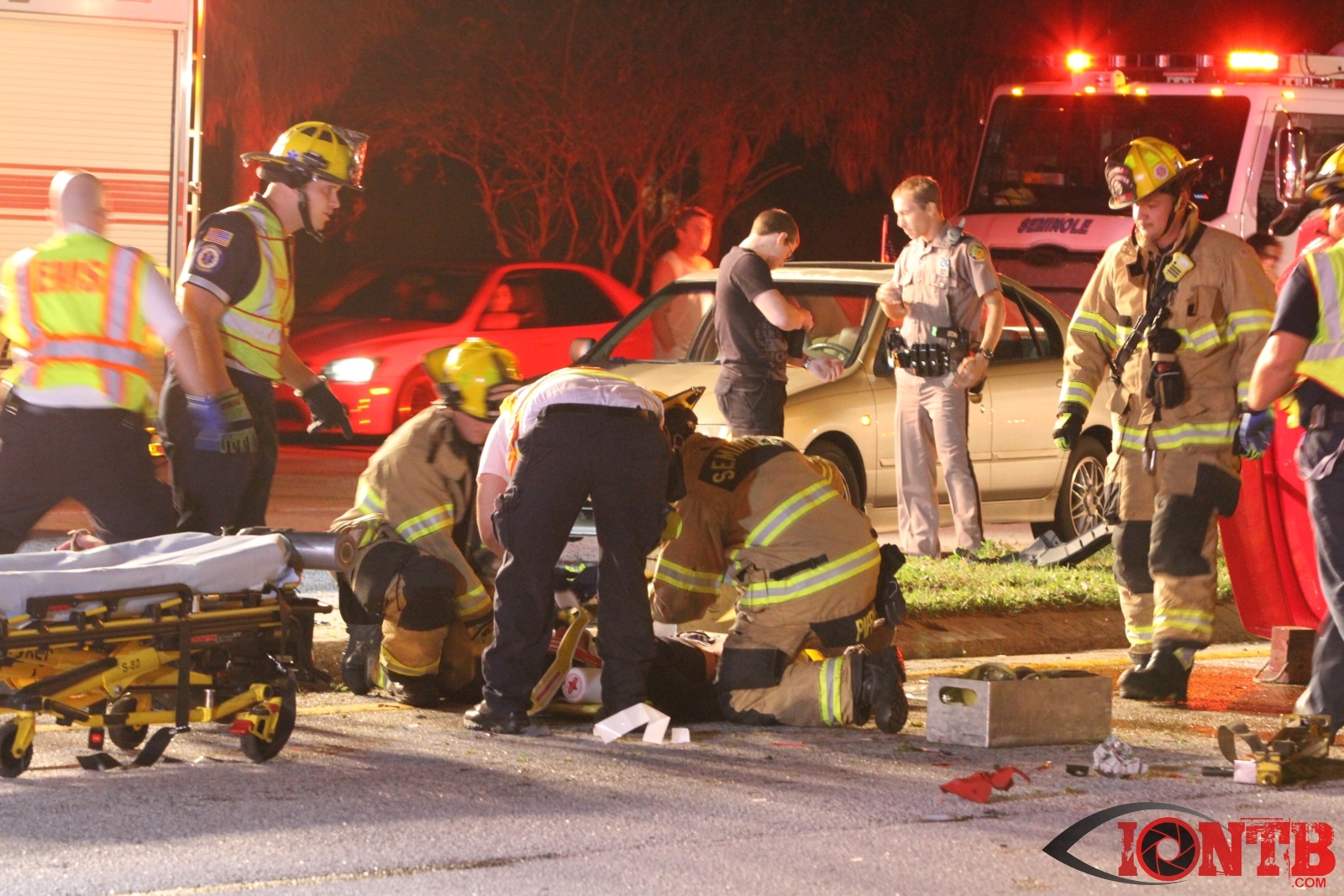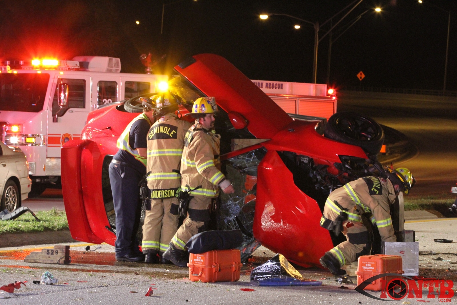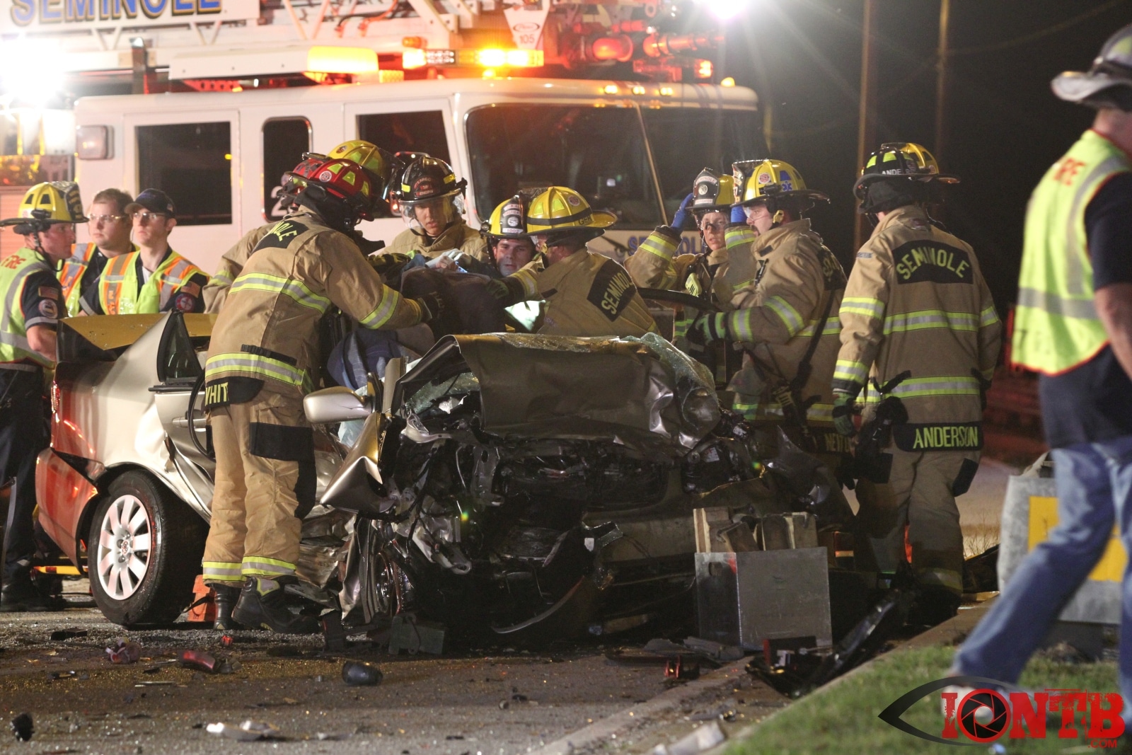 Multiple 911 calls were received following a traffic crash that occurred about 10:08 PM on Thursday, December 4, 2014.  Due to the information being provided by callers, additional units were dispatched. In the end, Seminole Fire Rescue, Largo Fire Rescue, Lealman Special Fire Control District, Florida Highway Patrol, Sunstar Paramedics, and Pinellas County Sheriff’s Office all arrived on-scene to assist. The amount of resources were needed due to the amount of hazards in the roadway, number of patient and the extent of their injuries.