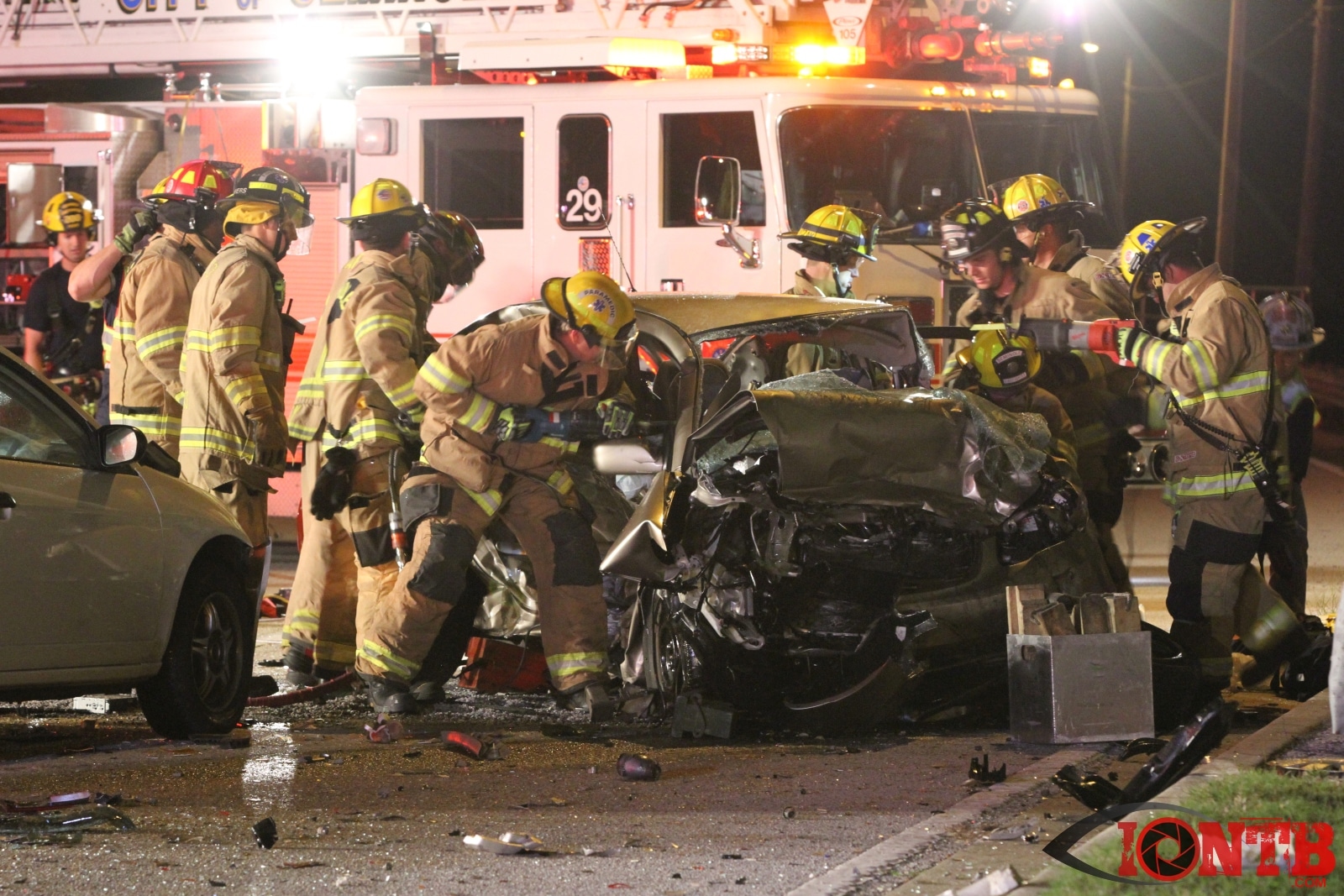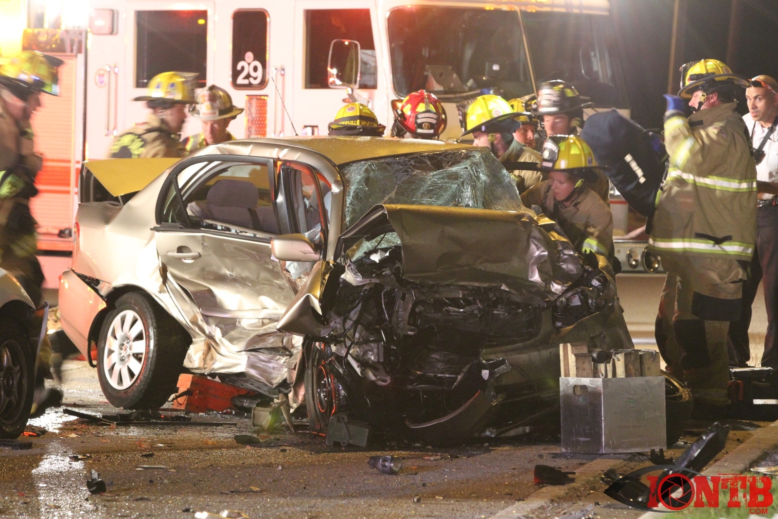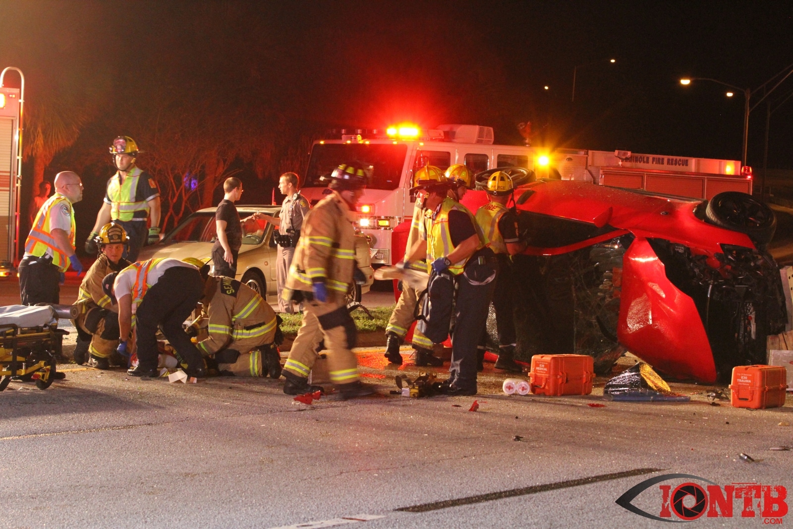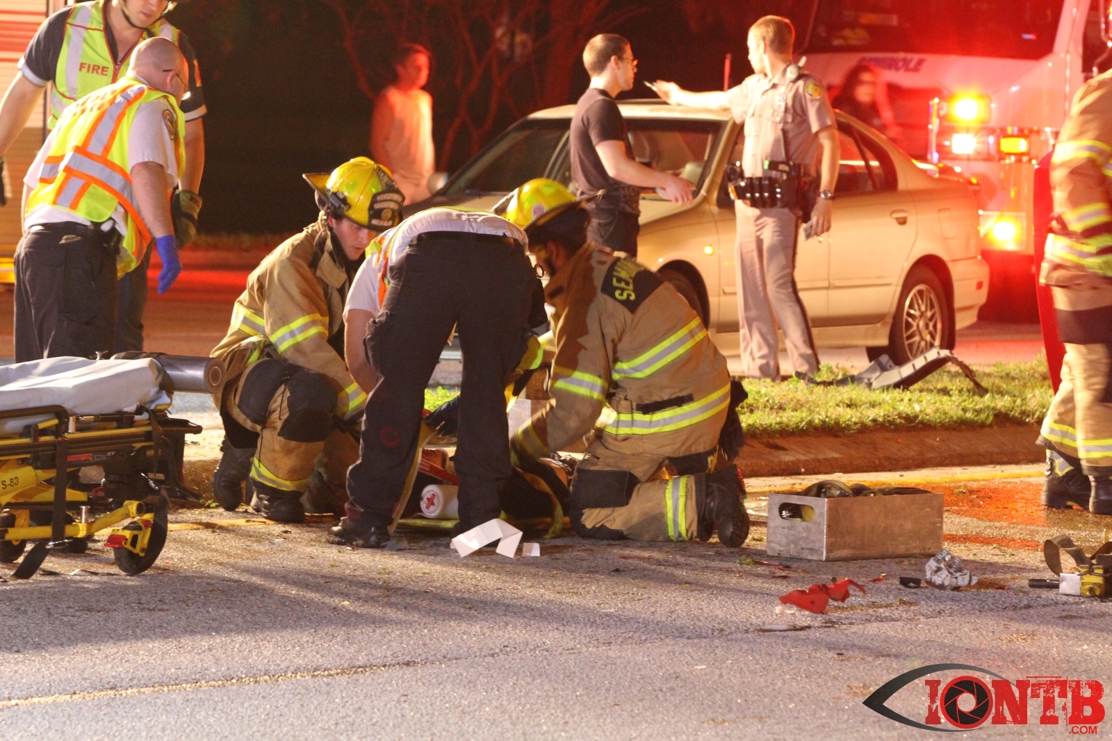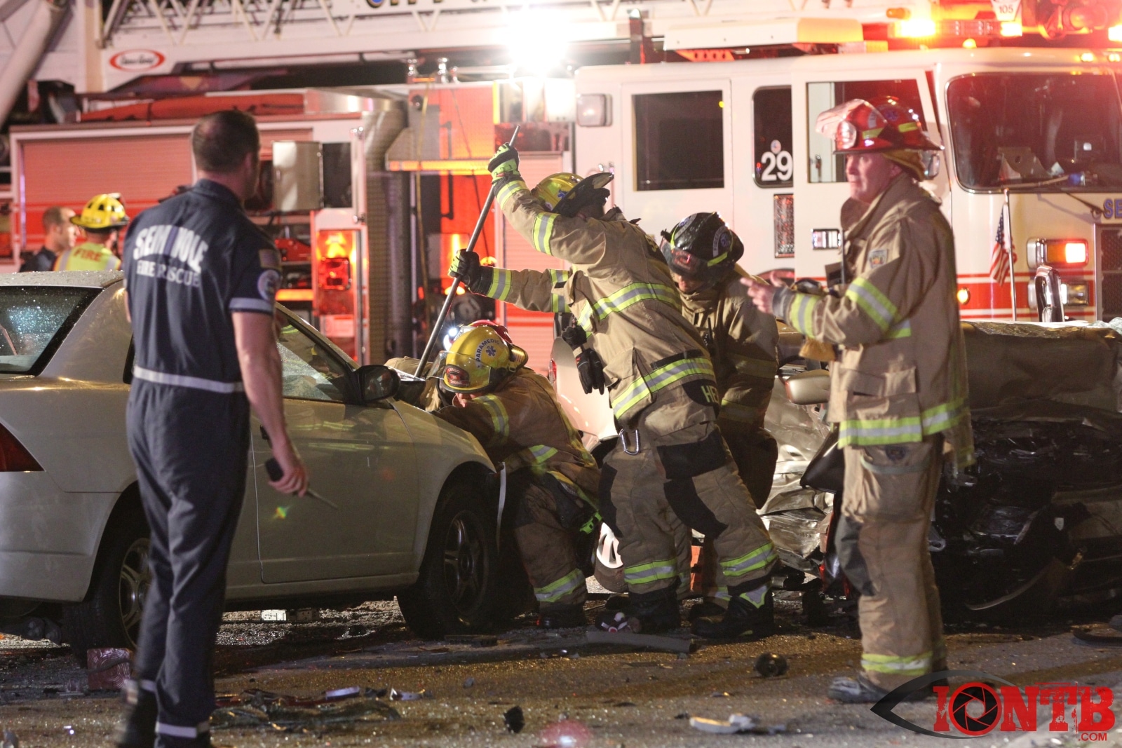 Multiple 911 calls were received following a traffic crash that occurred about 10:08 PM on Thursday, December 4, 2014.  Due to the information being provided by callers, additional units were dispatched. In the end, Seminole Fire Rescue, Largo Fire Rescue, Lealman Special Fire Control District, Florida Highway Patrol, Sunstar Paramedics, and Pinellas County Sheriff’s Office all arrived on-scene to assist. The amount of resources were needed due to the amount of hazards in the roadway, number of patient and the extent of their injuries.