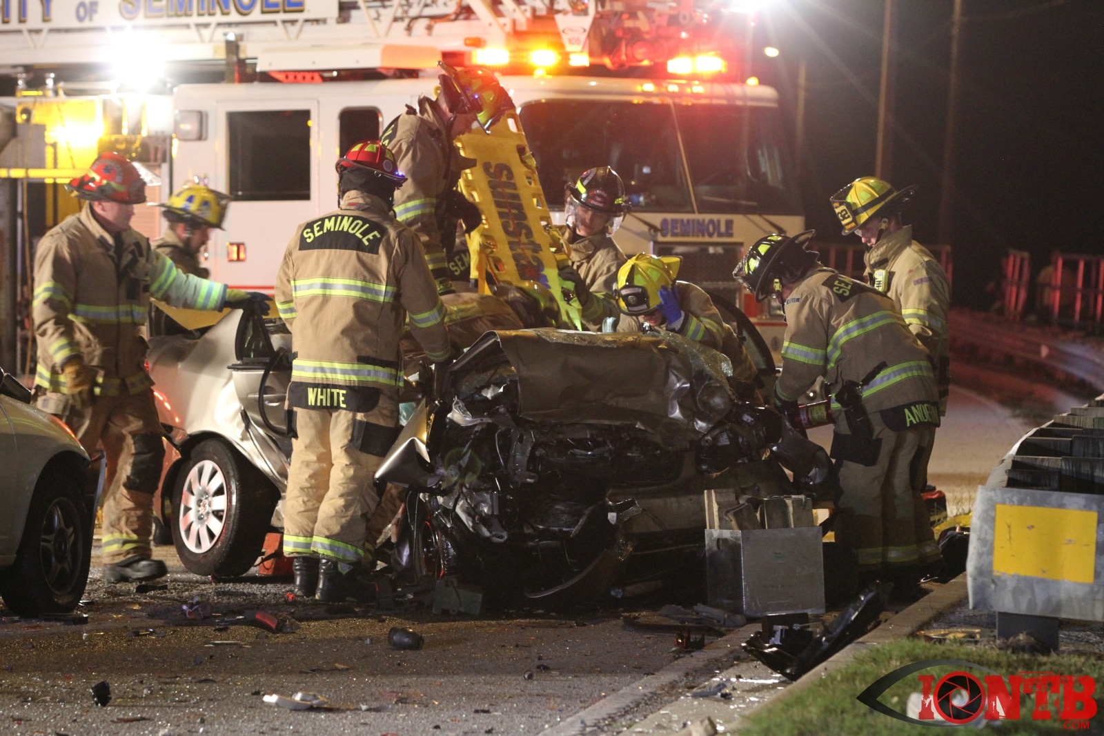 Multiple 911 calls were received following a traffic crash that occurred about 10:08 PM on Thursday, December 4, 2014. Due to the information being provided by callers, additional units were dispatched. In the end, Seminole Fire Rescue, Largo Fire Rescue, Lealman Special Fire Control District, Florida Highway Patrol, Sunstar Paramedics, and Pinellas County Sheriff’s Office all arrived on-scene to assist. The amount of resources were needed due to the amount of hazards in the roadway, number of patient and the extent of their injuries.