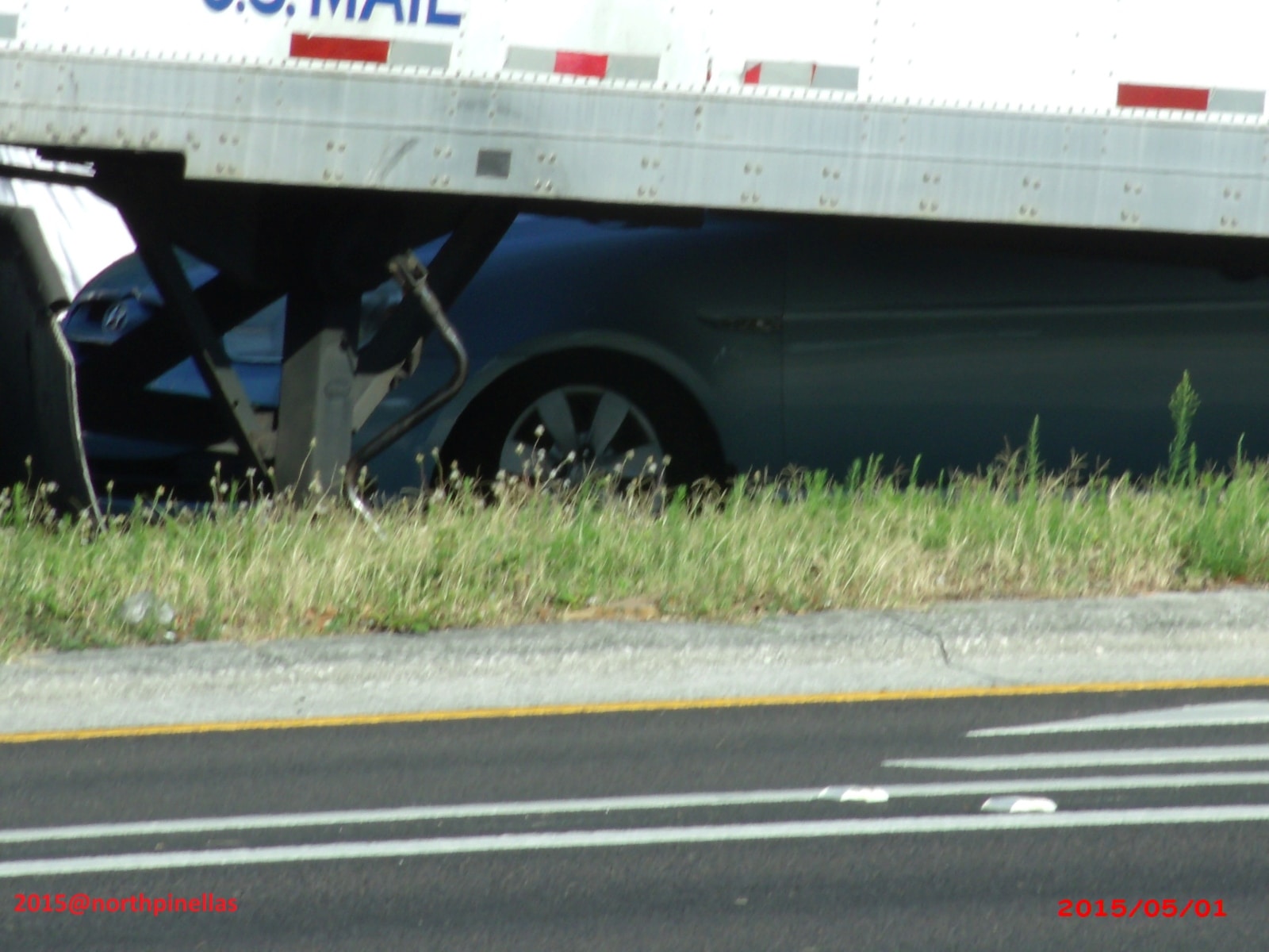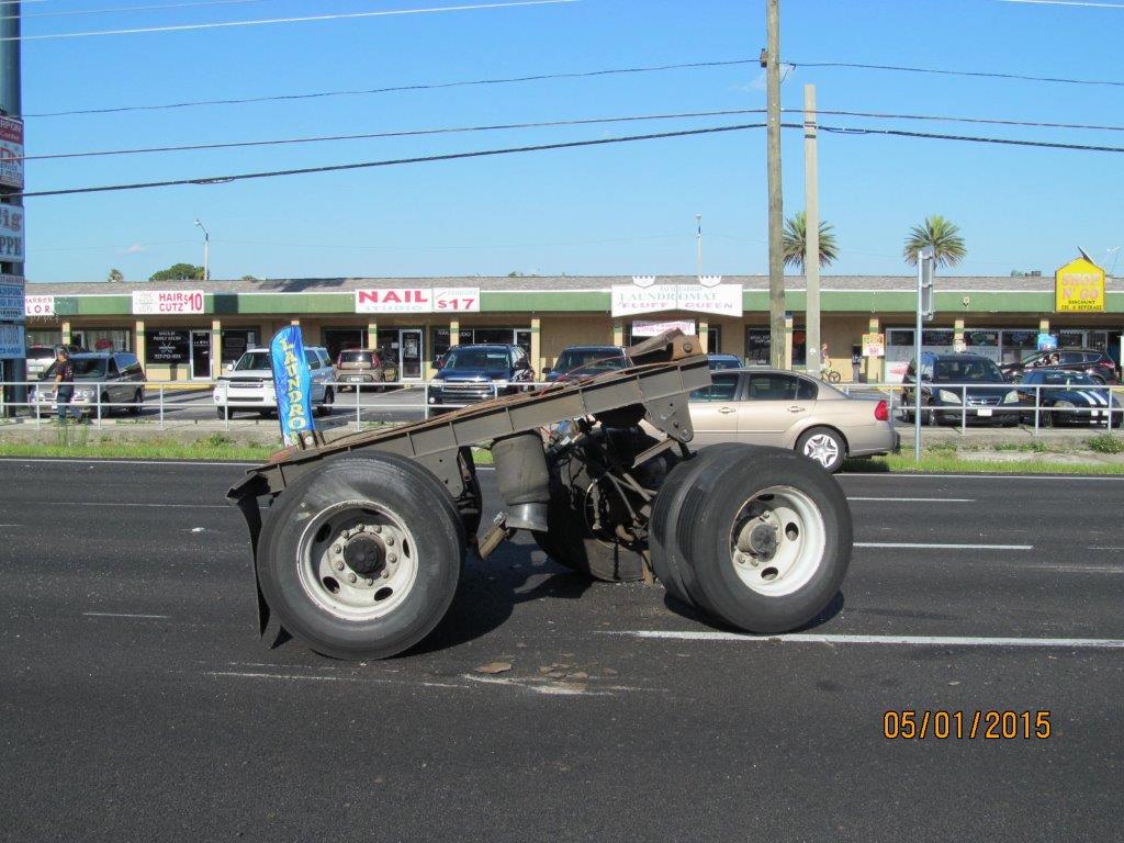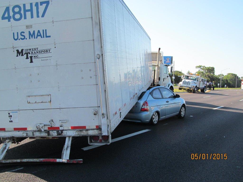 According to FHP, five vehicles were involved in the crash that closed all northbound lanes of US-19 for hours. Â Krystal D. Weatherhead, age 25 of Ellijay, Geogia was travelling southbound on US-19 in a 2009 Chevy Cobalt in the inside lane. Â For an unknown reason, the right side of Weatherhead’s vehicle stuck the left side of a 2002 Dodge Pickup truck driven by 38 year-old Victor Cervera of New Port Richey, Florida. Â The impact caused her vehicle to rotate, cross over the median, and into oncoming northbound traffic. Â Once in oncoming traffic, she made impact with a tandem axle of a trailer being towed by 38 year-old Joes Negron of Wesley Chapel, Florida. Â The force of the impact caused the tandem axle to dislodge from the trailer. The trailer became airborne and sailed over a 2012 Toyota being driven by 54 year-old Thomas Privey of Spring HIll, Florida. Â The trailer came to rest on the top of a 2008 Hyundai which was being driven by Donna Bailey, age 60 of Clearwater, Florida.