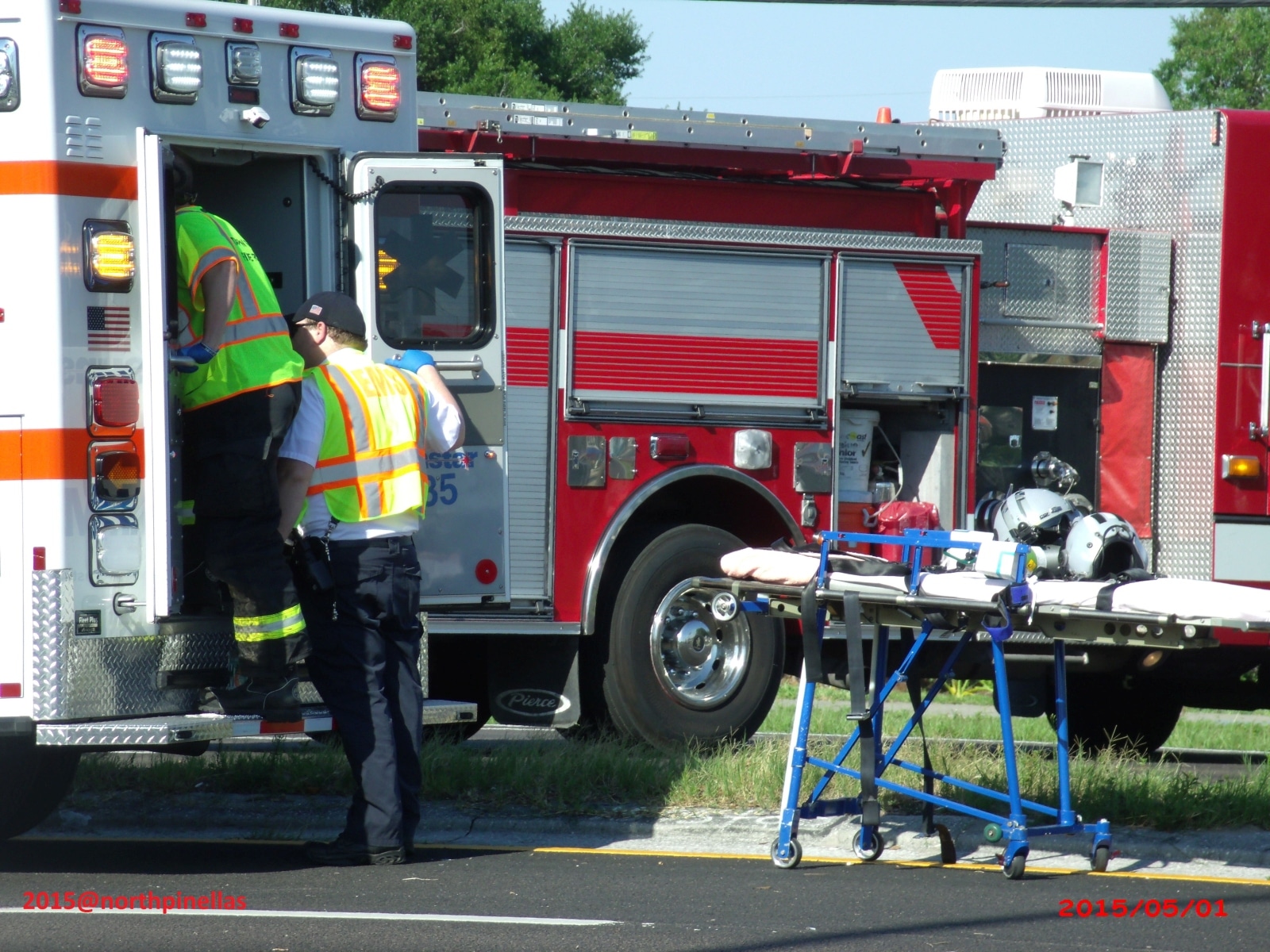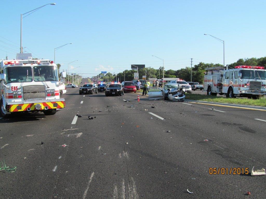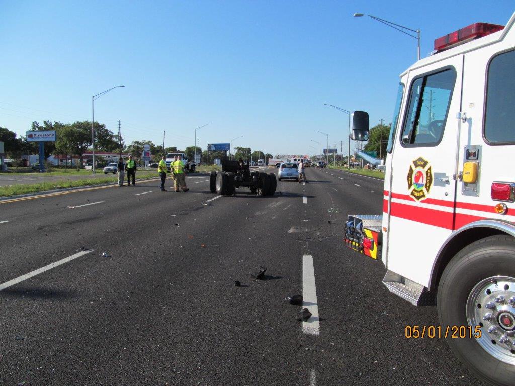 At approximately 4:48 PM on Friday, May 1, 2015, multiple fire rescue crews were dispatched to reports of a vehicle crash in Palm Harbor on US-19 near Colonial Blvd.