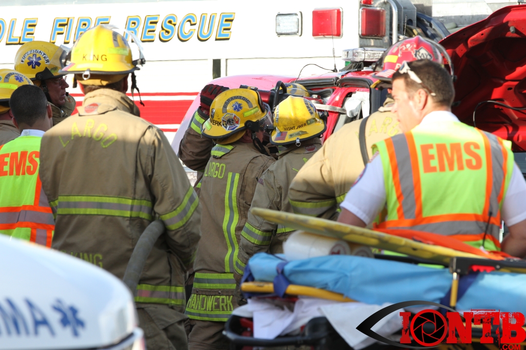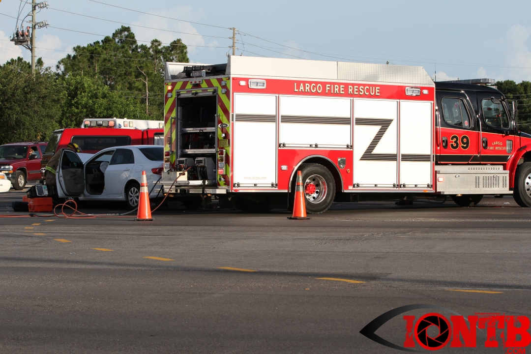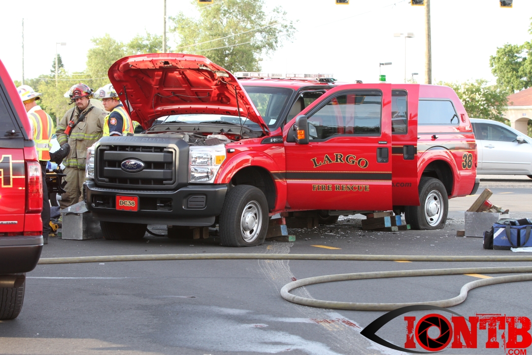 A District Chief with Largo Fire Rescue was injured when a vehicle T-boned the DC38 vehicle at the intersection of Ulmerton Road and 113th Street. Â It occurred Wednesday evening a few minutes before 7pm. Â DC38 was responding to a call for a Structure Fire a couple miles to the south of the crash location.