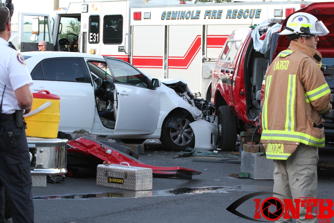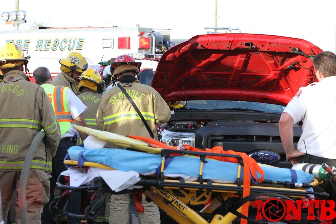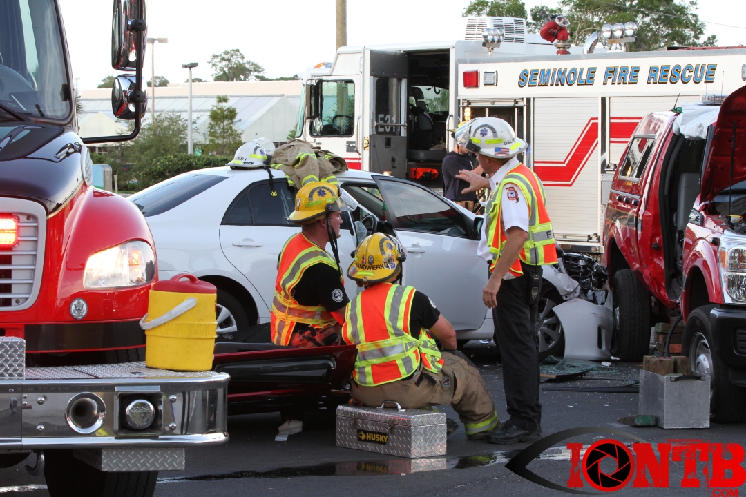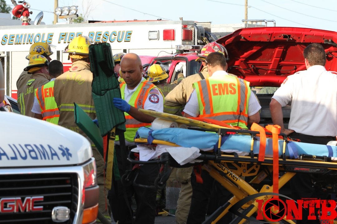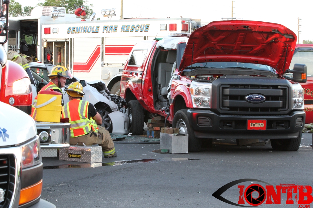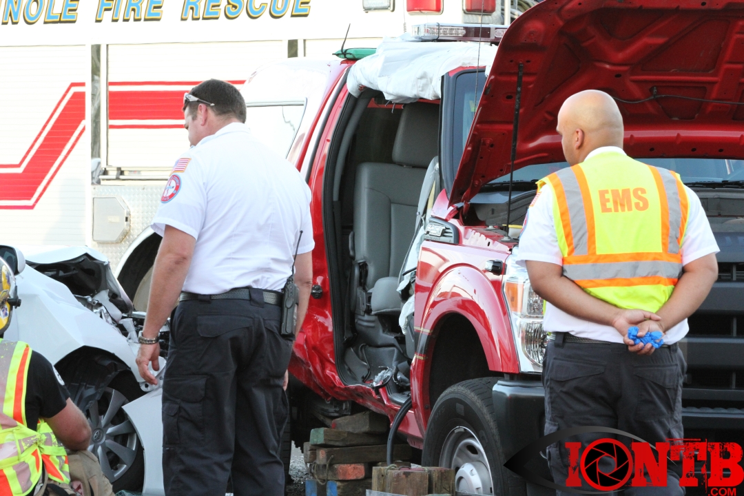 The District Chief was a passenger in the vehicle and needed to be extricated from the vehicle. Â The vehicle was severely damaged by both the impact and the extrication process. Â The female driver of the other vehicle did not appear to be injured. Â The District Chief was transported by ground to Bayfront Medical Center for further evaluation via Sunstar. Â His injuries not did appear to be serious at the time.