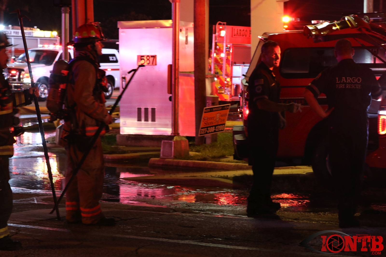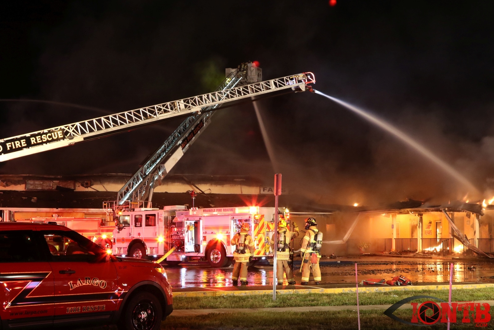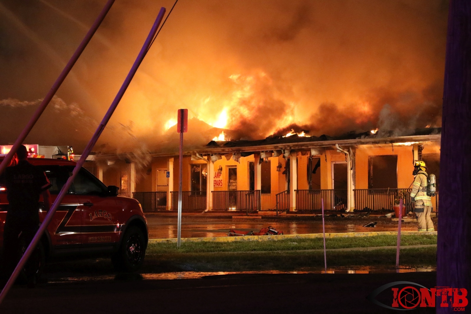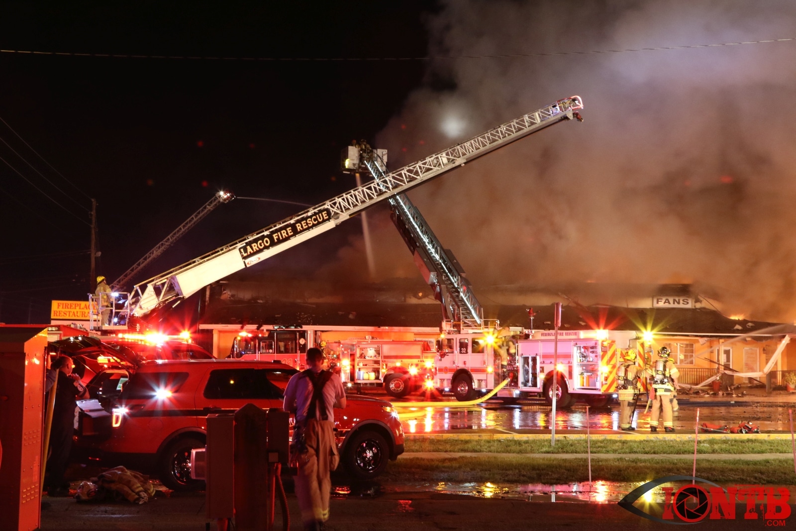 Multiple businesses are located at this location including the Fireplace Restaurant, the House of Shades, Lamps, Lighting and Fans and Debbie Salons Hair & Nails. It took approximately 3 hours for this blaze to be considered under control with crews on-scene from Seminole, Largo, Pinellas Suncoast, Clearwater, Pinellas Park. Largo Police, Pinellas County Sheriff’s Office, Sunstar Paramedics, and Duke Energy also assisted on-scene.