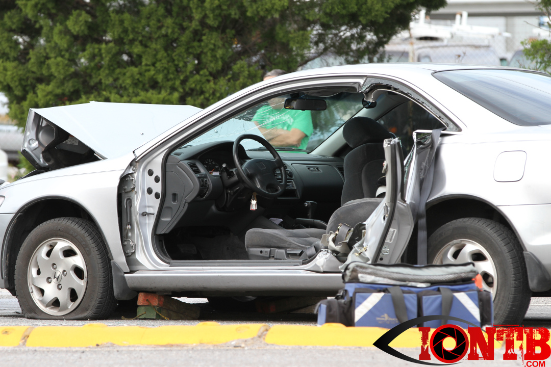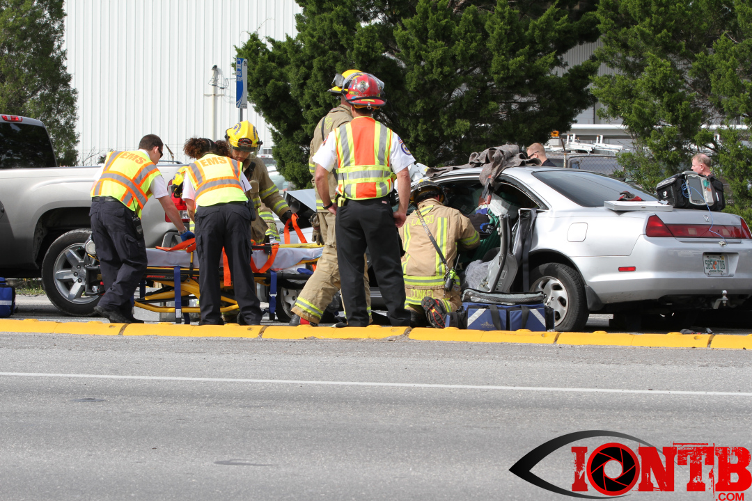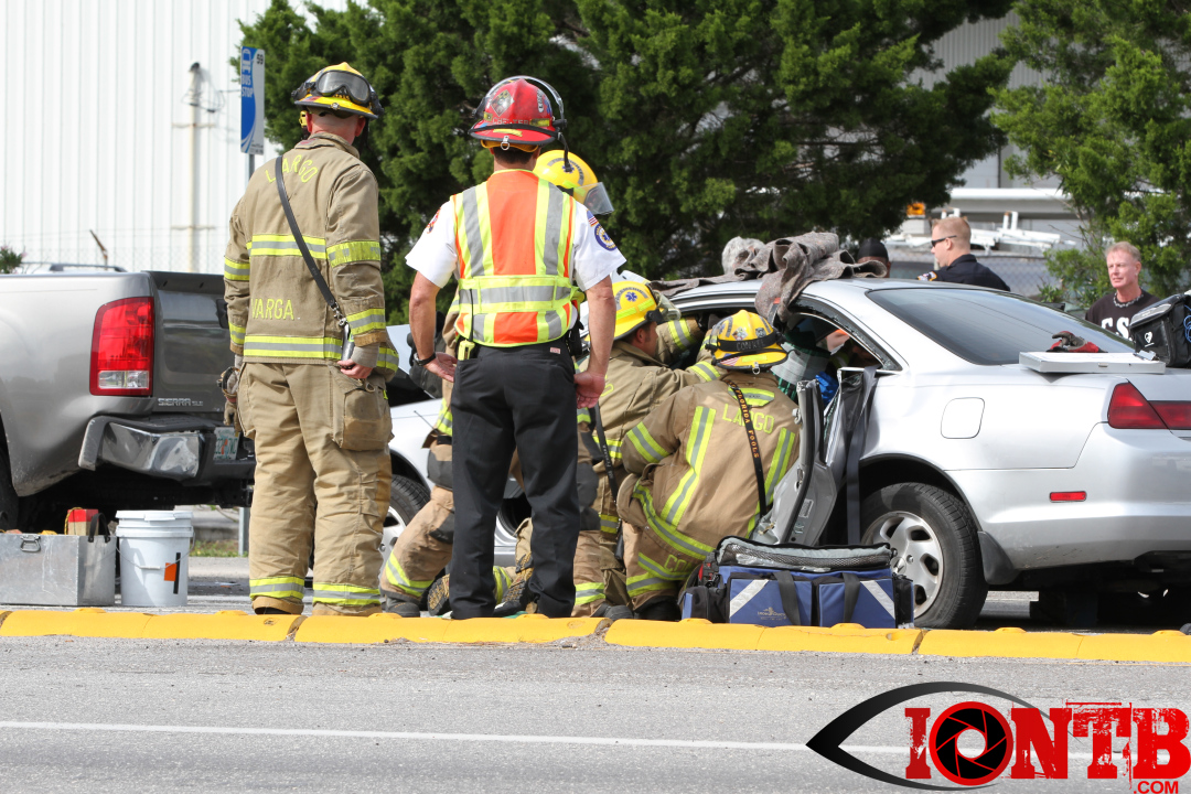 The crash occurred at approximately 2:45 pm in the westbound lanes of Ulmerton Road. Crews from Largo’s Station 38 cut away the doors of the vehicle. This extrication was needed to safely remove one of the injured drivers from the vehicle.