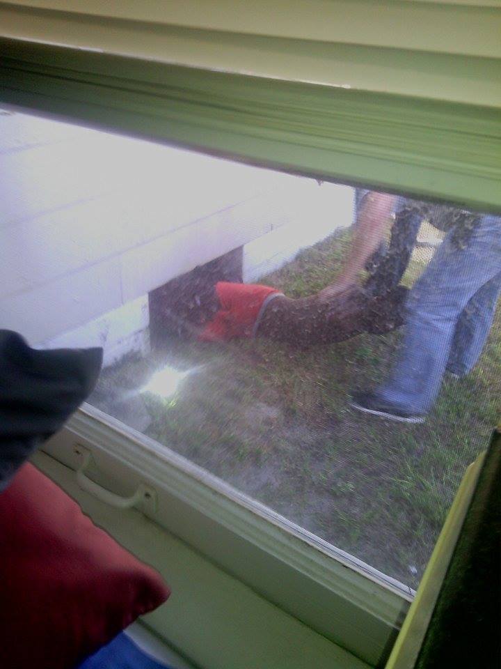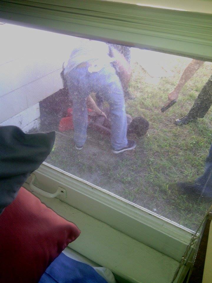 The search continued for a couple of hours and it appeared that the suspect may have gotten away. It was then that an observant neighbor, Candi Little, noticed something was amiss at her home. Candi stated, ” I noticed a barricade was missing to a crawl space for under my house, I told cops and they did a little search.”  Little lives only about one block away from where Burge fled from the stolen vehicle.