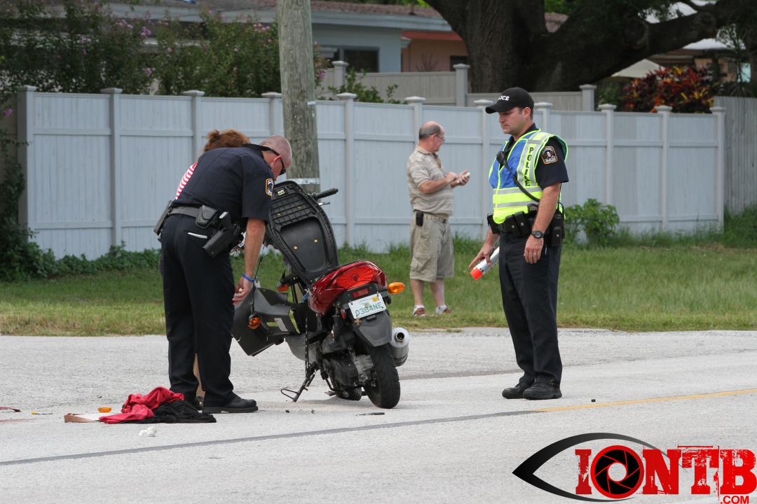 At about 2:15pm this afternoon, units from both Clearwater Fire & Rescue and Largo Fire Rescue were dispatched to a vehicle crash involving a motor scooter. One patient was transported to a local trauma center via Bayflite and another via Sunstar Paramedics. Highland Avenue was closed in both directions during the crash investigation. Largo Police Department will continue their investigation into the cause of the crash.