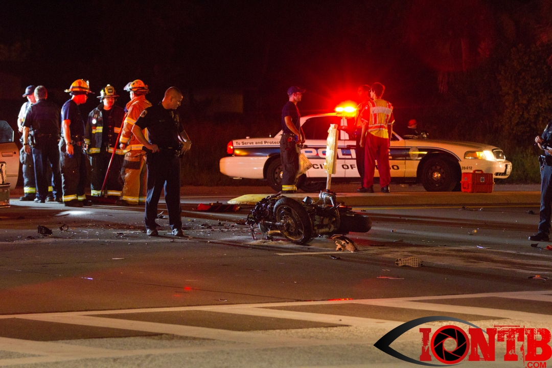 About 9:48pm this evening, multiple units from Largo Fire Rescue were dispatched to a vehicle crash on Missouri Avenue and Auburn Street in Largo. The motorcycle rider was wearing their helmet at the time of the crash. The rider was transported to a local hospital via Sunstar ambulance with apparent bone fractures. Northbound Missouri Avenue is currently closed north of Jasper Street while Largo Police continue their investigation into the crash.
