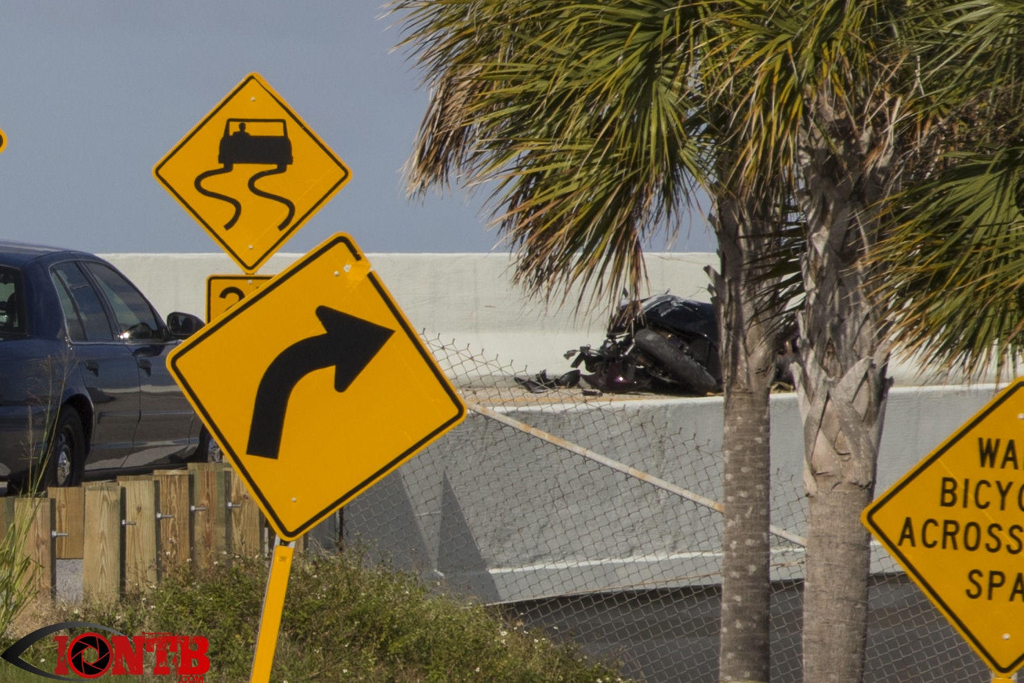The motorcyclist has been identified in a report received from Sgt. Steve Gaskin from the Florida Highway Patrol (FHP) as 24 year-old Justin Ennis of Pinellas Park, Florida.  The report indicates that Ennis was traveling on a 2009 Suzuki  GSRX northbound on Gulf Blvd approaching the Park Boulevard Bridge.  He entered the on-ramp to Park Boulevard at a high rate of speed traveling through a curve in the roadway. He lost control of the motorcycle and collided with the inside barrier wall.  He was ejected from the motorcycle over the barrier wall and fell 26 feet to the ground below.