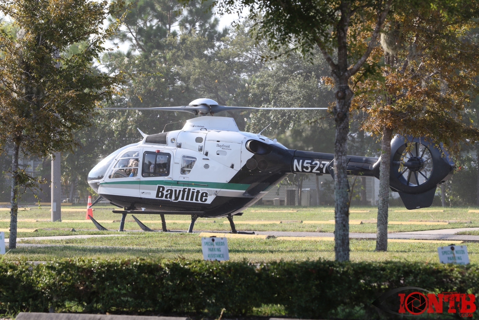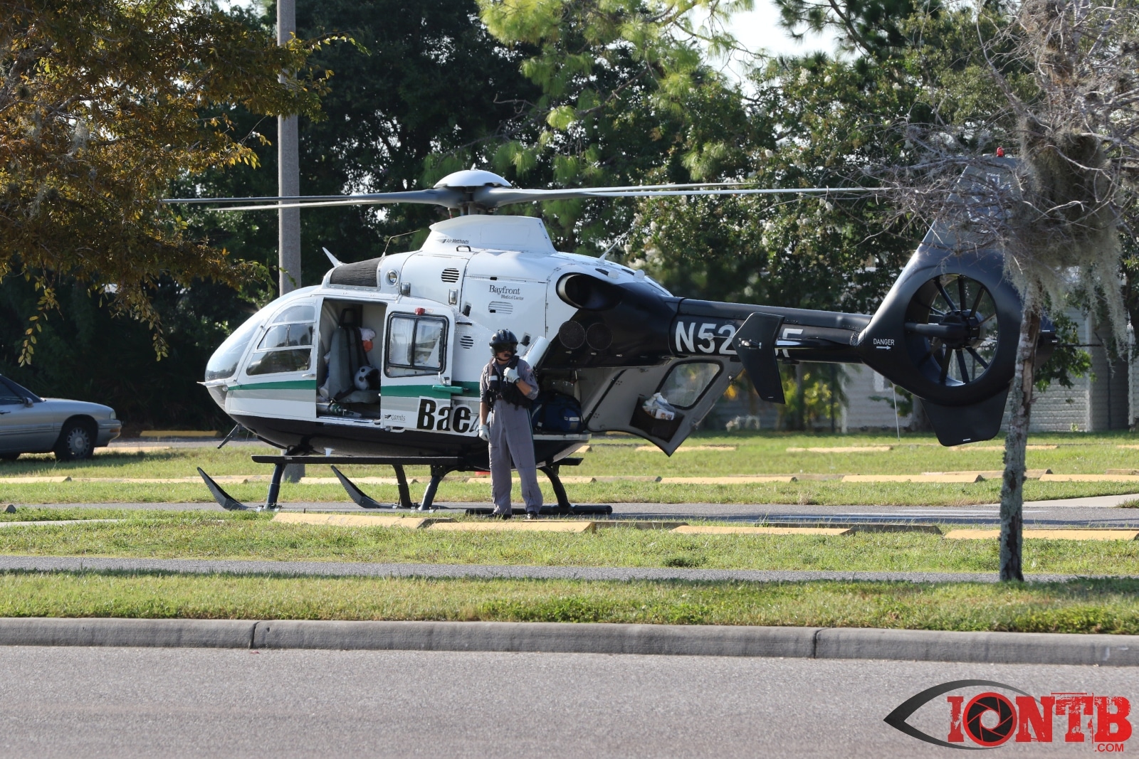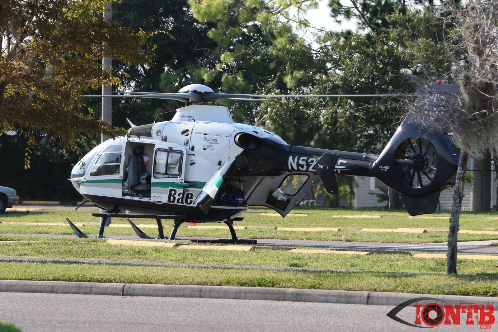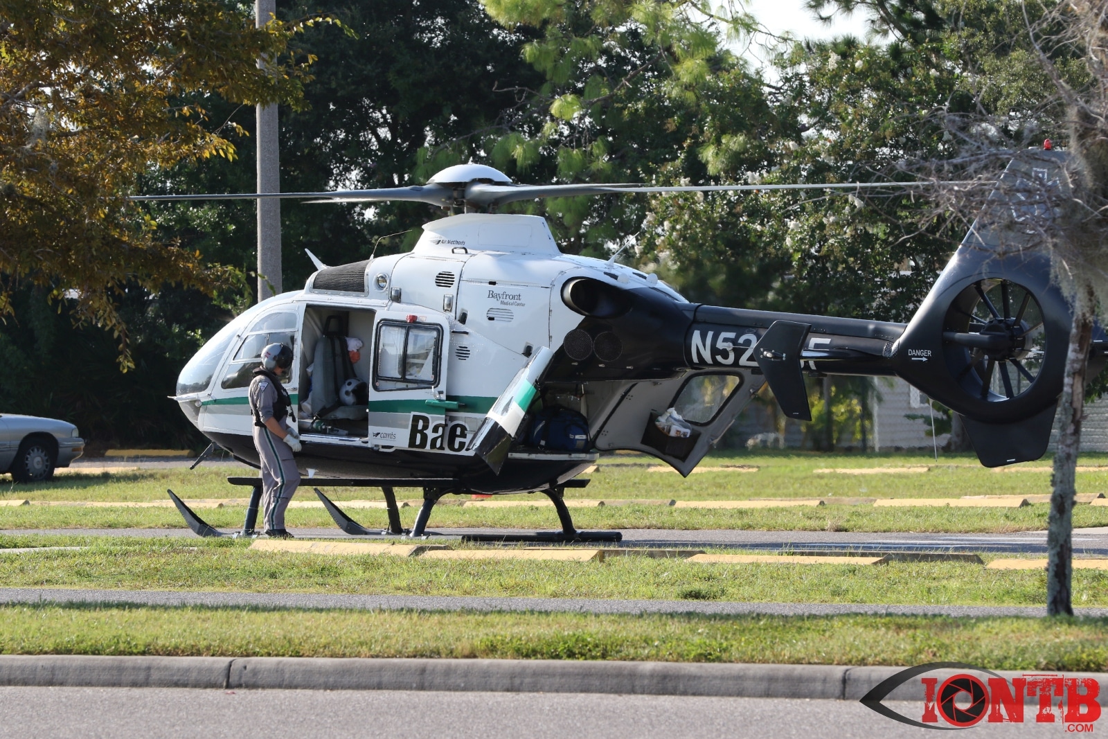 Arriving fire rescue units found two motorcyclist down in the roadway. After an assessment Bayflite was requested to respond to the scene to transport the male driver of the motorcycle. A second air transport unit, Aeromed, was requested but later cancelled partially due to an extended response time