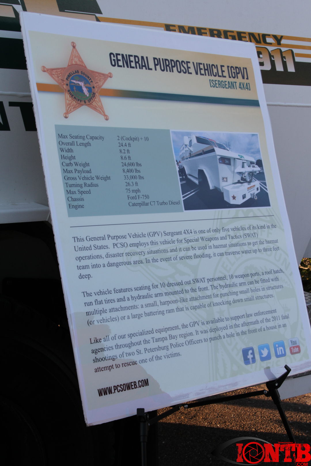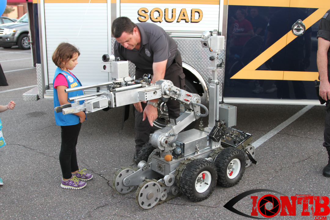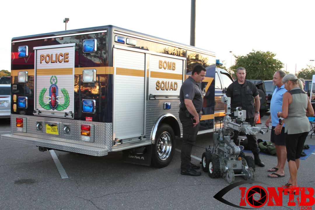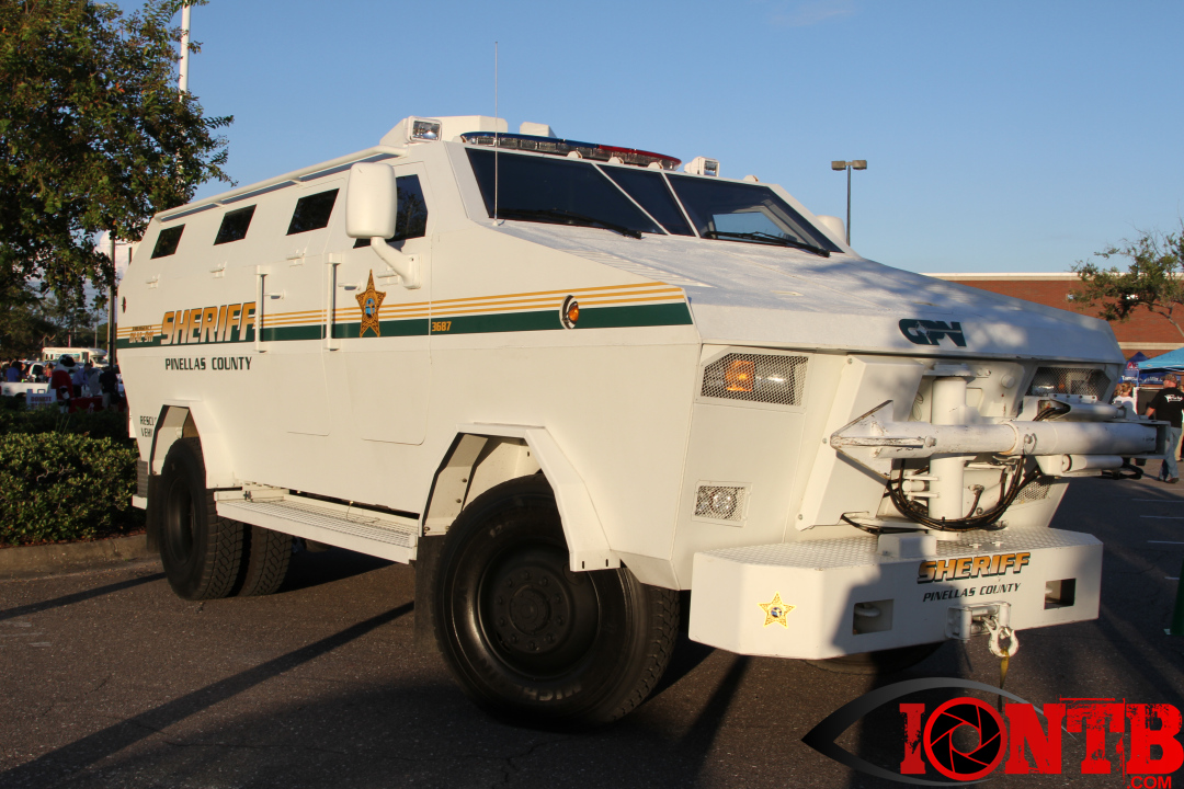 Events included fingerprinting, bike registration, kid’s safety stations and free document shredding by PROSHRED. Largo Police Department had a SWAT display and their Mobile Command Vehicle on-site. Largo Fire Department participated by sending Truck 41 and crew to the event. Also in attendance was the State bomb squad along with their robot and specialized equipment. In addition, the Pinellas County Sheriff displayed their 33,000 lb armored rescue vehicle.