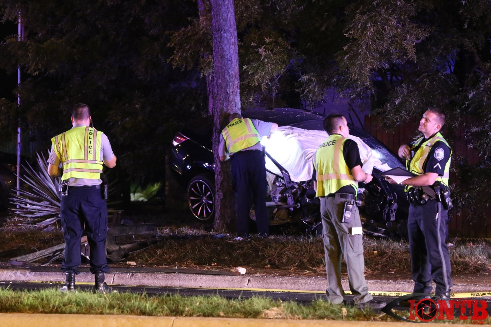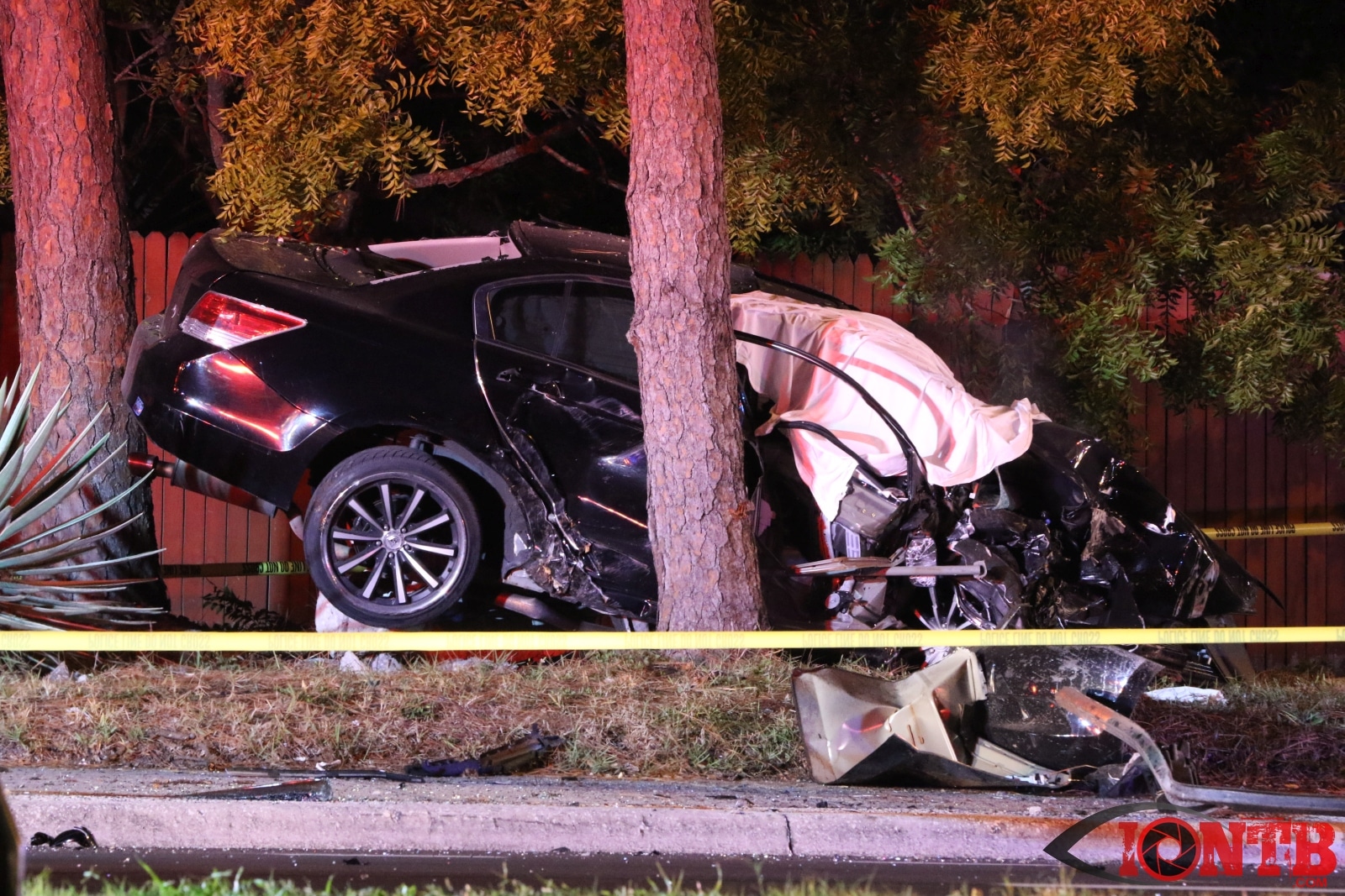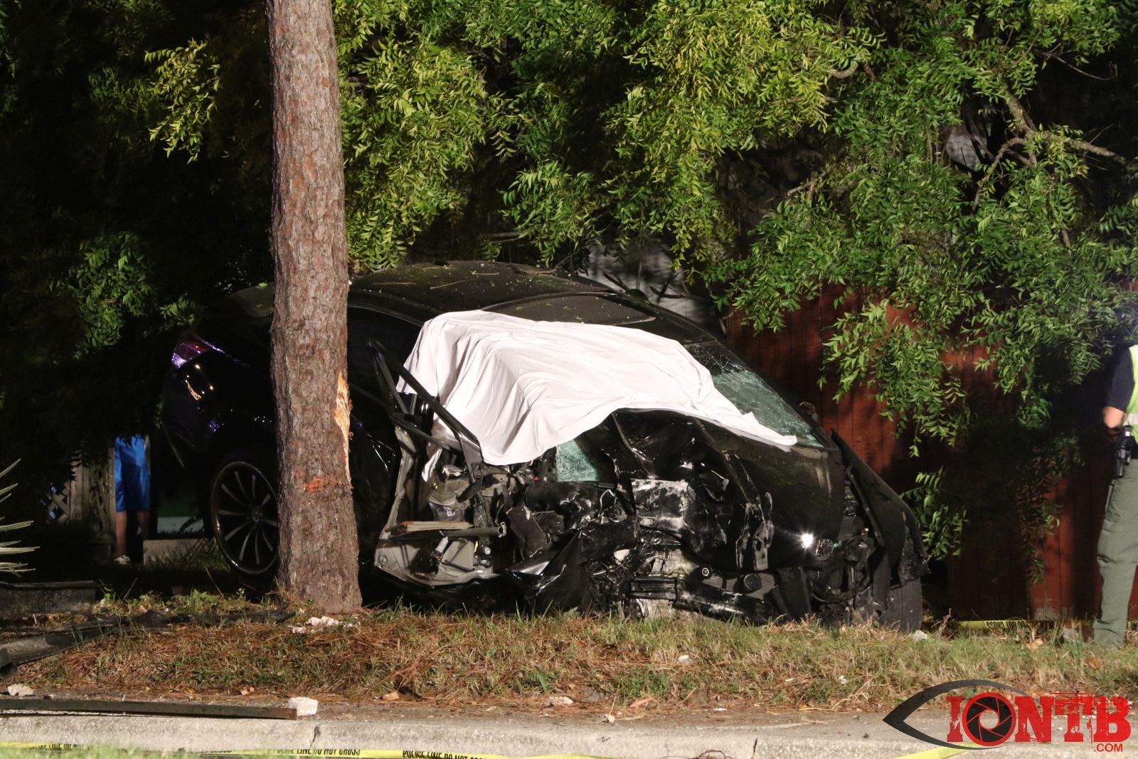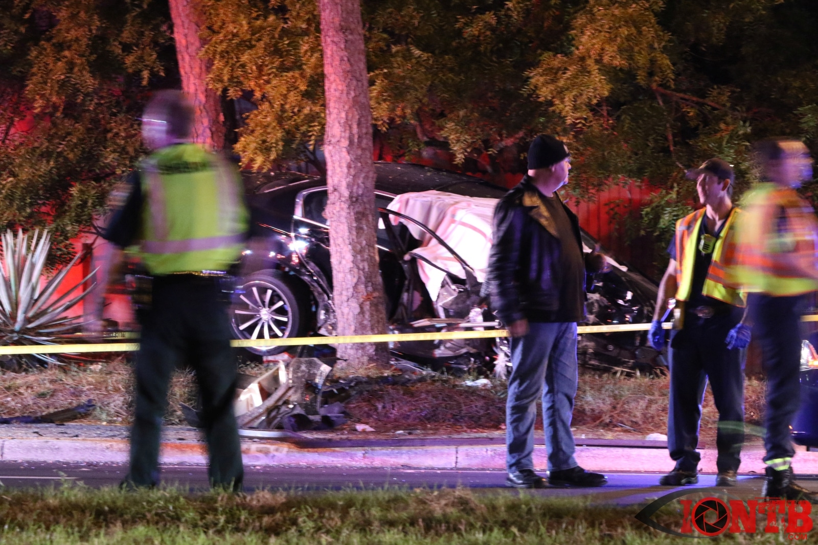 The crash occurred in the southbound lanes of 66th Street just south of 102nd Avenue N.  The vehicle crash was proceeded with a report from a Pinellas County Sheriff’s Deputy of, “2 cars doing over 100 mph southbound on 66th street blowing red lights, I am not in pursuit.”  Shortly thereafter, one of the cars crashed into a utility pole and tree.  The deputy reported that the vehicle was full of smoke and that there was entrapment.  Flames were also seen but were put out by a fire extinguisher prior to arrival by the fire department.
