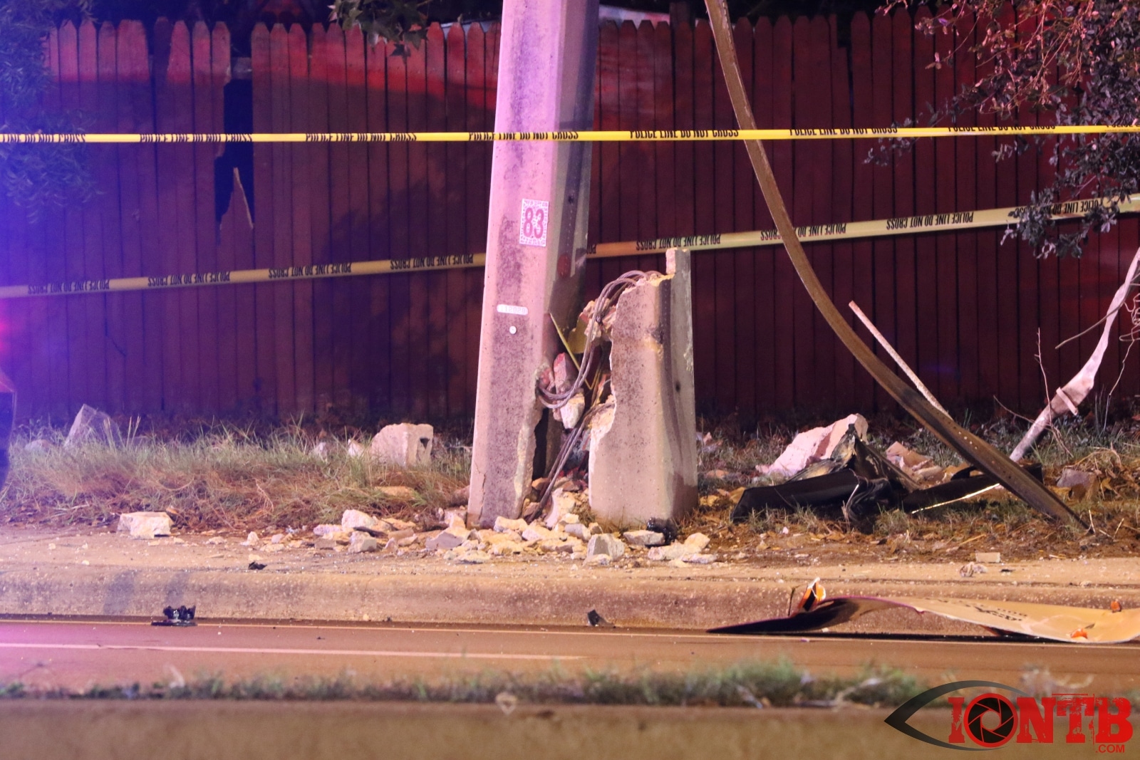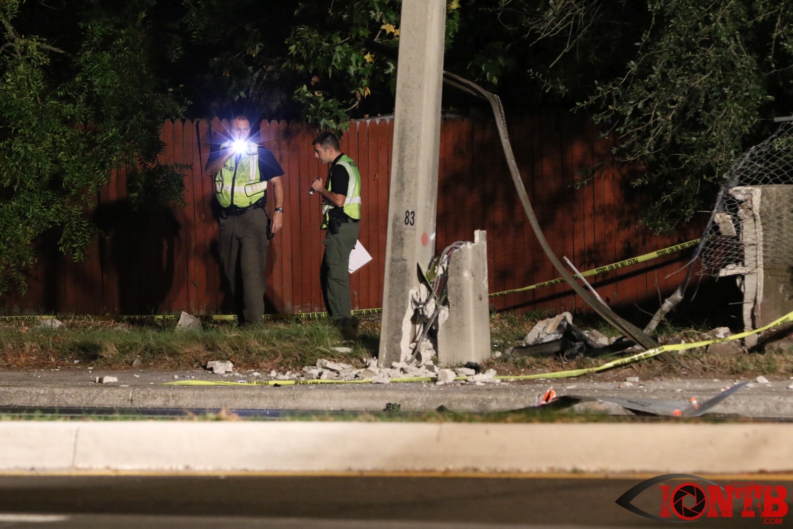 Investigators from Pinellas Park Police took over the investigation as it was within the city limits. Â Many questions remain and this will be a very complex investigation. Â It appeared that 3 vehicles at the scene will be removed and examined by investigators. Â It is unknown how many of vehicles made contact with each other. Â The collision did sever the bottom of a utility pole which would not be repaired until the vehicle was removed from the location. Â As of sunrise, the vehicle and the victim still remained on-site. Â Duke Energy reported a small power outage to several homes when they de-energized two transformers very early this morning.