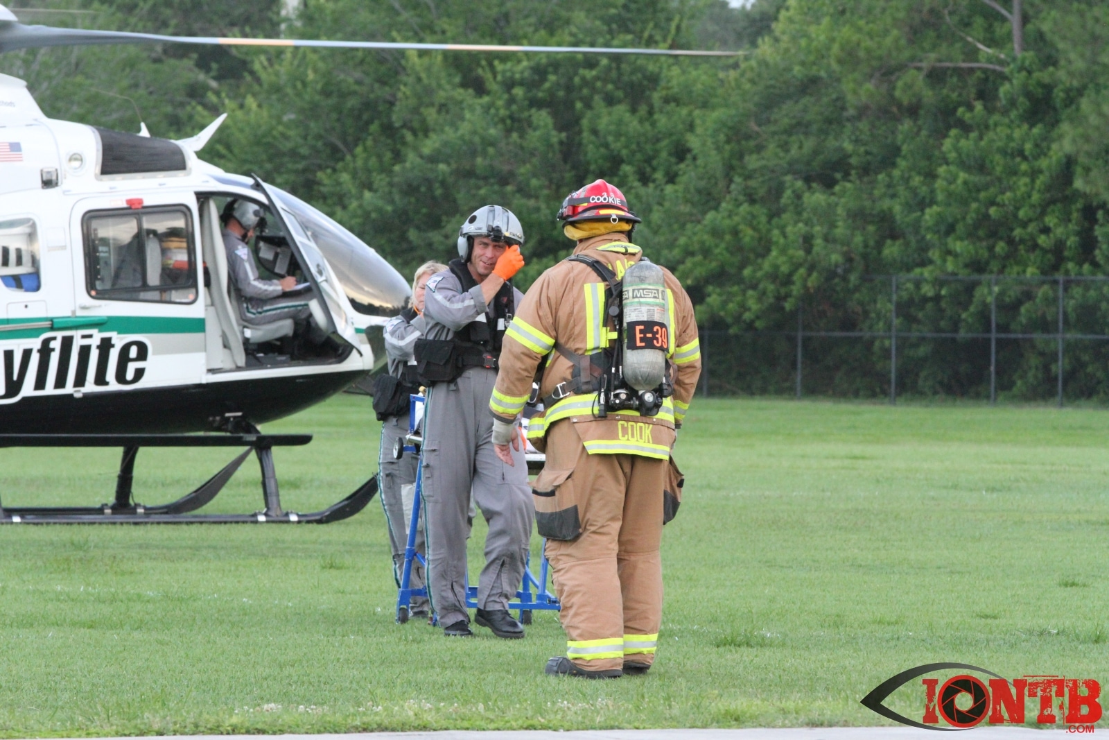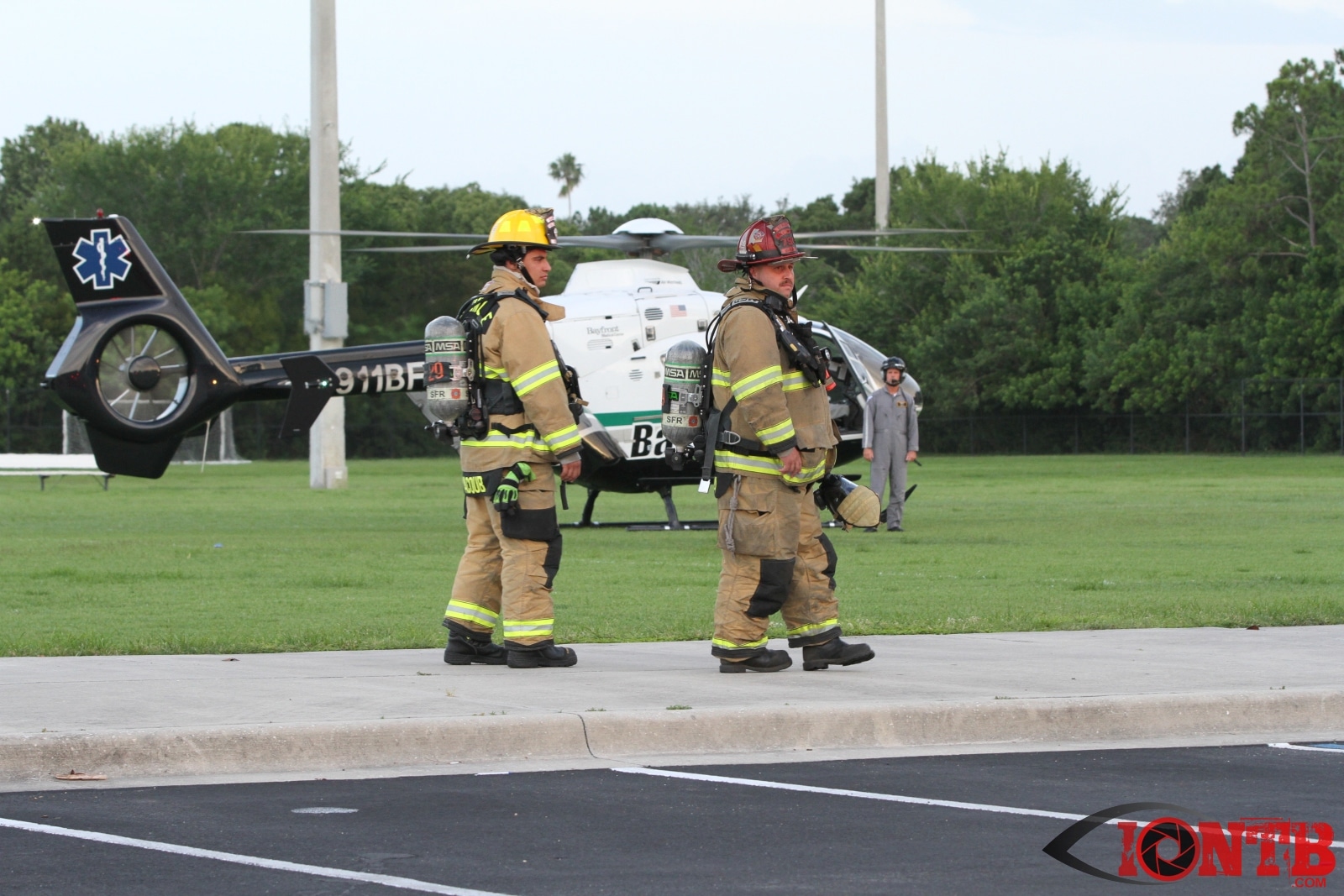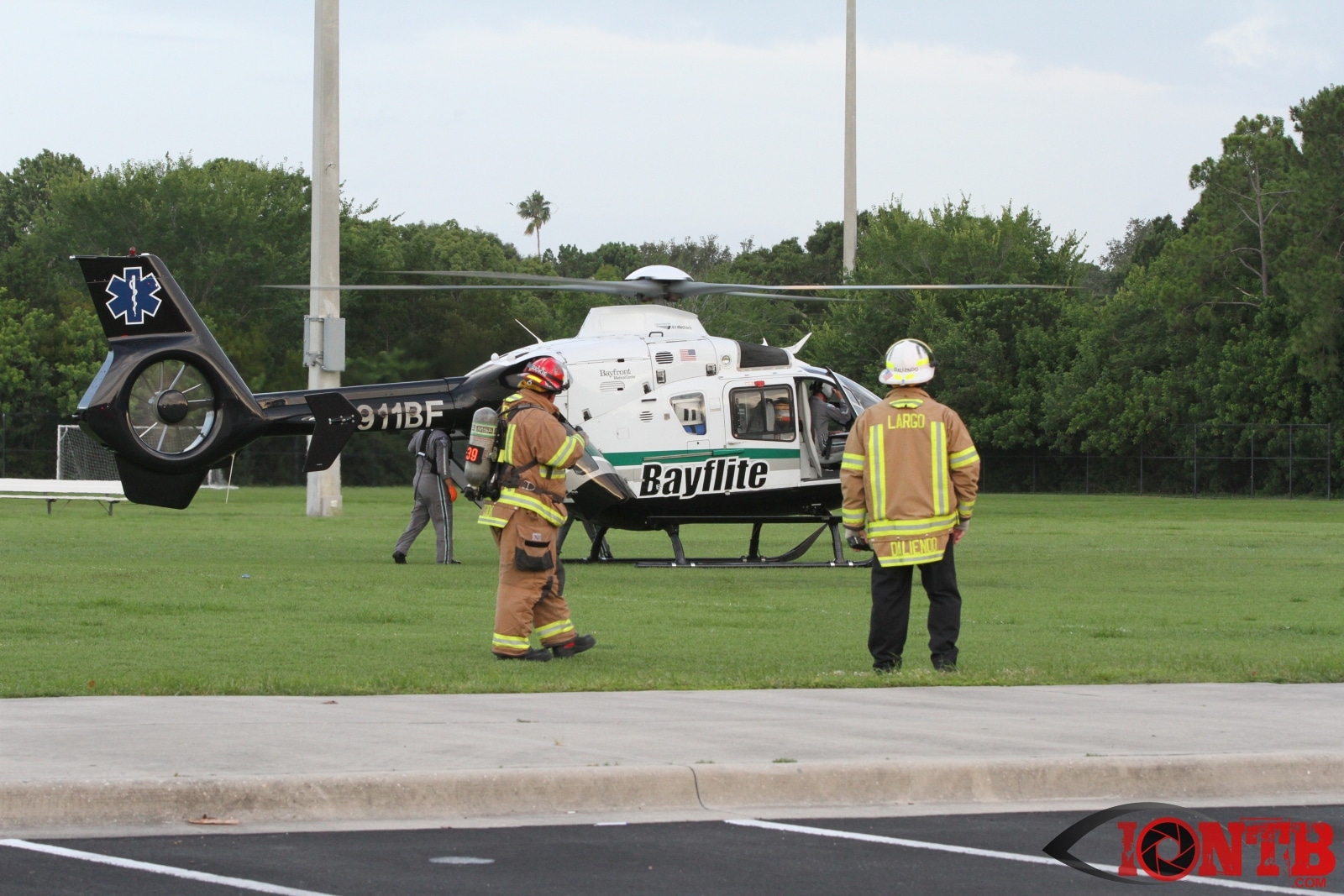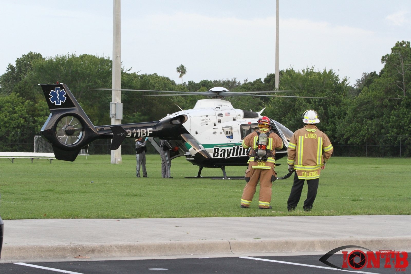 Crews from both Seminole and Largo Fire Rescue and Sunstar were called into the scene once the firearm was secured by PCSO Deputies and contact was made with the injured male with a gunshot wound to the neck.  Paramedics quickly requested Bayflite to assist in transporting the patient to a local trauma center.  A landing zone was established at the Seminole Recreation Center. The wounded patient was brought to the air transport unit and then safely flown to the trauma center.