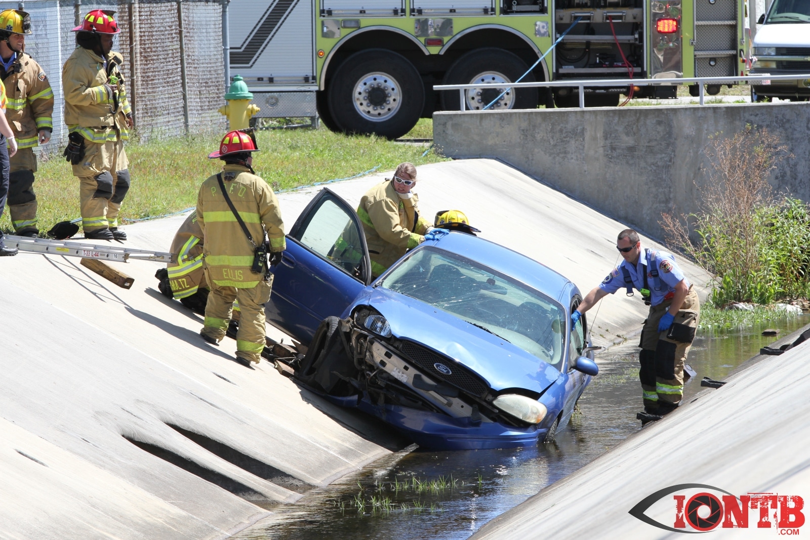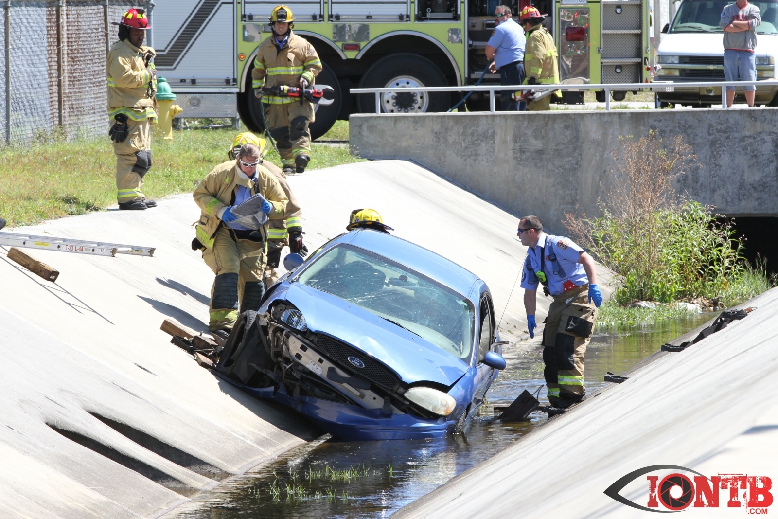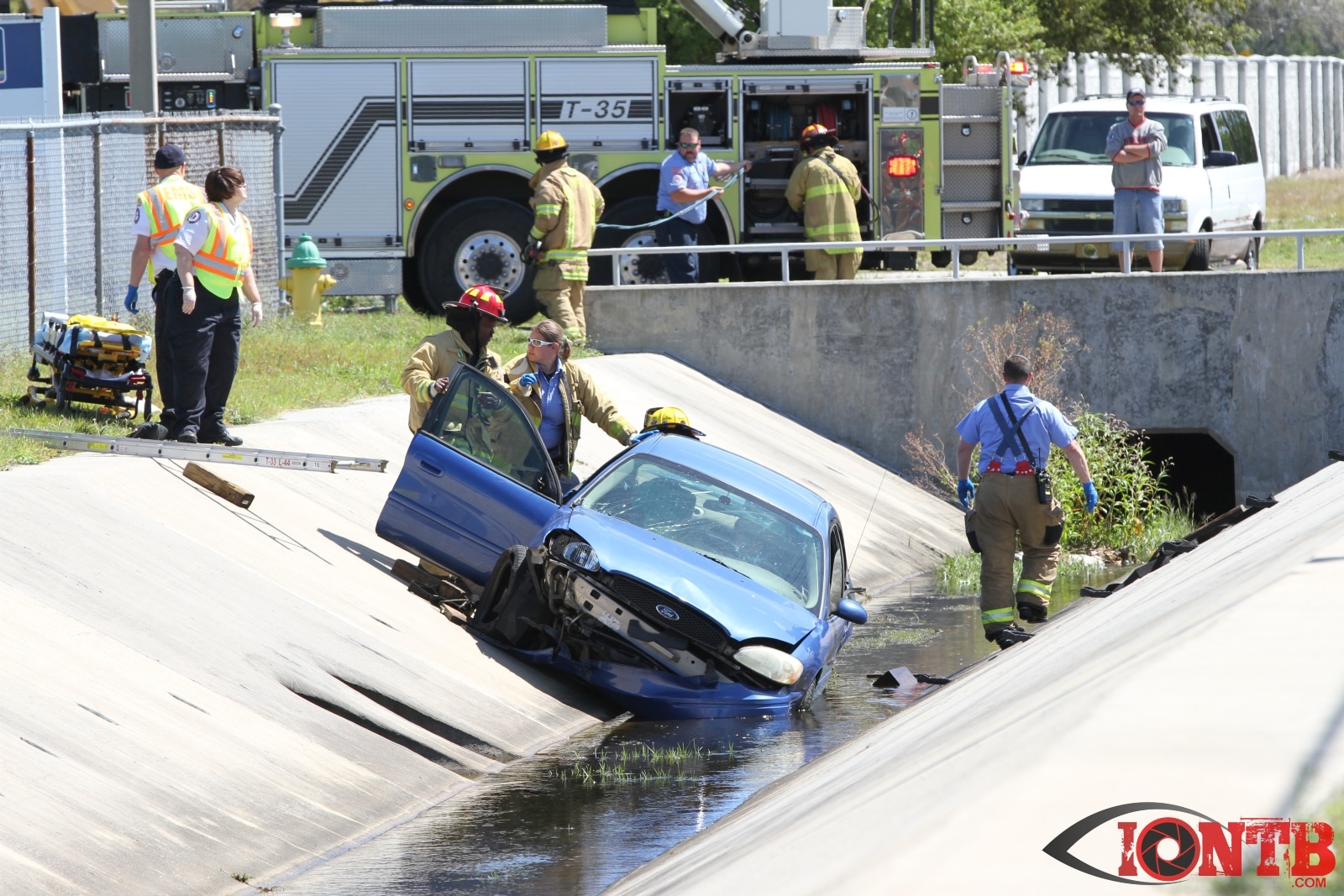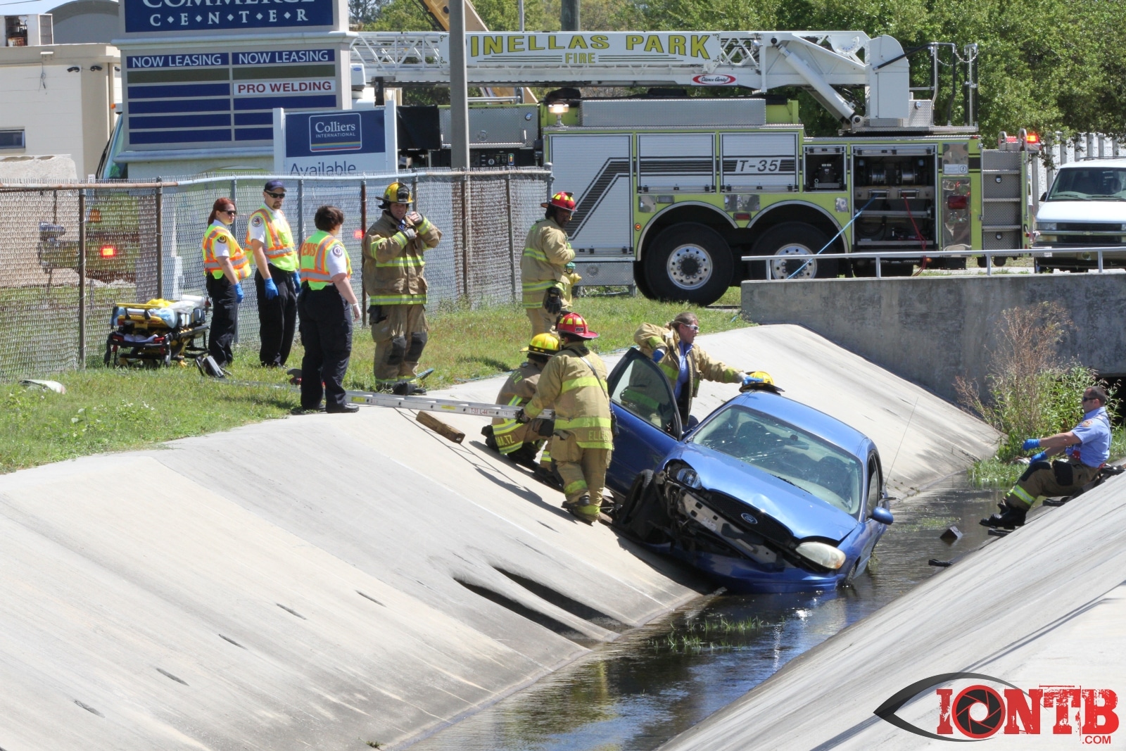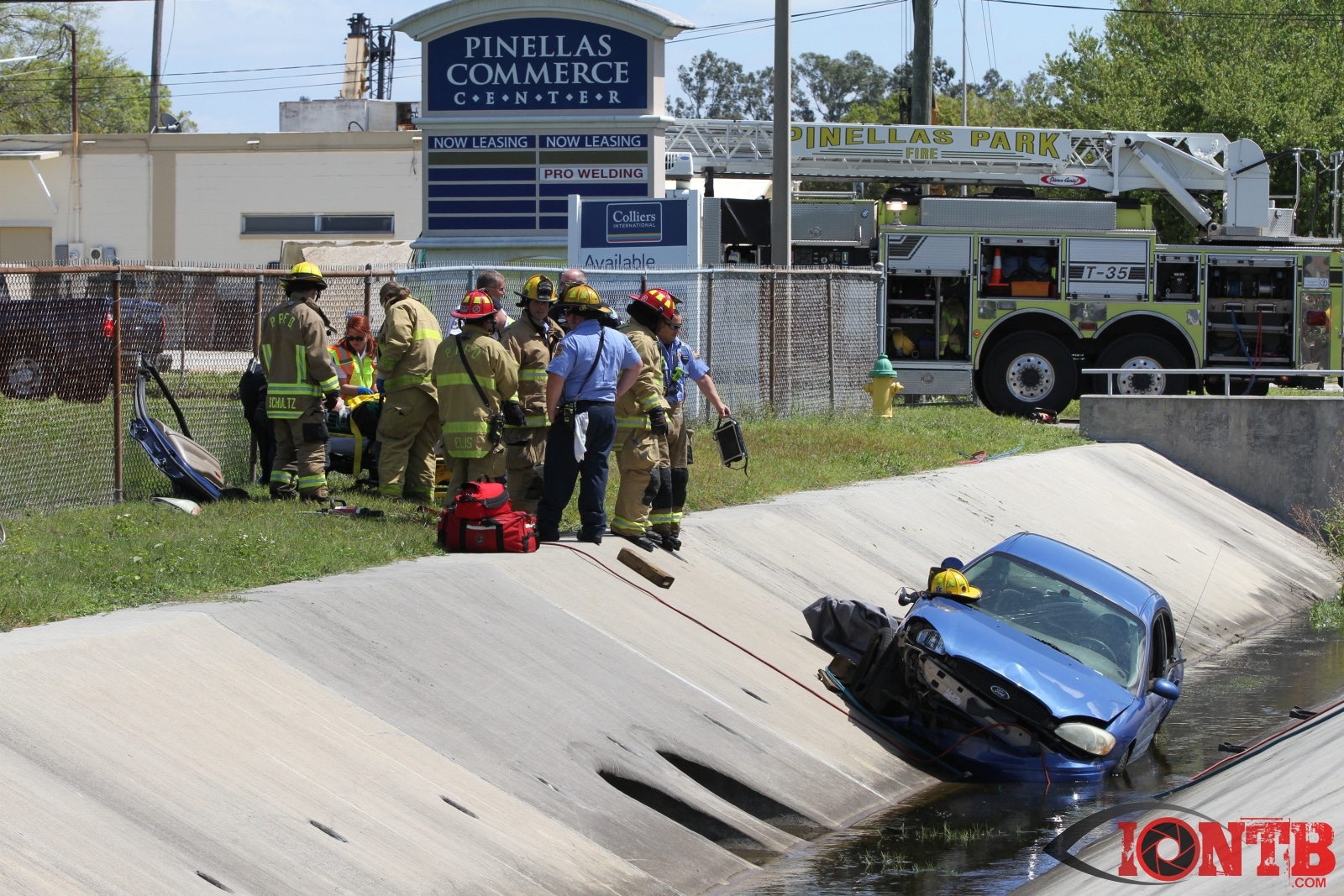 Units from Pinellas Park Fire Department were dispatched to reports of a vehicle crash about 12:15 pm this afternoon. Units arriving on scene found one vehicle upright in the ditch next to 102nd Avenue near 52nd Street.