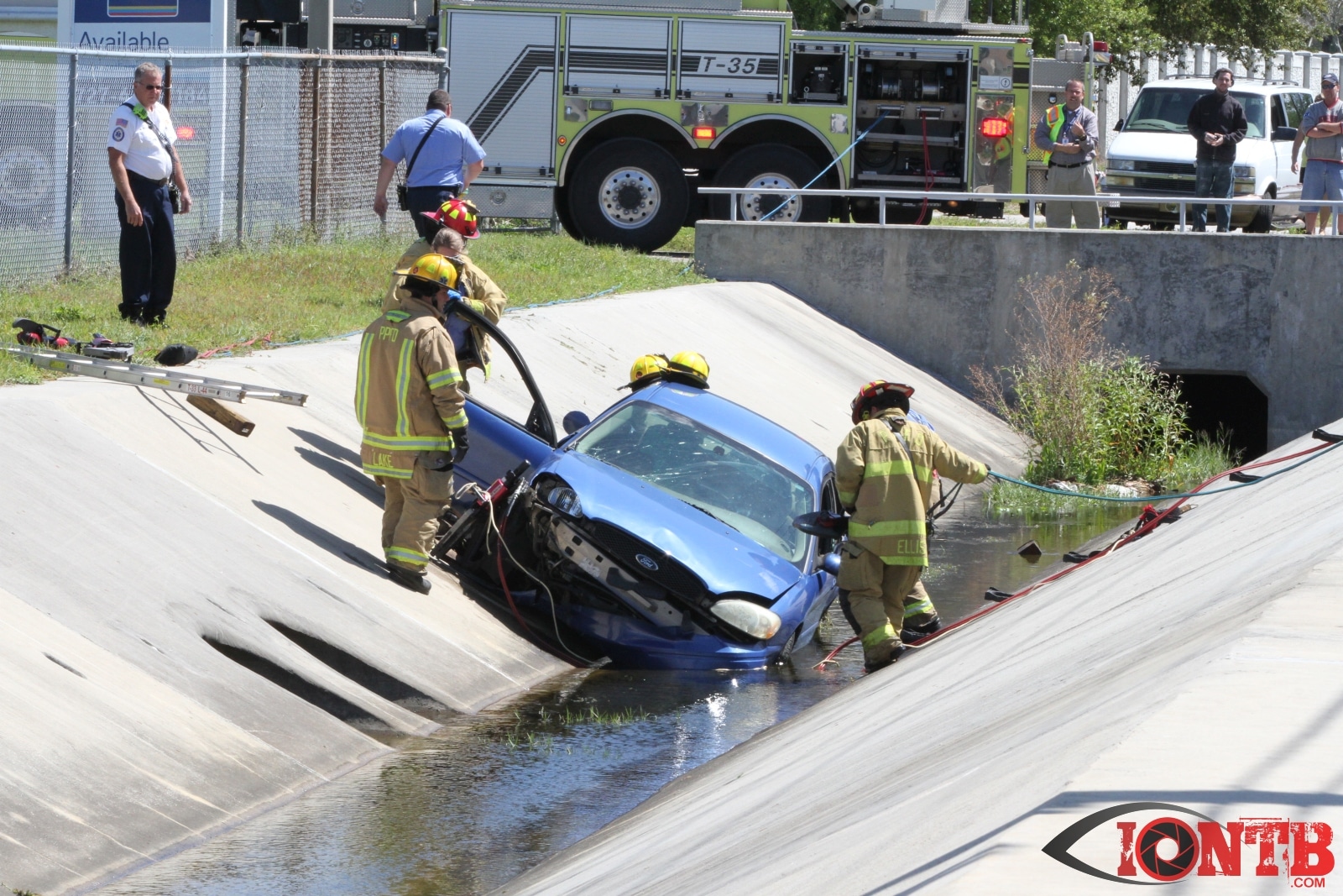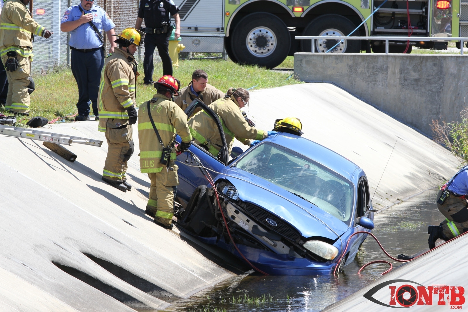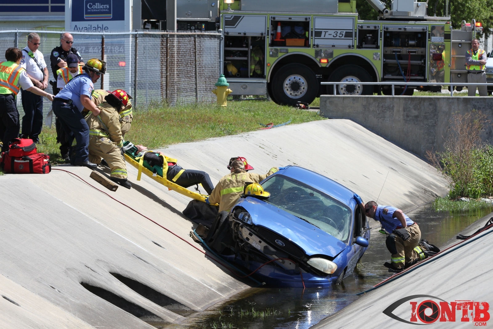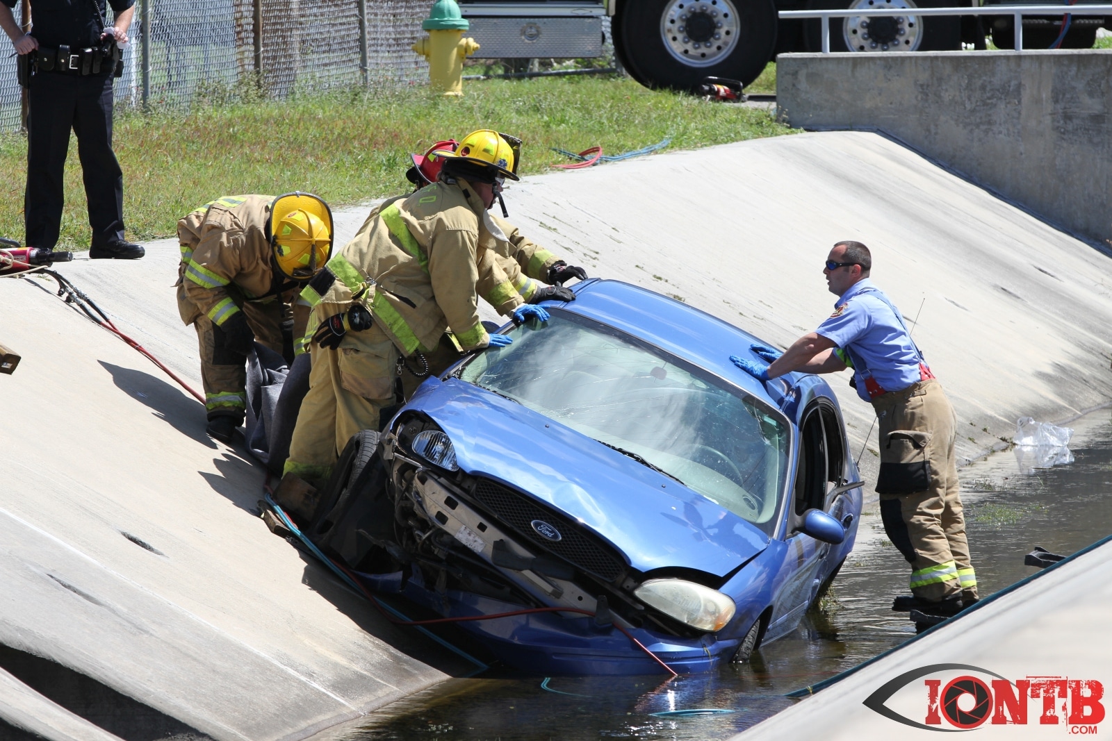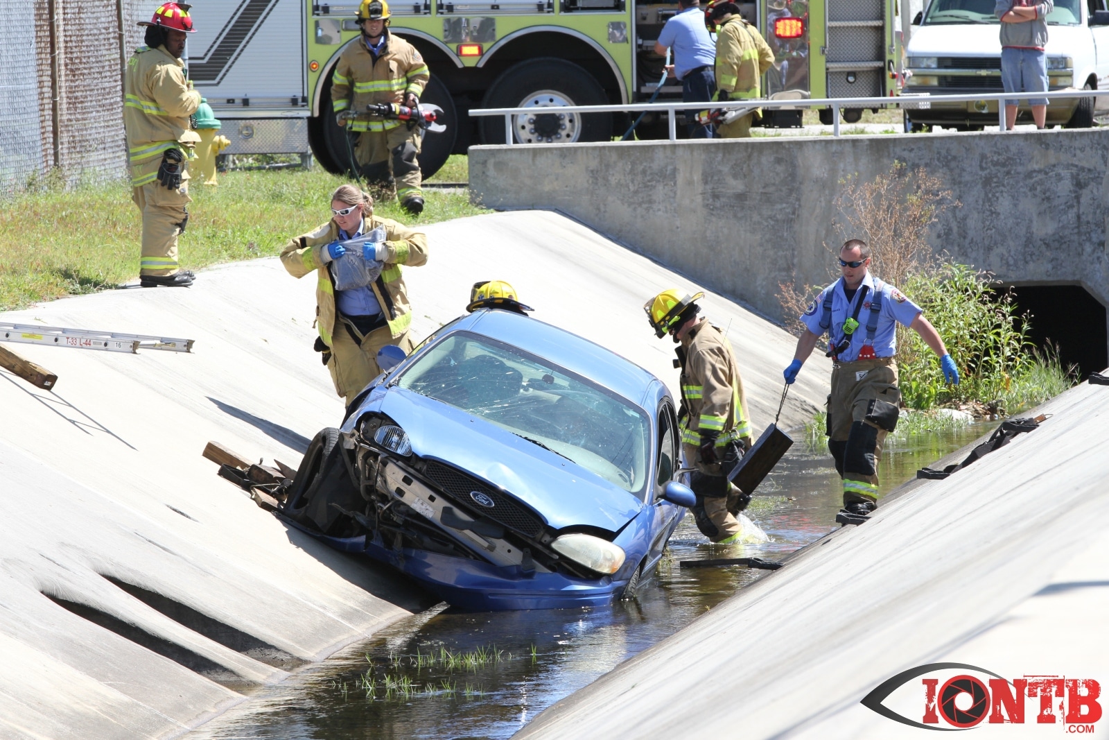 Units from Pinellas Park Fire Department were dispatched to reports of a vehicle crash about 12:15 pm this afternoon. Units arriving on scene found one vehicle upright in the ditch next to 102nd Avenue near 52nd Street.