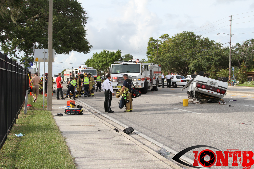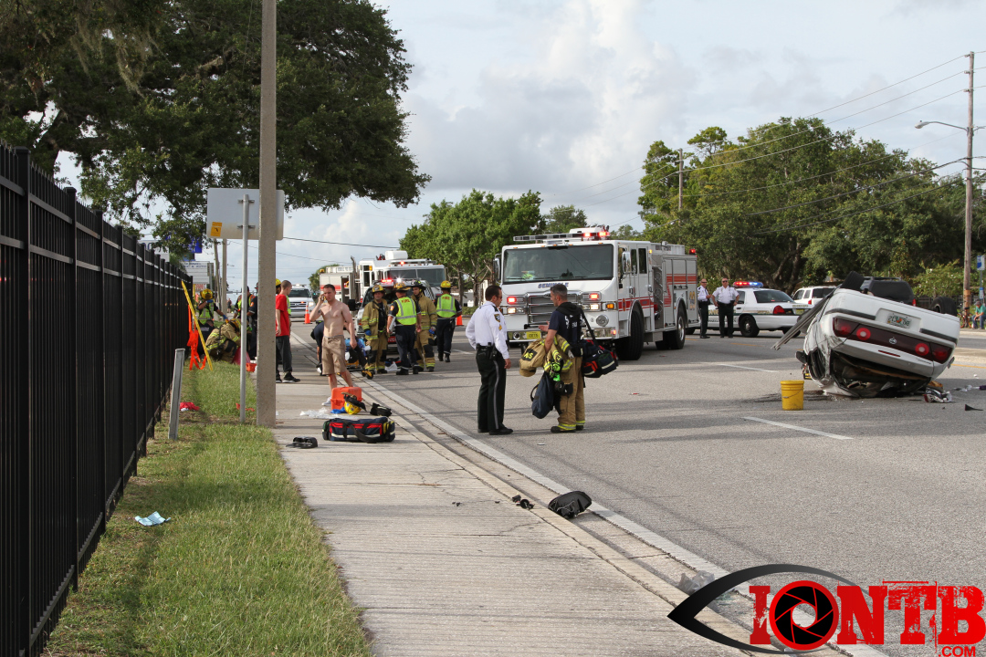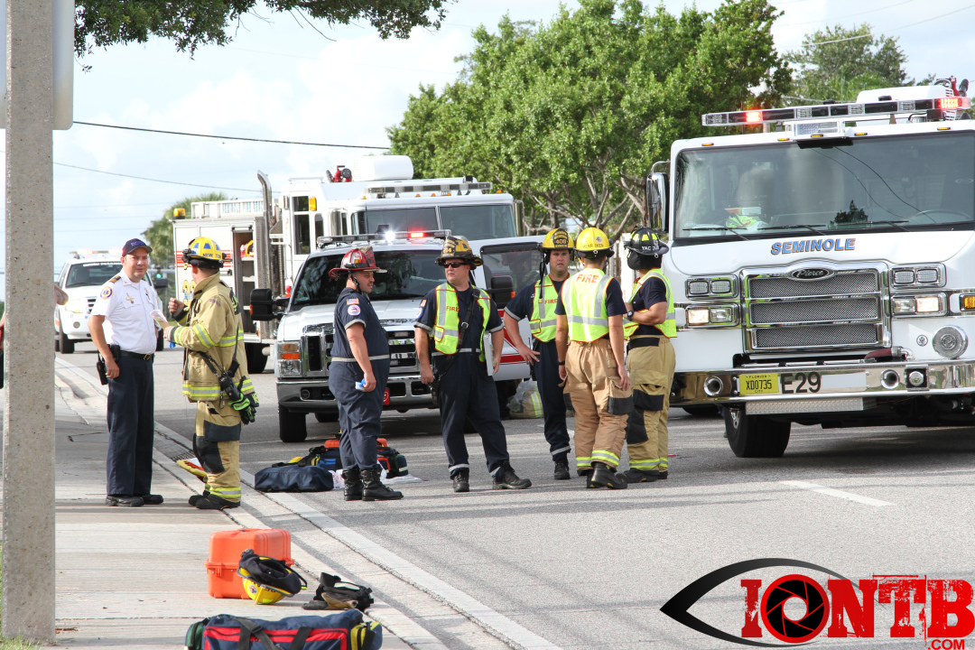 At approximately 5:52 pm this evening, units from the Seminole Fire Department were dispatched to reports of an overturned vehicle on Seminole Boulevard. The vehicle was overturned in the southbound lanes directly across from Lake Seminole Square at 8333 Seminole Boulevard.