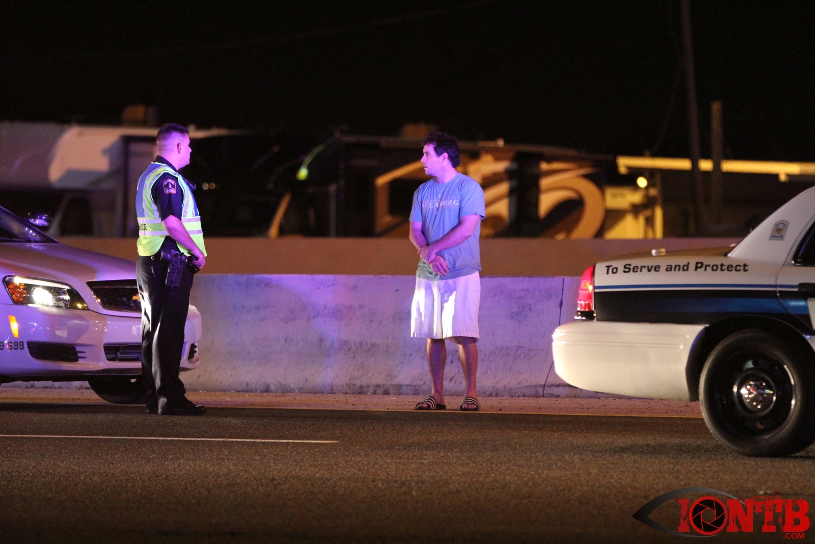 36 year-old Matthew Stolzman was traveling north in a silver 2006 Honda Accord in the median lane. The pedestrian was crossing from west to east across US19 and had just cleared the southbound lanes, jumped the concrete median and was trying to cross northbound traffic when he ended up in the path of the Honda.