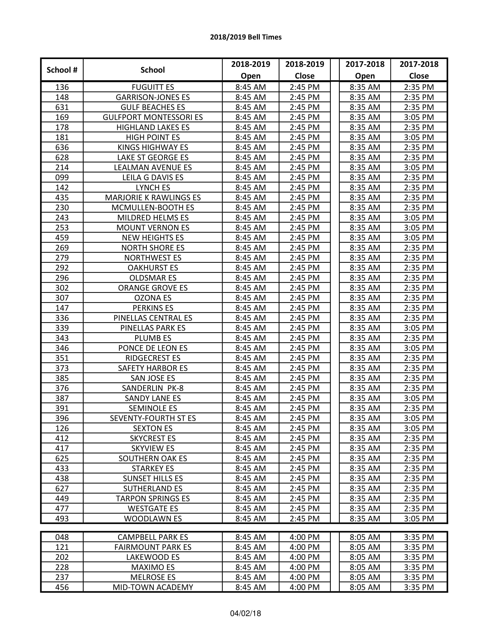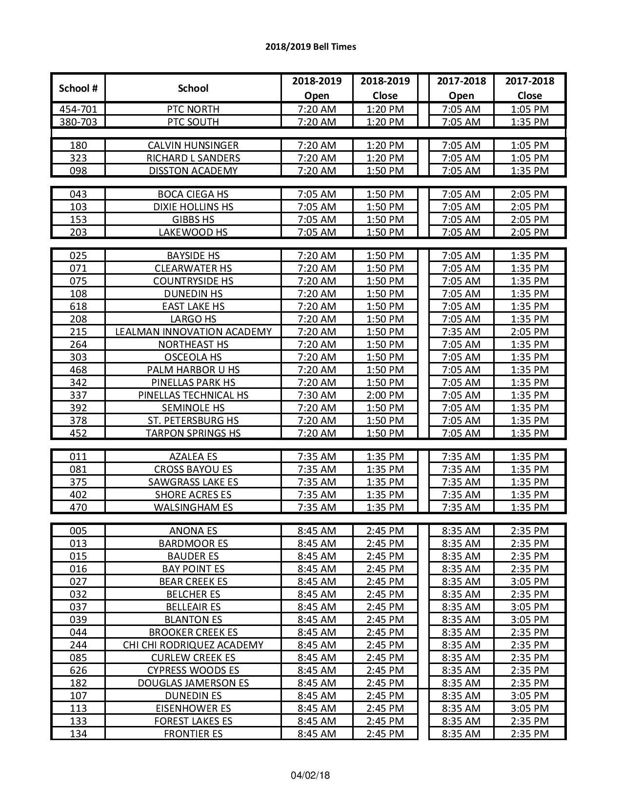Home News Pinellas County School Board votes to change bell times for the 2018/2019 school year